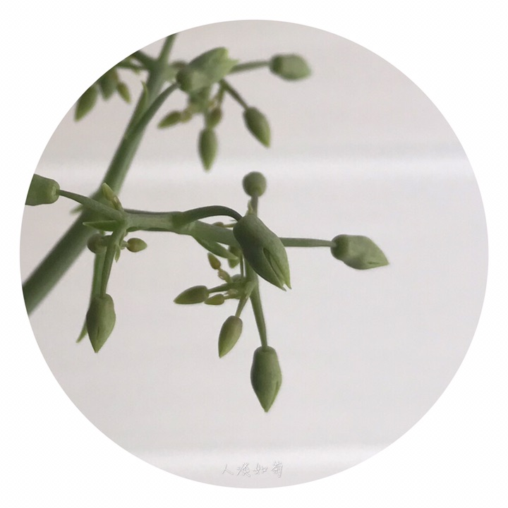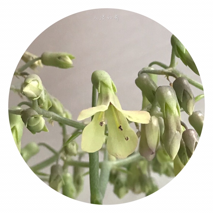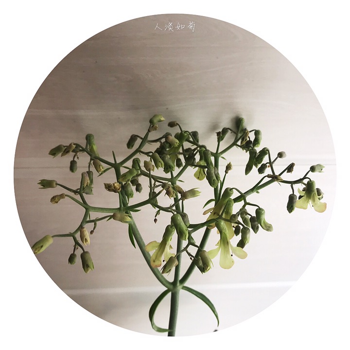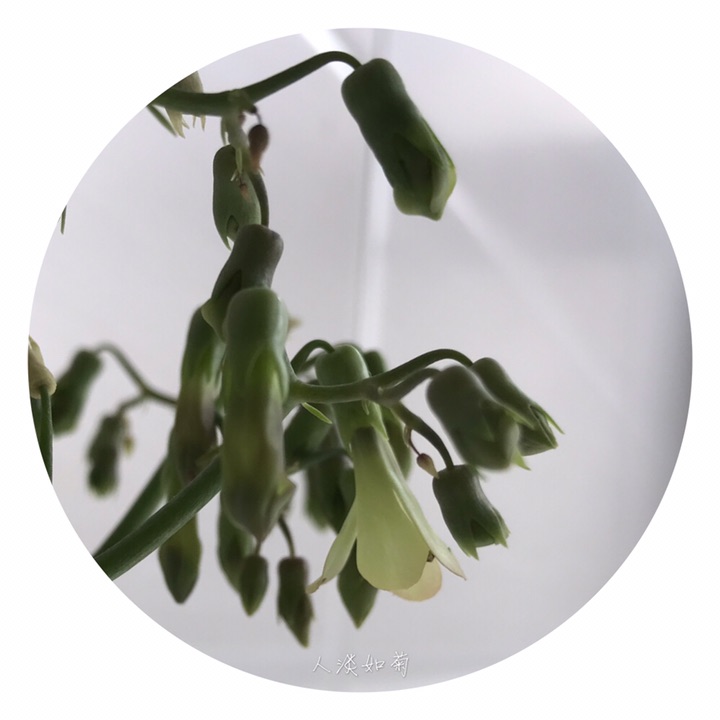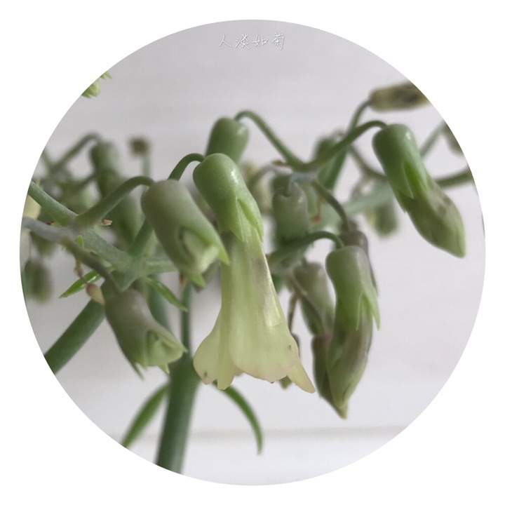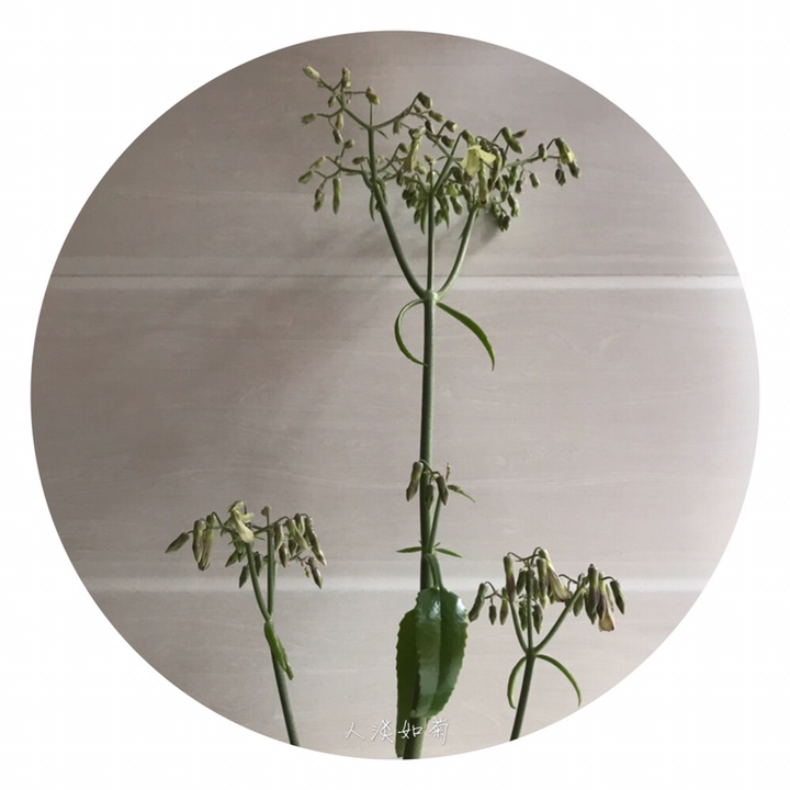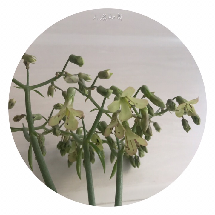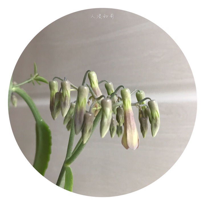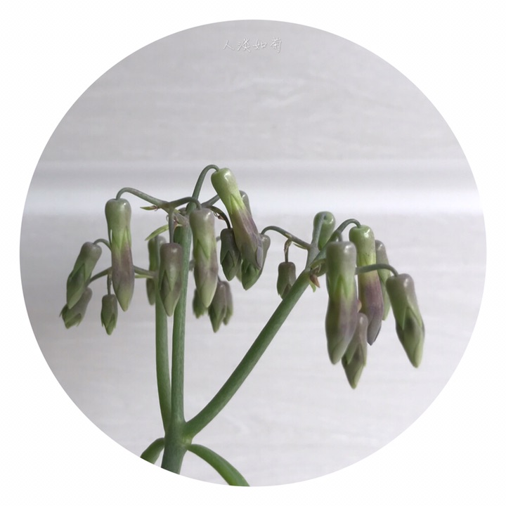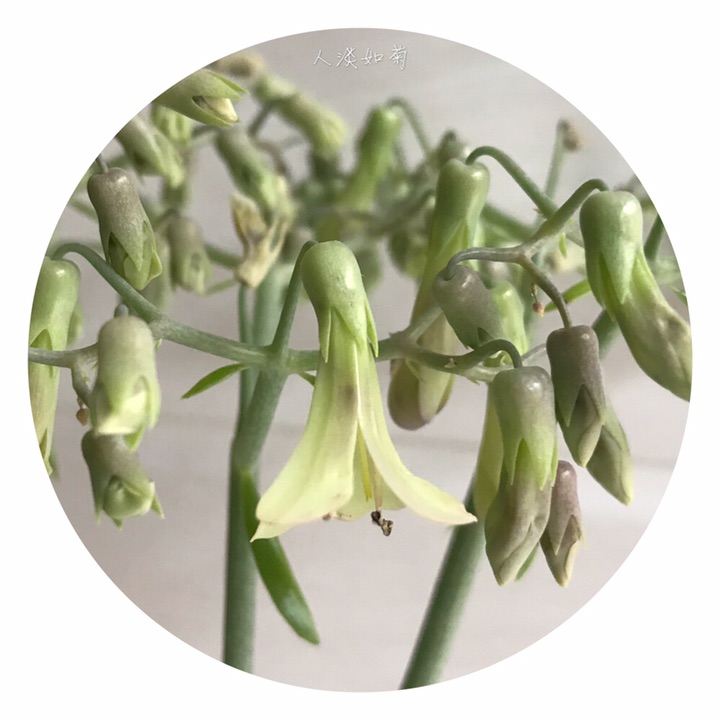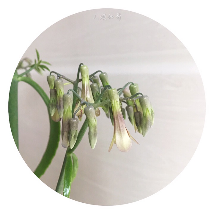 大叶虎纹落地生根冬末到春初开花,圆锥状聚伞花序,小花管状,倒吊。
