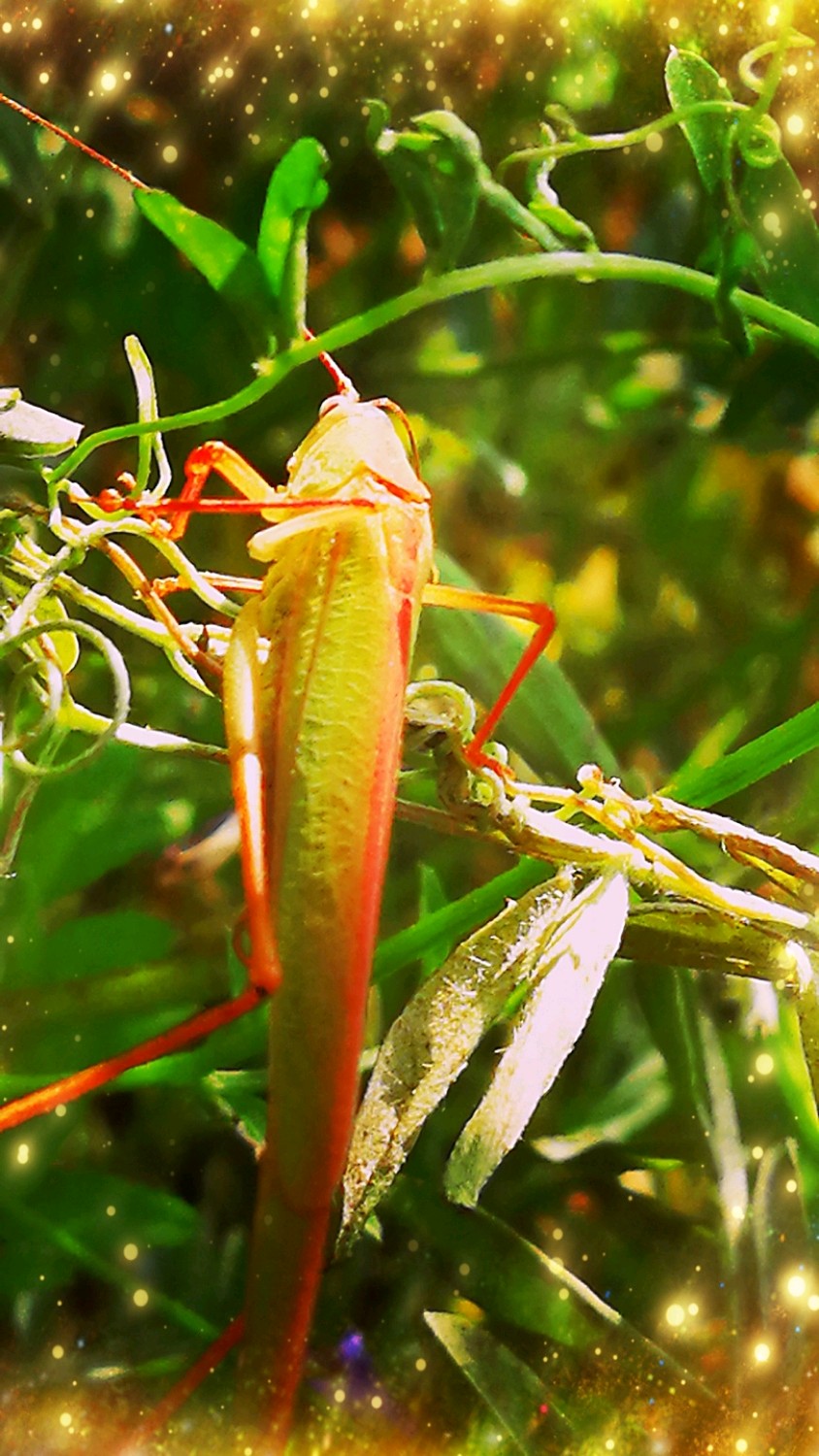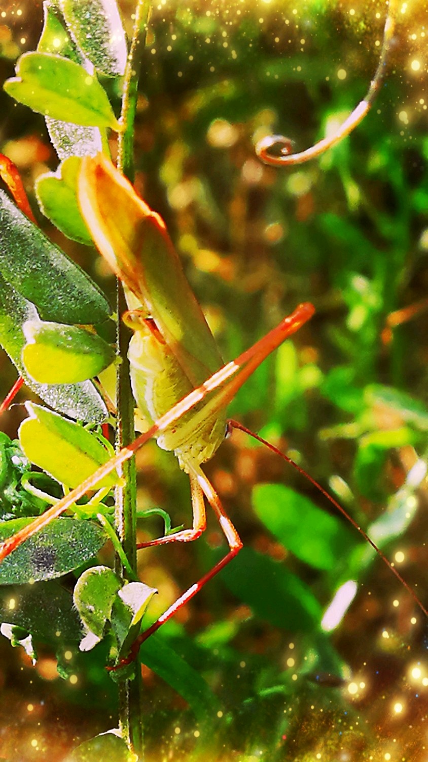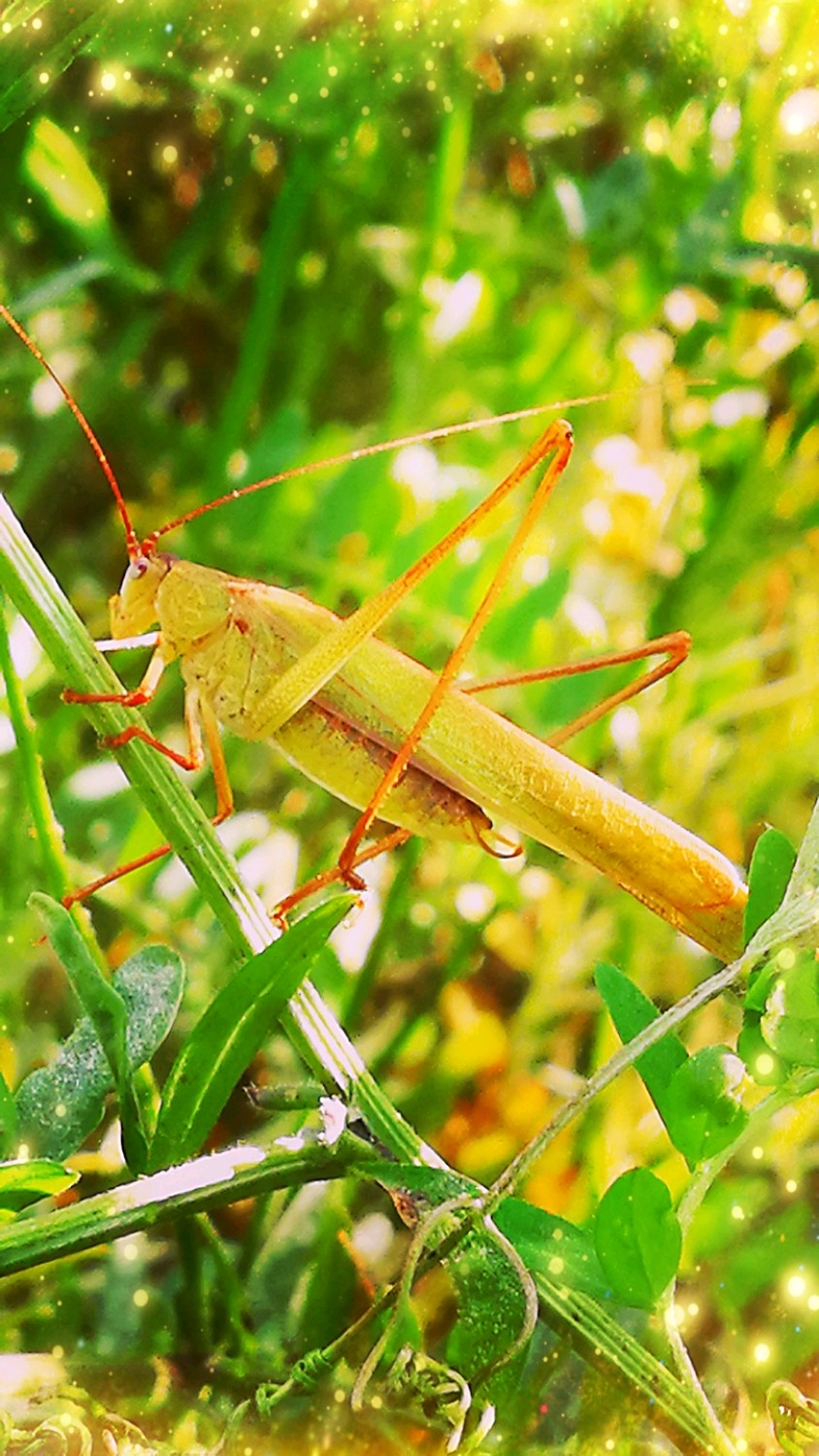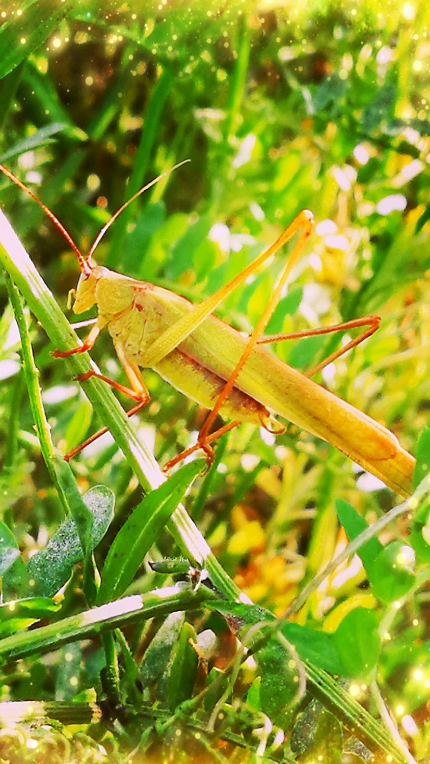 肥田草叶间的蝈蝈要去那儿了