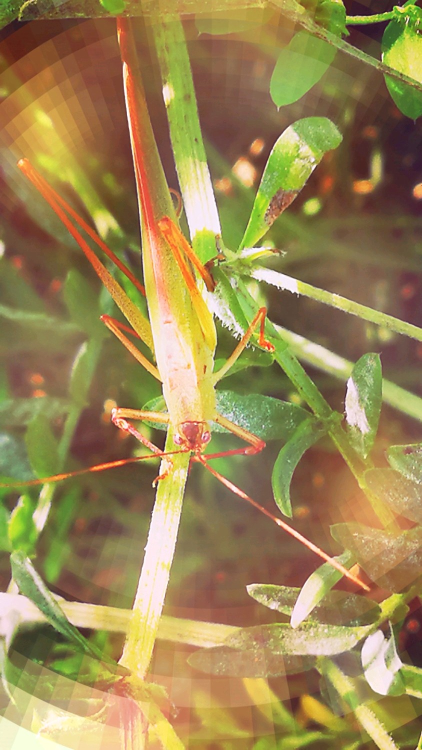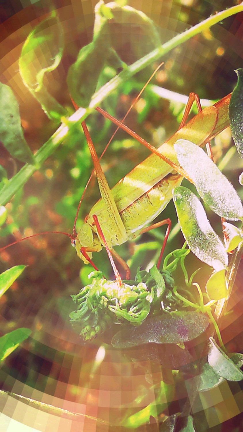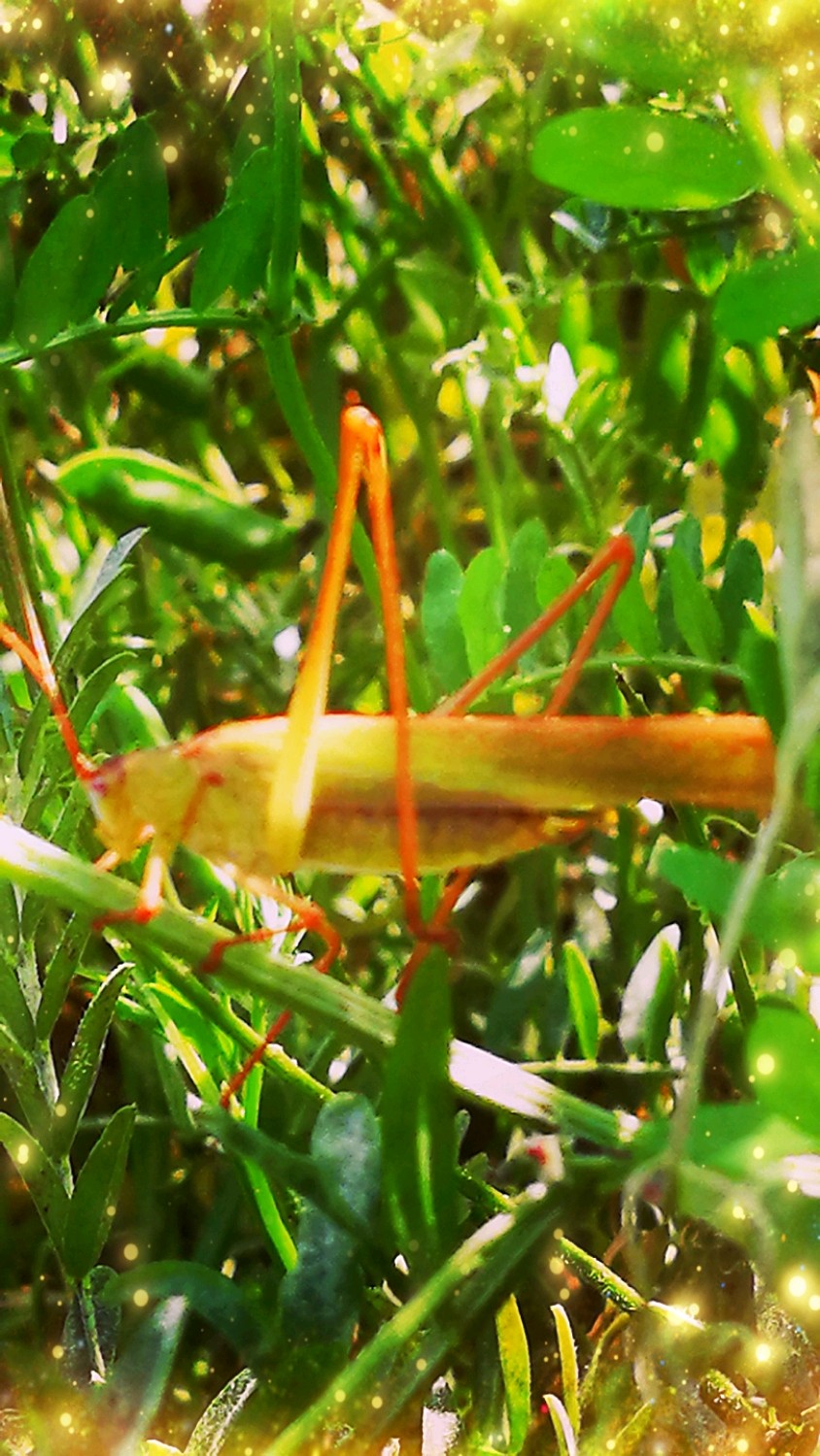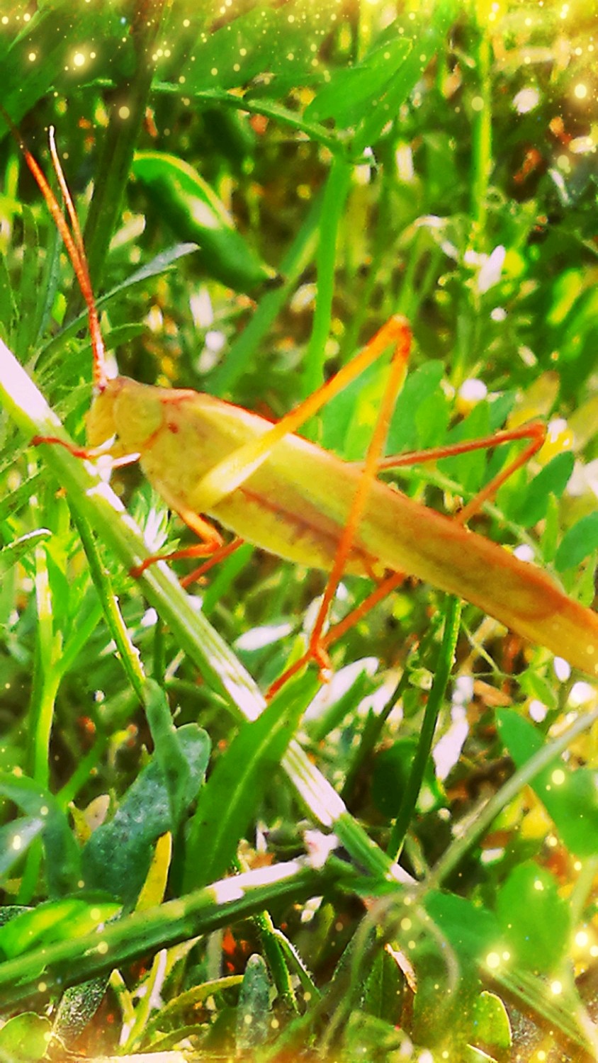 肥田草叶间的蝈蝈要去那儿了