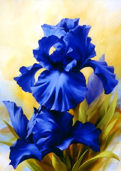 今天😊,这一幅画是比利时著名的画家艾格尔·利亚索画的,他画的这几朵非常漂亮的蓝色的鸢尾花🌸,感觉这么像真实的,他把这几朵美丽的鸢尾花画活了,他画了好多😍好多的美丽的花儿,每一幅花儿都非常的真实。