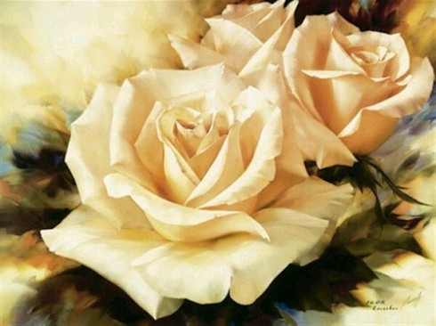 大家好( ゚∀ ゚),今天😊 ,这一幅画还是俄罗斯🇷🇺著名的画家艾格尔·利亚索画的,他画的这三朵美丽的月季花(香槟)非常写实,背景感觉是火山爆发,或者是爆炸的那一种感觉。