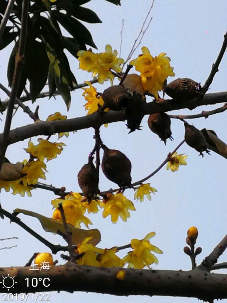 这是仰拍的蜡梅花,可惜是用手机,如果用单反效果绝对不一样。