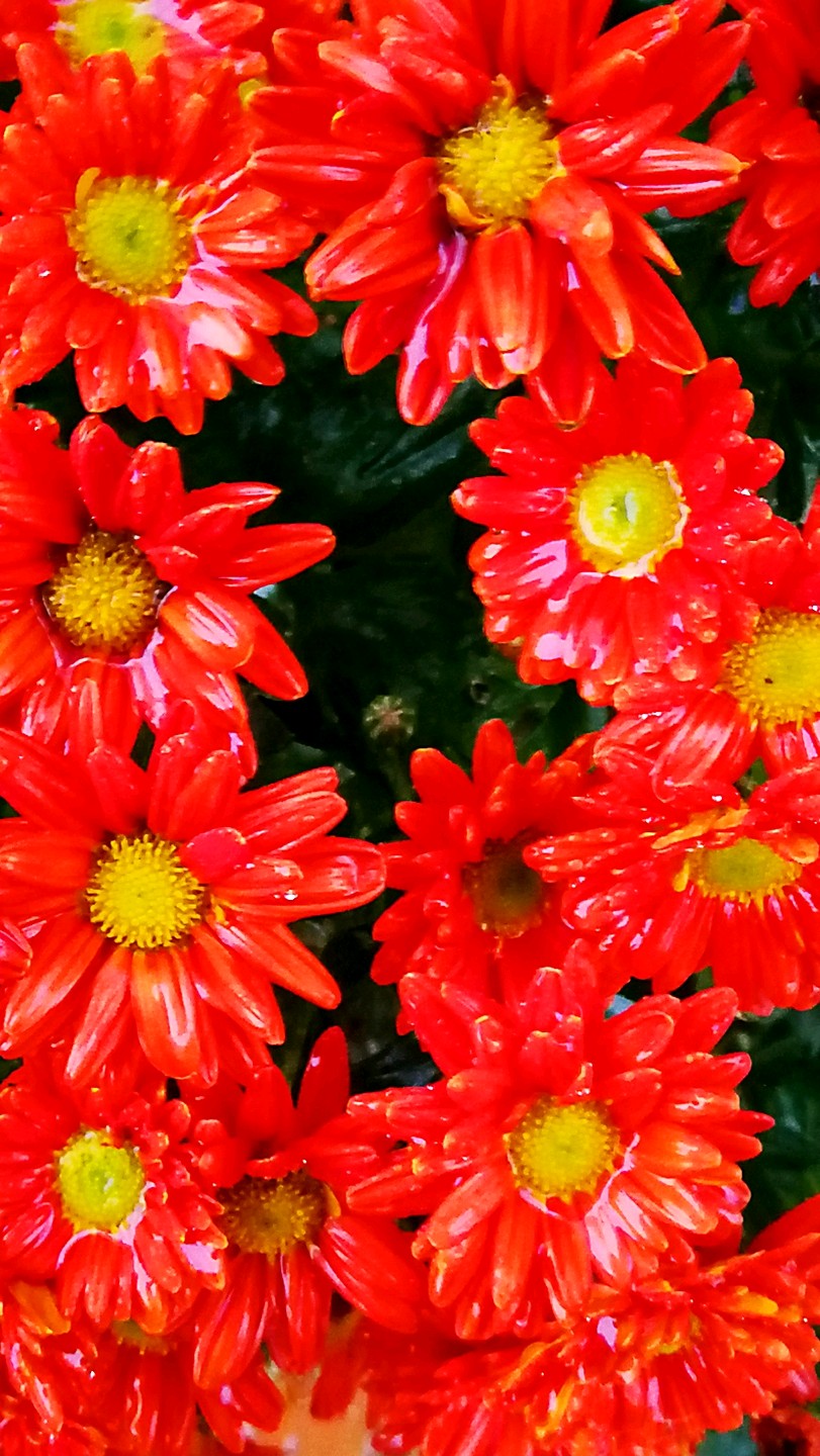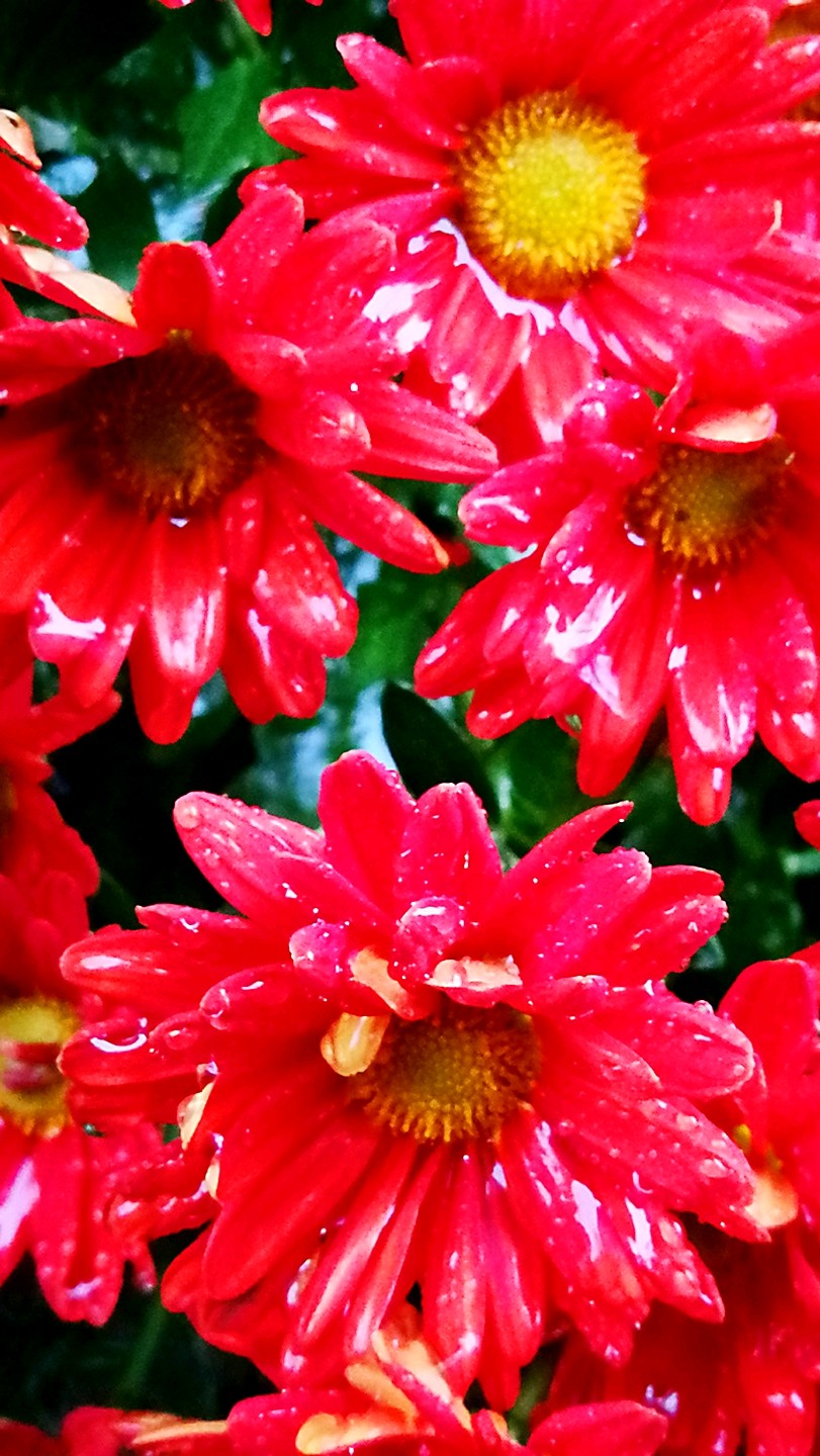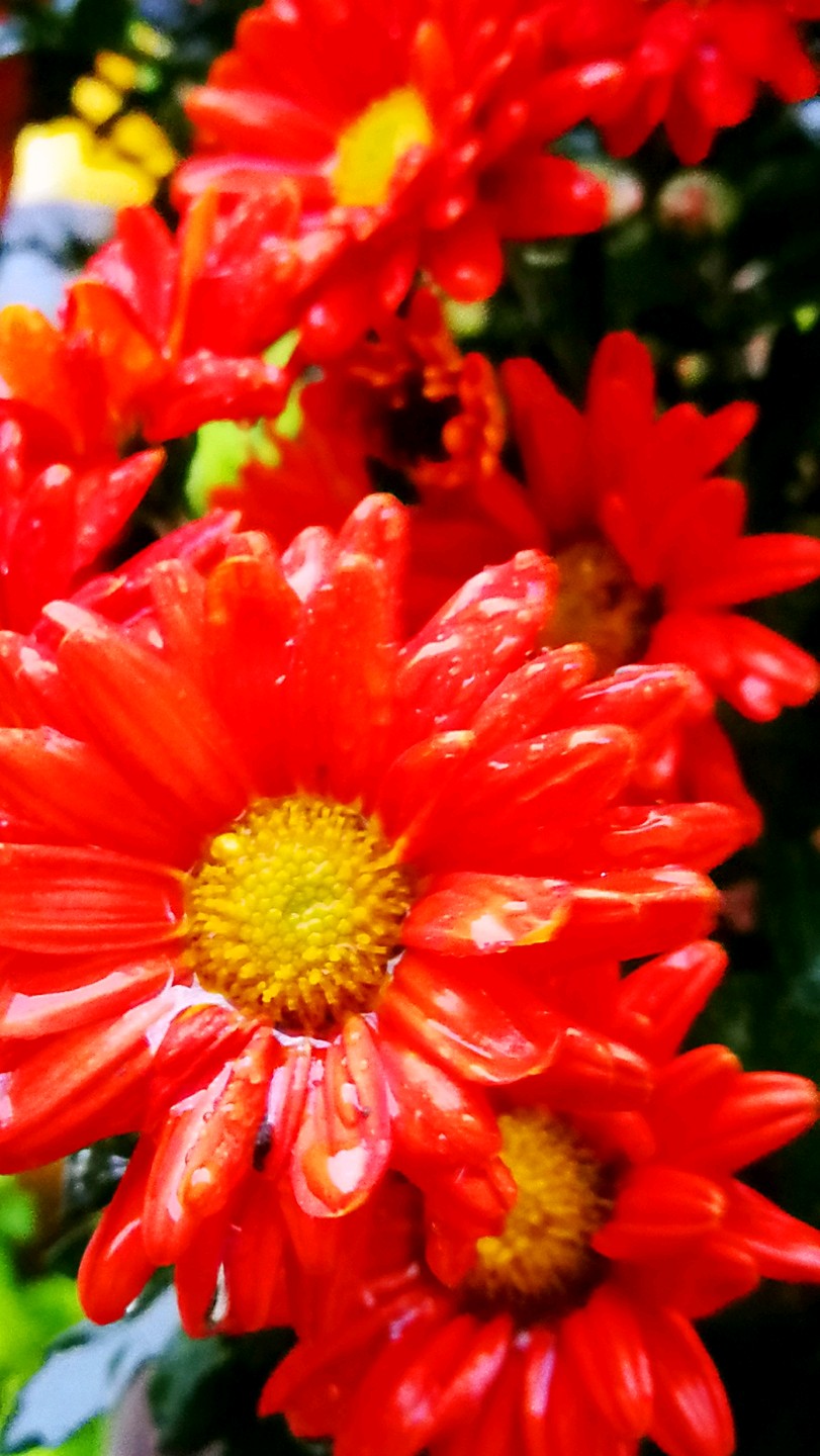 园区绿化带里带雨水淋淋的杭菊花