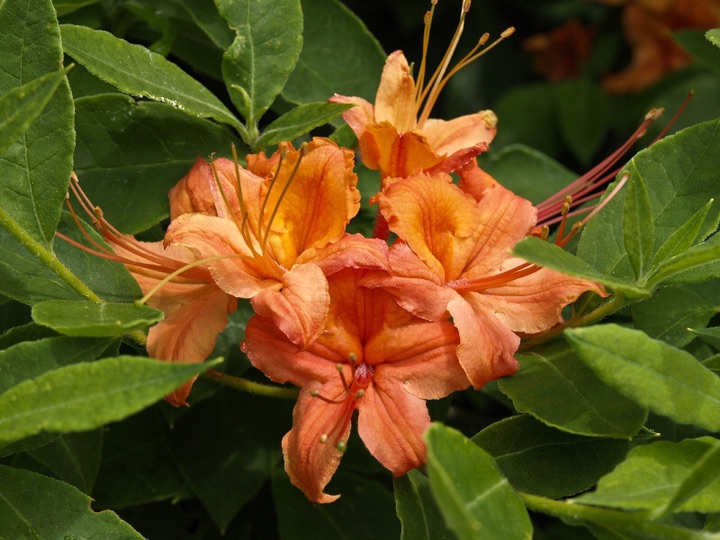 杜鹃花,又名映山红、山石榴,为常绿或平常绿灌木。花芽卵球形,鳞片外面中部以上被糙伏毛,边缘具睫毛。杜鹃经过人们多年的培育,已有大量的栽培品种出现,花的色彩更多,花的形状也多种多样,有单瓣及重瓣的品种。