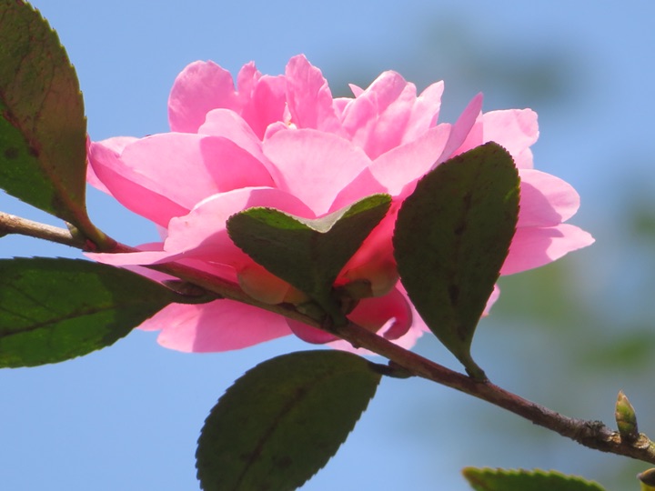 冬日里的茶花开得真漂亮!这株茶梅很吸引人的眼球!