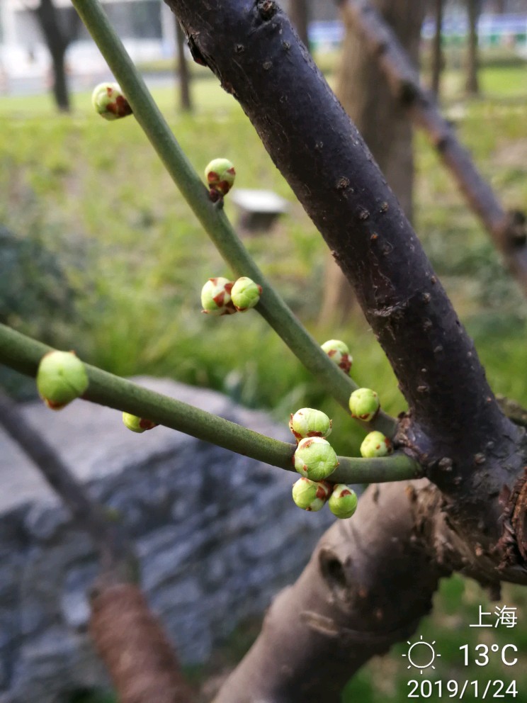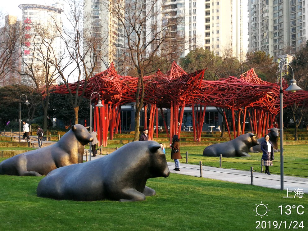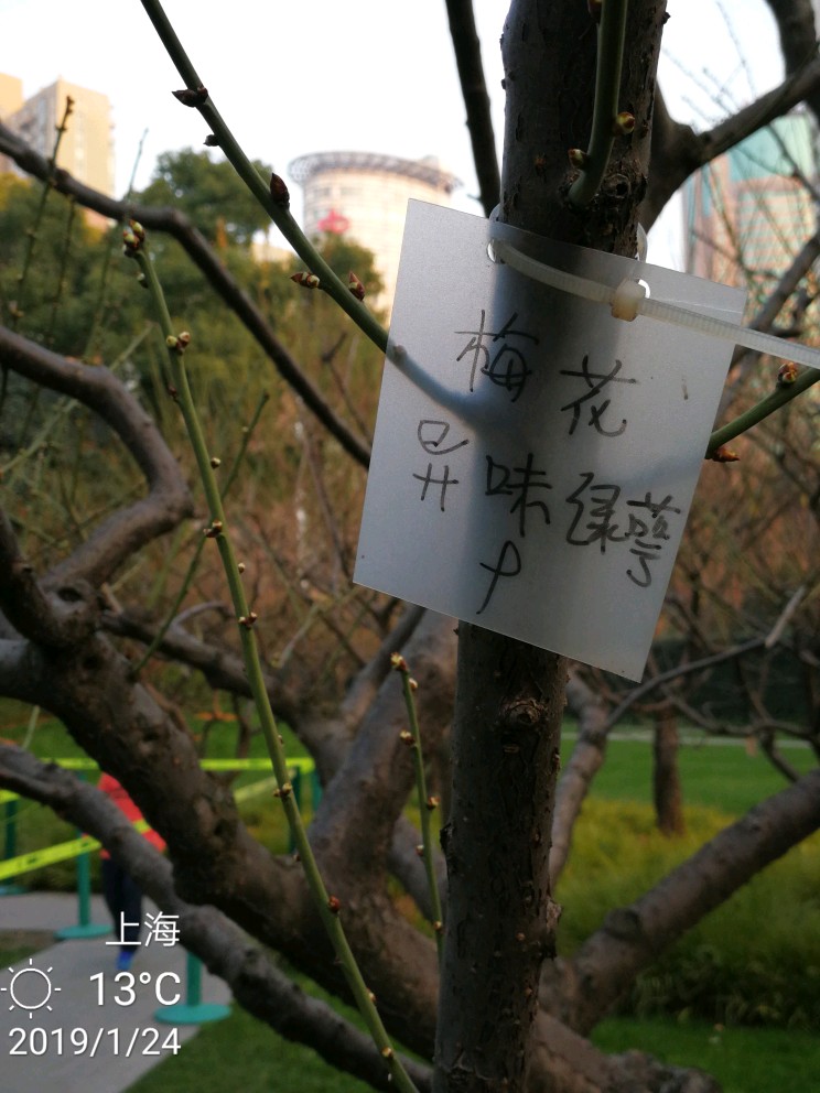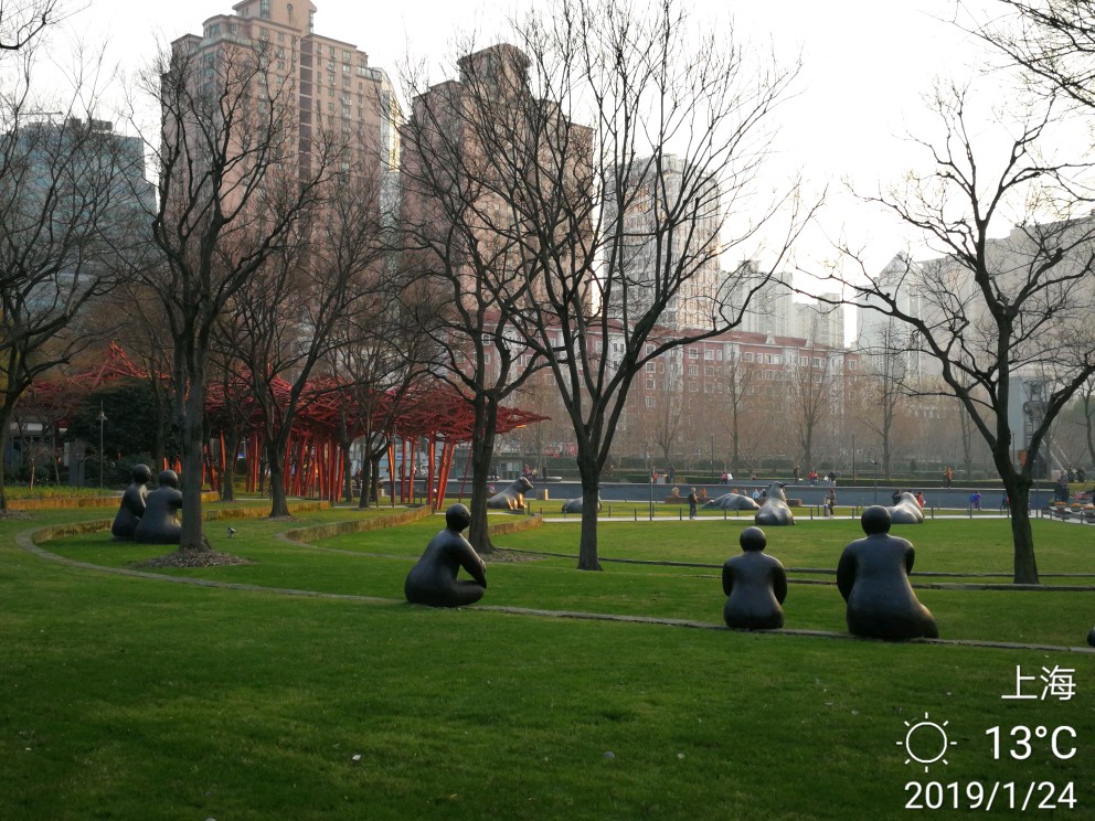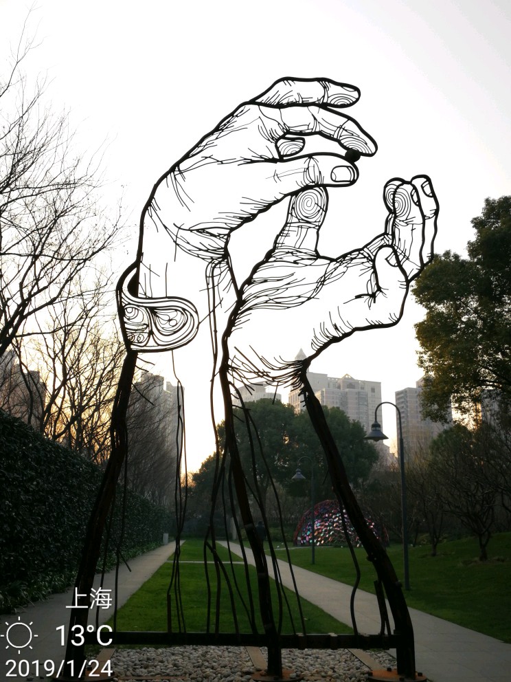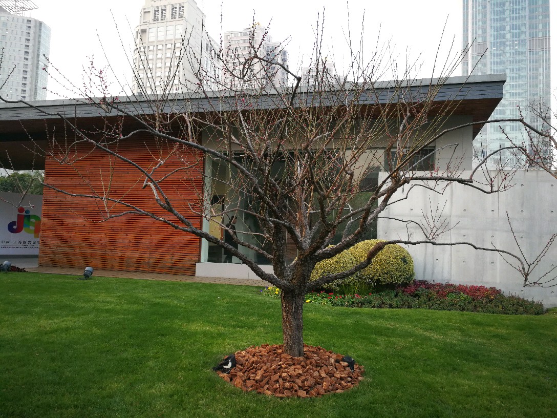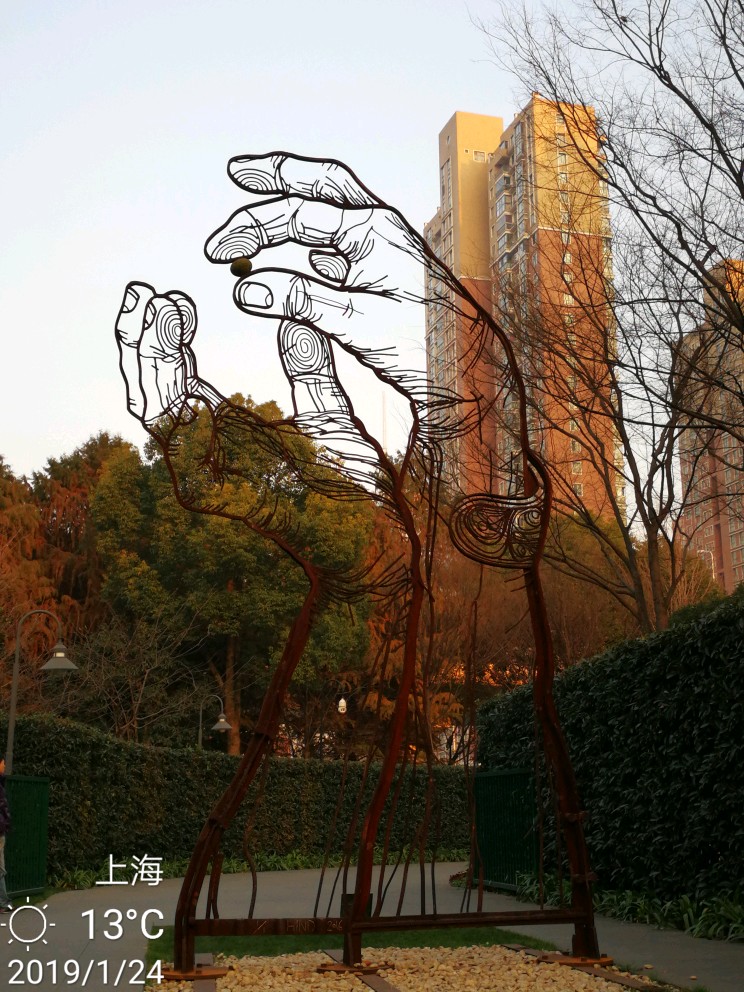 今日办事路过静安雕塑公园,进去逗留了一小会儿。这个公园,今天有两样东西给我印象深刻。其一是各种雕塑,雕塑公园吗,当然有很多雕塑,有的很抽象,只能猜测作者想要表达的本意,按下不表。其二就是各种梅花树,散布在不大的公园里,极个别的几株开放了零星几朵梅花......还没有真正到赏梅的时节,大概还要过一个星期,也就是春节前后会大面积开放。正因为开的花极少,但有两个摄影者很执着,在几朵花跟前用大炮左拍拍,右拍拍,等得我心焦......于是瞅中机会,伸长手臂,用手机总算抢拍了几张,但不理想。