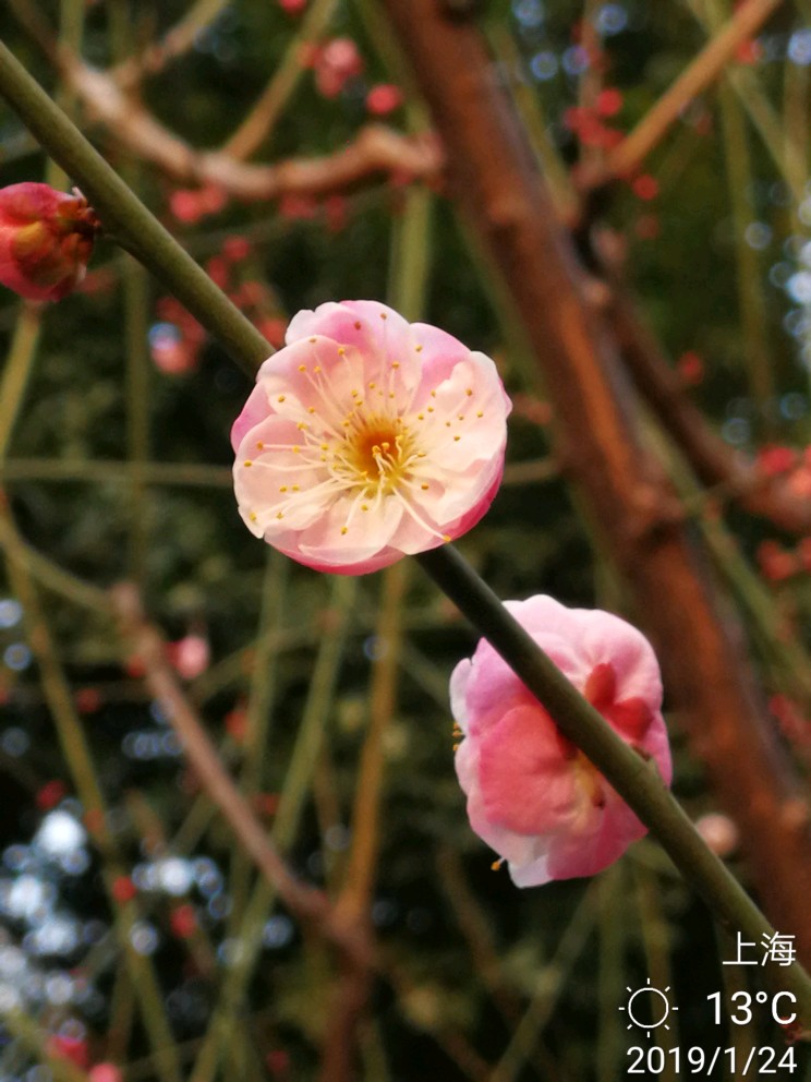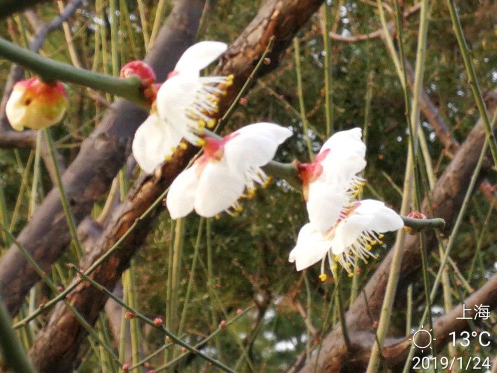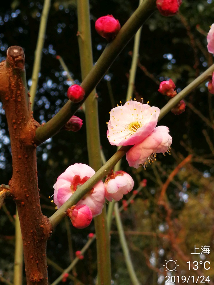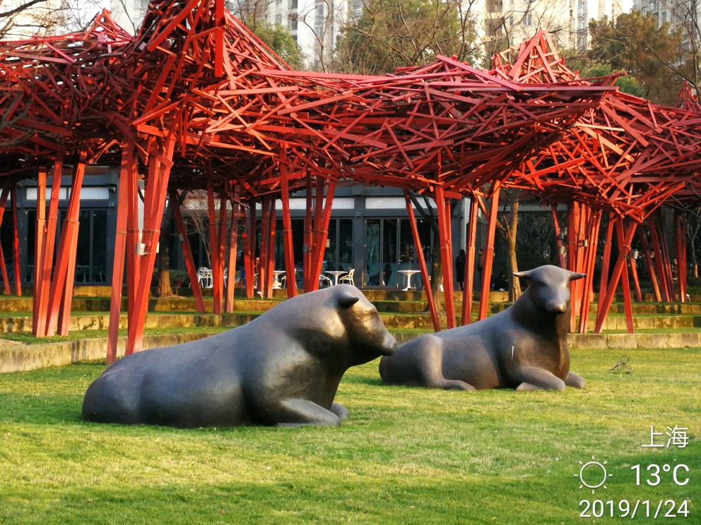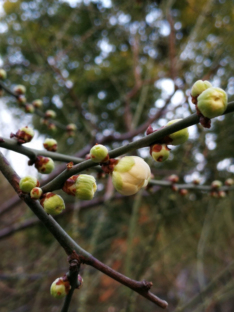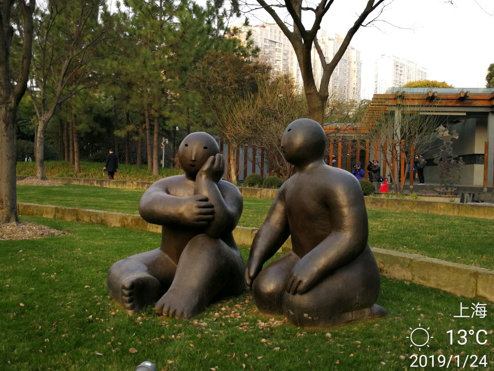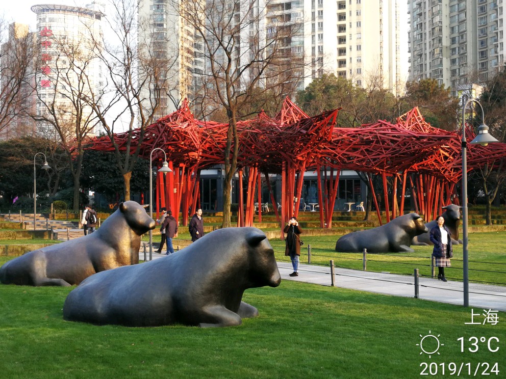 今日办事路过静安雕塑公园,进去逗留了一小会儿。这个公园,今天有两样东西给我印象深刻。其一是各种雕塑,雕塑公园吗,当然有很多雕塑,有的很抽象,只能猜测作者想要表达的本意,按下不表。其二就是各种梅花树,散布在不大的公园里,极个别的几株开放了零星几朵梅花......还没有真正到赏梅的时节,大概还要过一个星期,也就是春节前后会大面积开放。正因为开的花极少,但有两个摄影者很执着,在几朵花跟前用大炮左拍拍,右拍拍,等得我心焦......于是瞅中机会,伸长手臂,用手机总算抢拍了几张,但不理想。