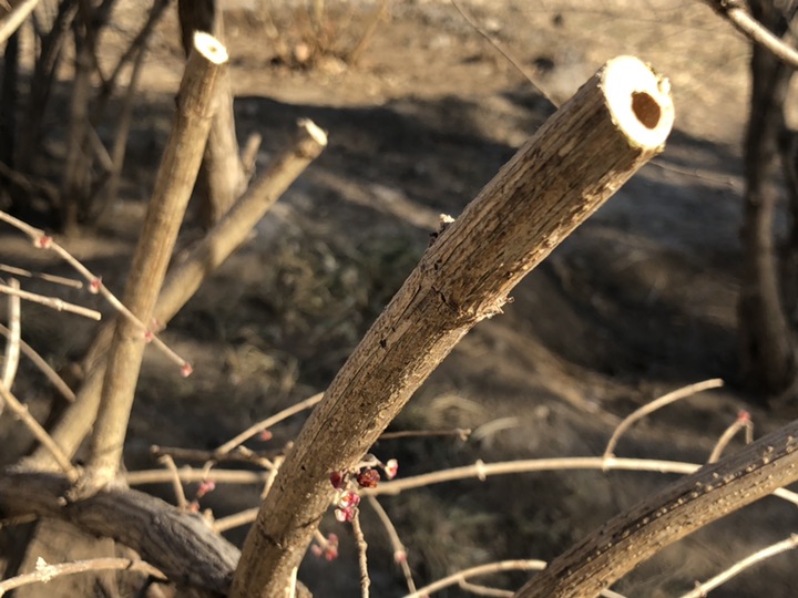 绿化带发现一种小树,像木槿那么高。树枝是空心的。枝上有米粒大的小红花。请问大家是什么植物。有人说是锦带花,不能确定。