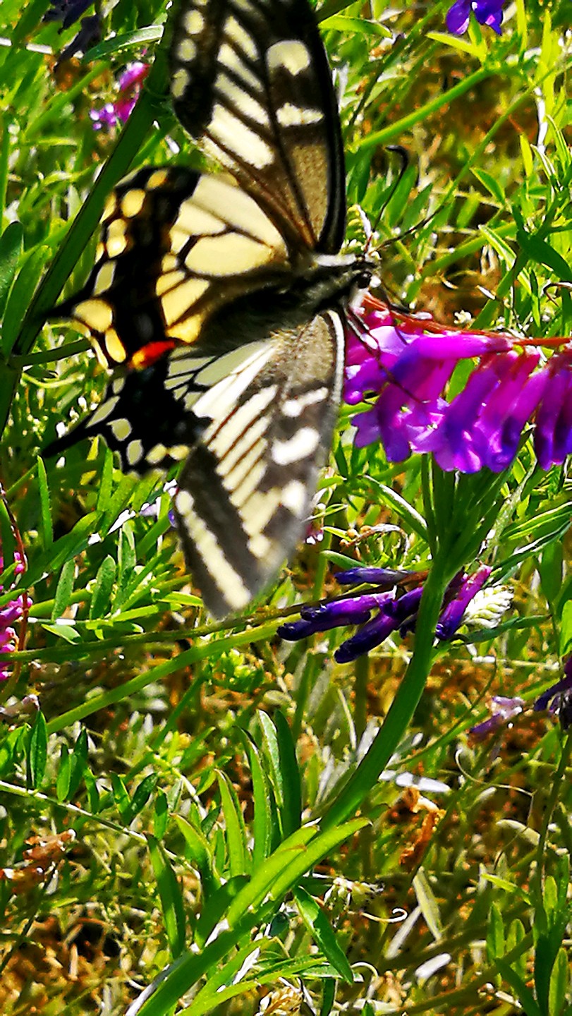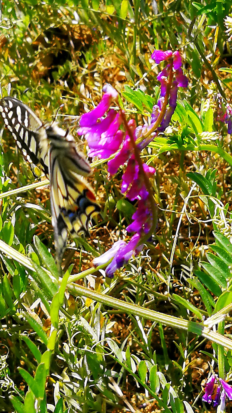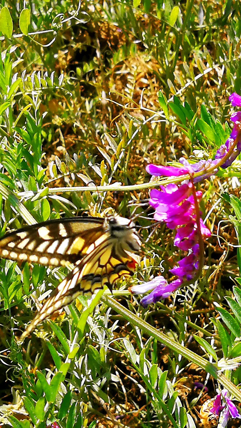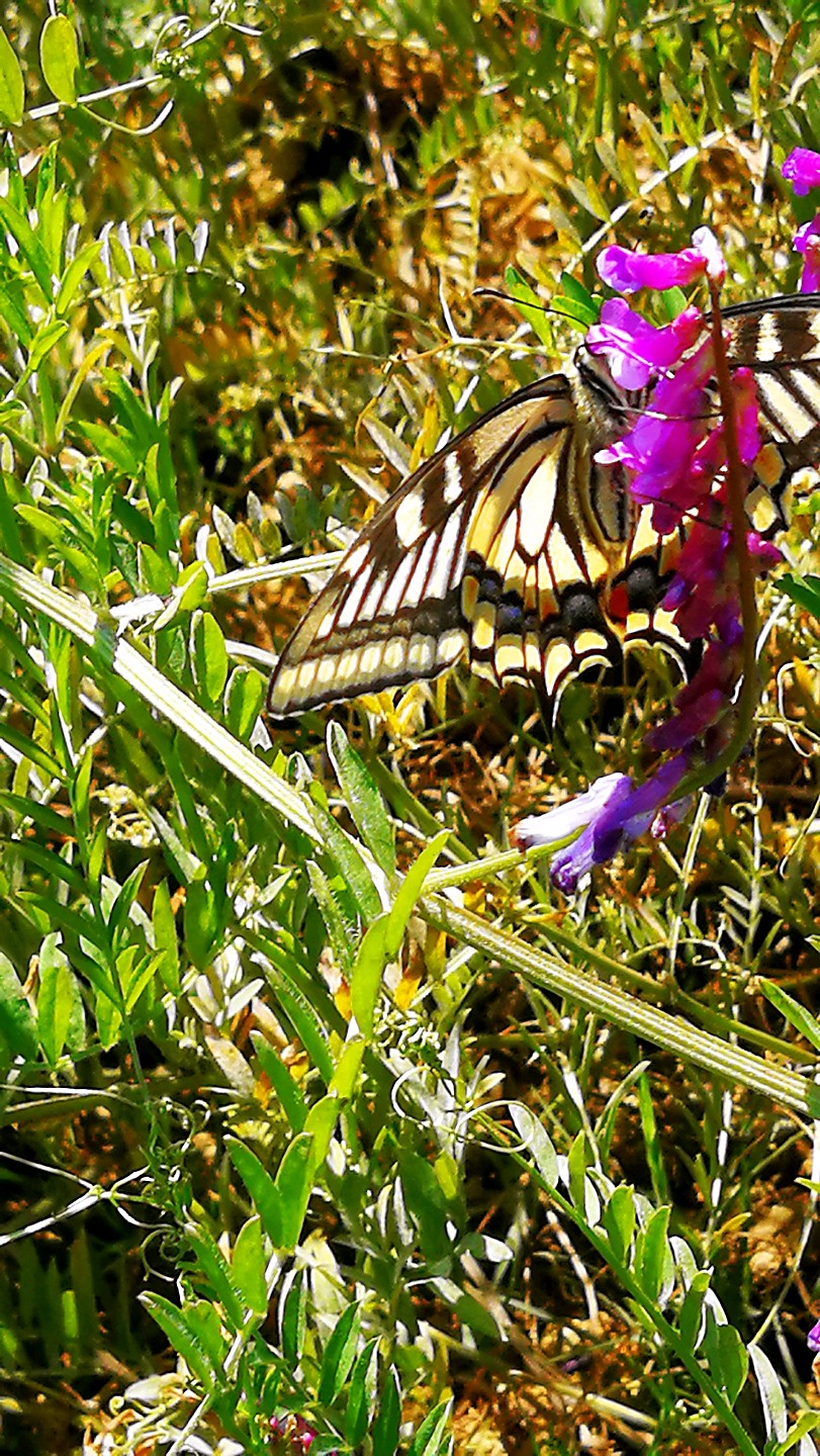 冬天广布野碗豆花上吸蜜的金凤蝶