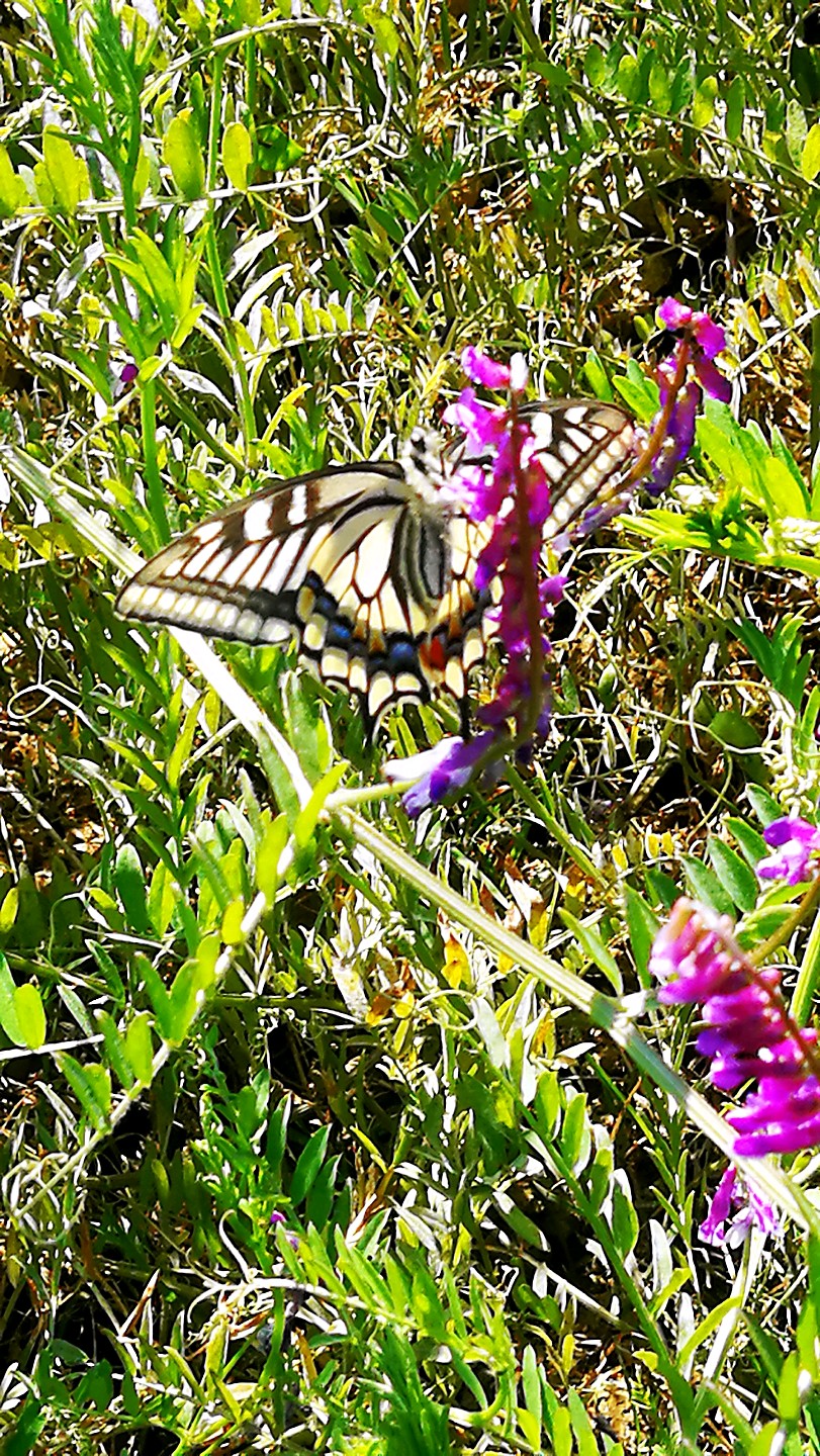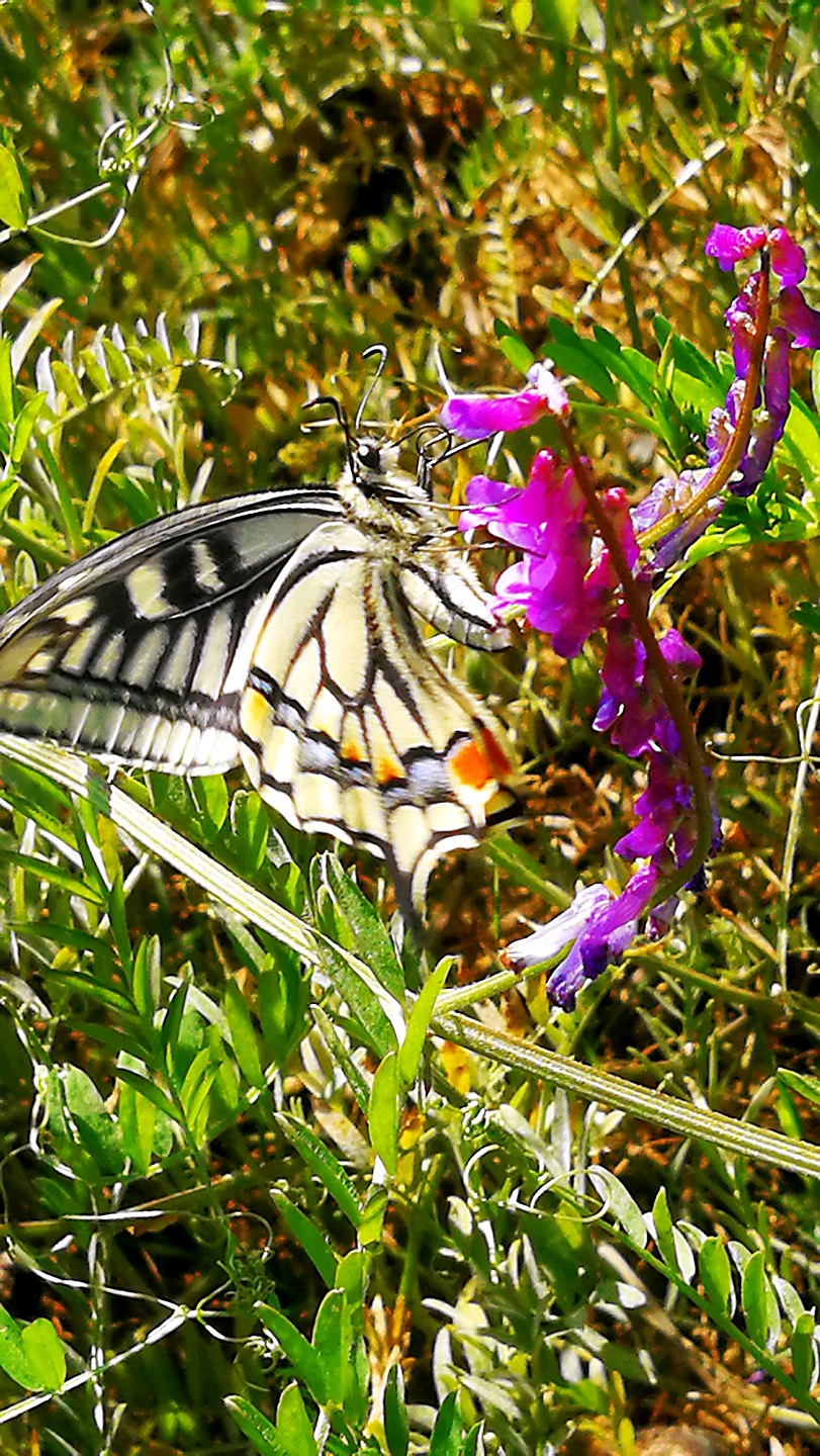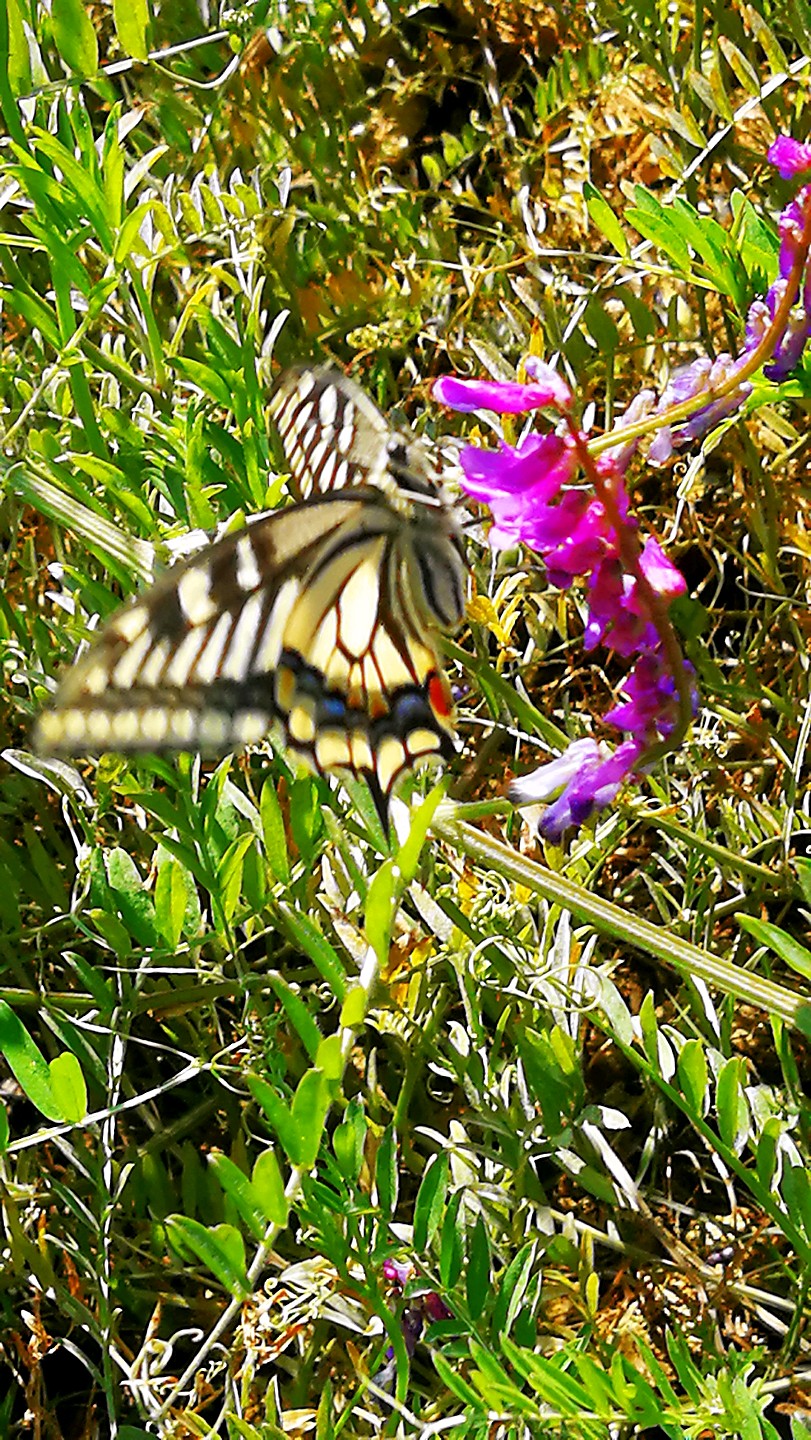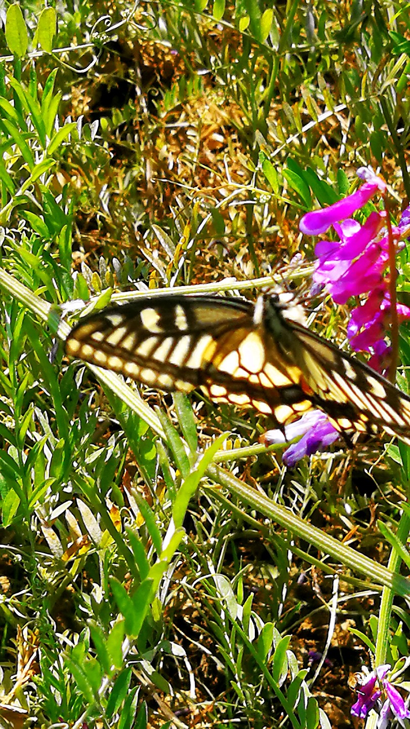 冬天广布野碗豆花上吸蜜的金凤蝶