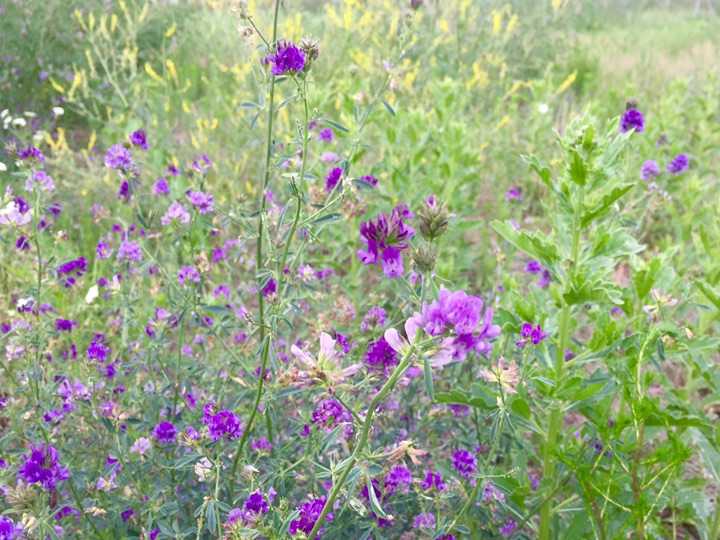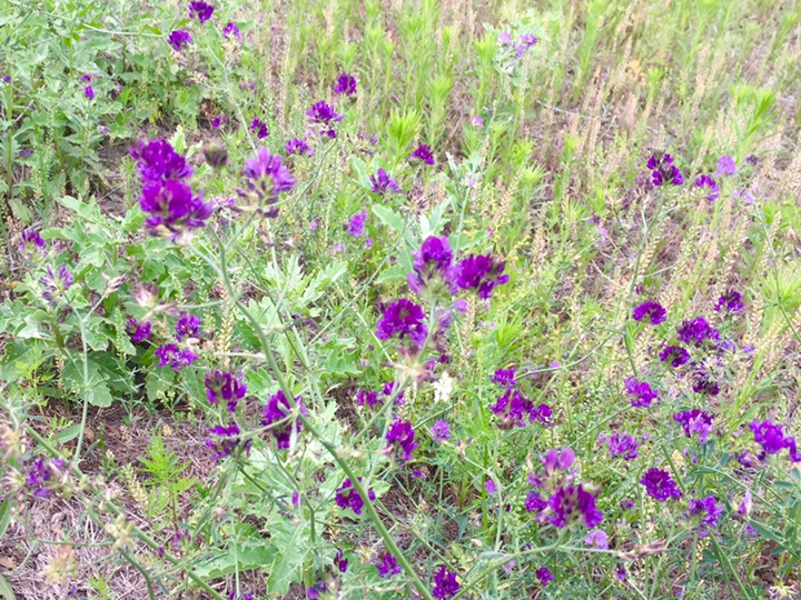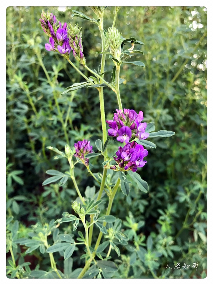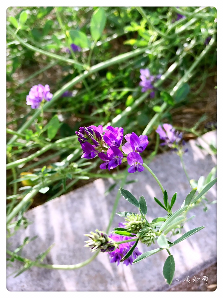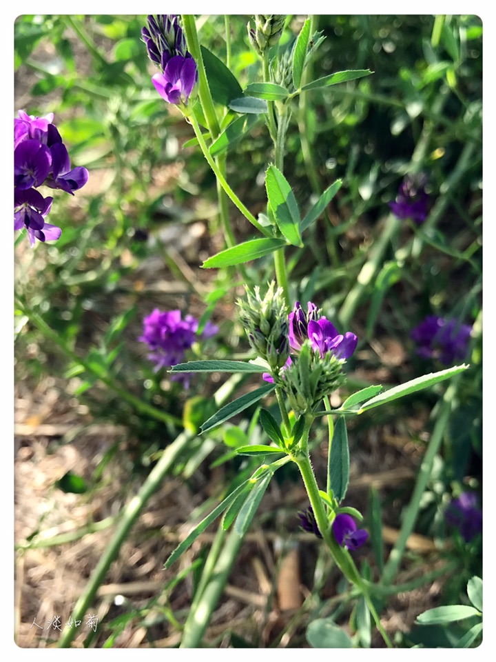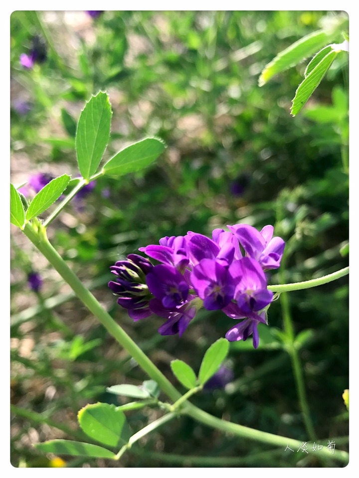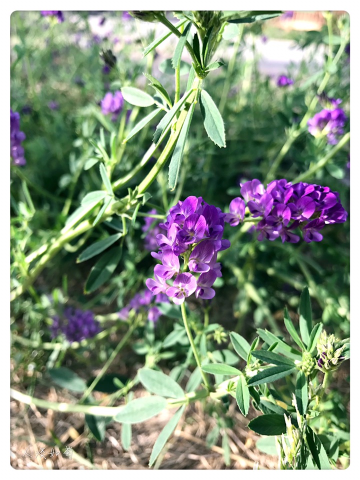 今年在两个地方遇见紫花苜蓿,单花虽小但整个花序那串紫还是很显眼的,从来对紫都没有抵抗力,无论深浅。