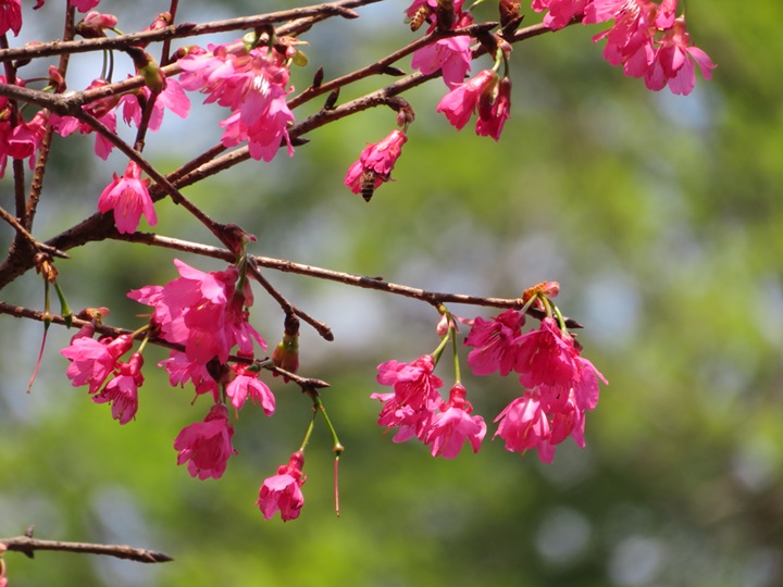满园的樱花除了吸引蜜蜂采蜜外,还引来众多爱花之人的观看与拍照。