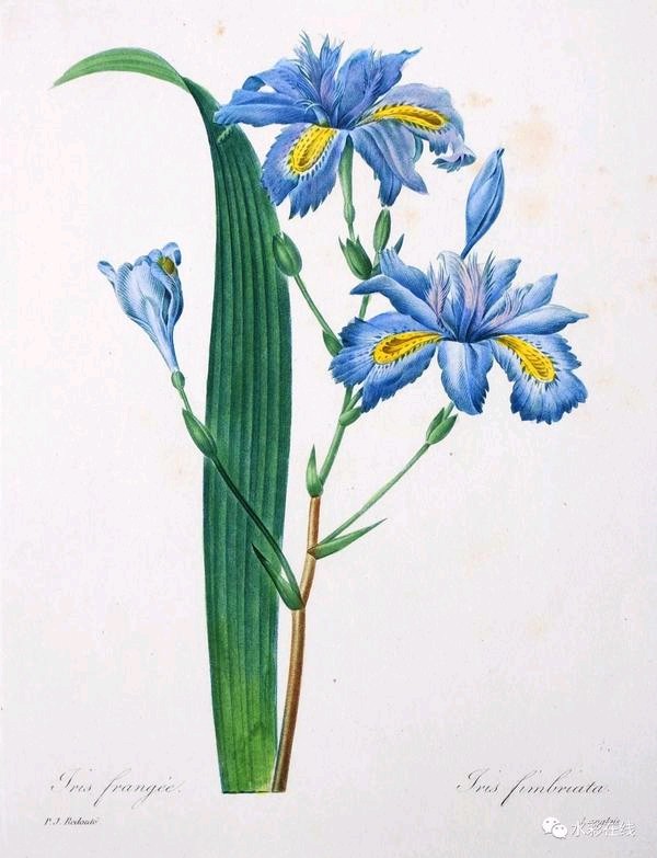 今天😊,这一幅画还是比利时著名画家🇧🇪 雷杜德他画的,他这一幅画画出来了4朵美丽的孔雀鸢尾, 这孔雀鸢尾感觉非常的有动态感,它的叶子也有这样的感觉😄。