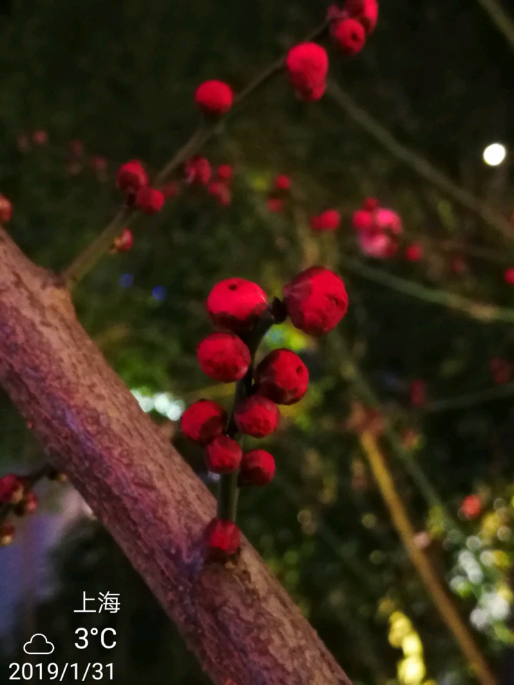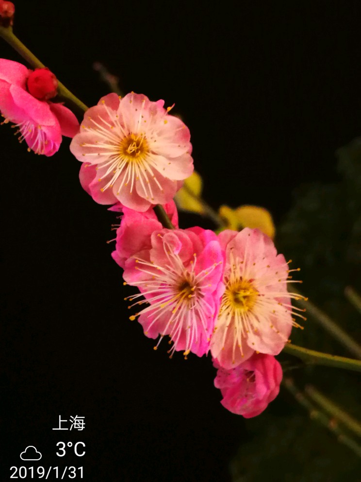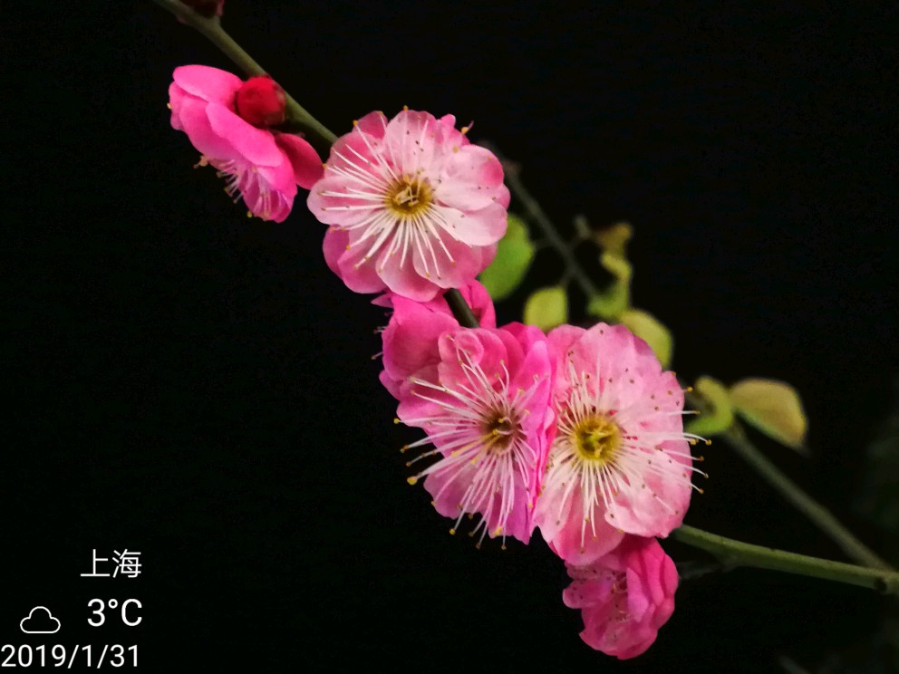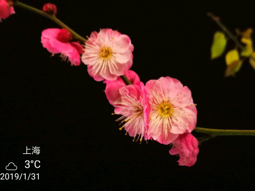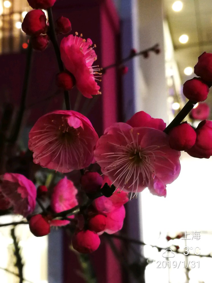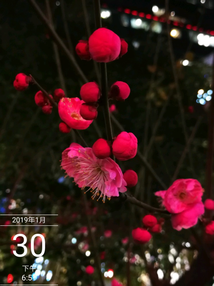 抛弃烦恼,于是拍了几张夜色中的梅花。