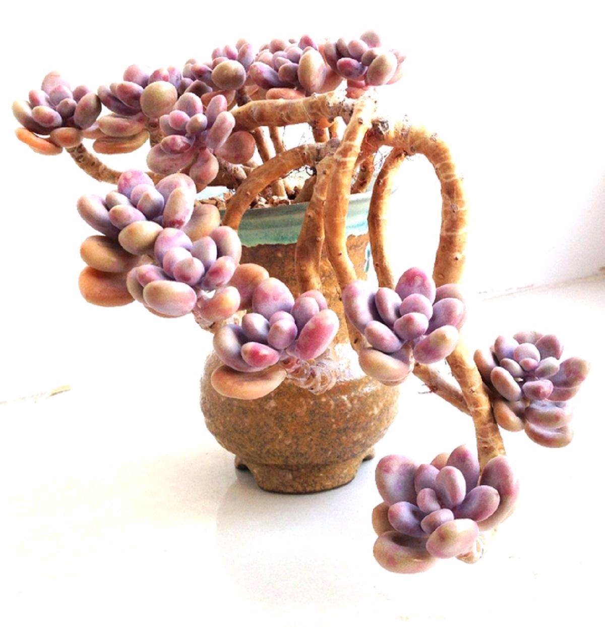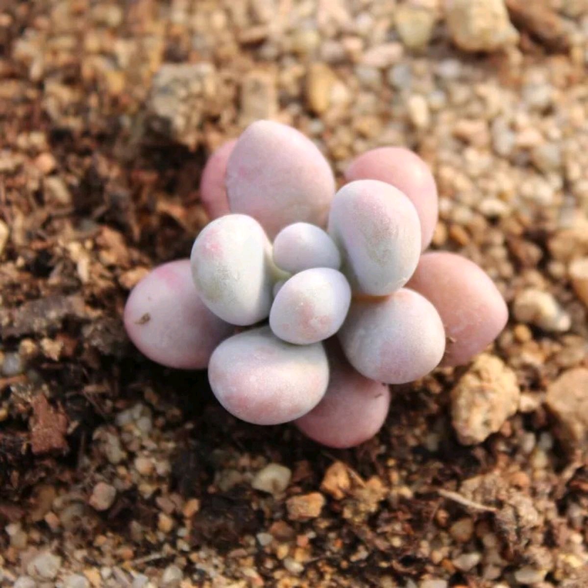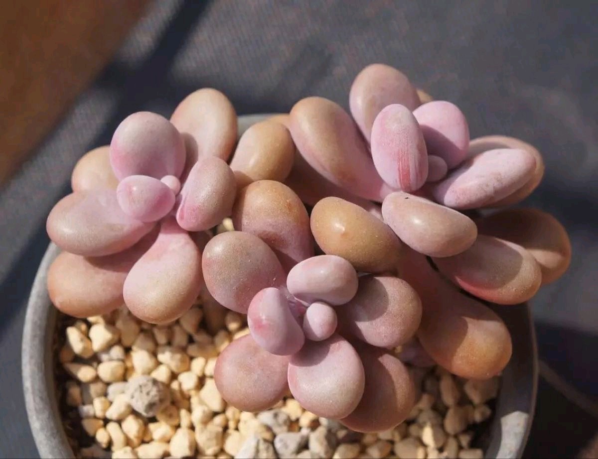 景天科风车草属。有桃蛋(桃之卵)原产自墨西哥的一种风车草,叶片肉质丰满,圆润,带有可爱的淡紫色,粉红色和绿色的色调。叶子表面带有厚厚的粉末覆盖。新长的叶子为粉紫色,随着叶子的变老,会慢慢变绿。生长季节有充足水分时,叶片很饱满圆润,当气温逐渐下降时要适当控水,保持土壤干燥。