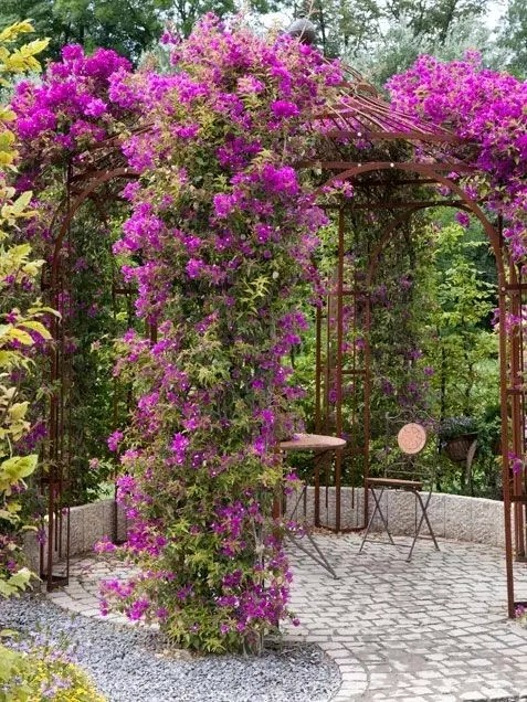 香豌豆:这个比较适合乡村风情的布置,在一些农家游玩区就很适合这类拱门,在拱门的两边种上香豌豆,开出粉色、蓝色、黄色、红色等花儿。