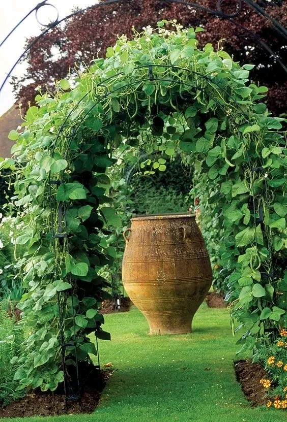 菜豆:和豌豆的风格差不多,不过这种是观叶观果型的植物,花果都没有,那还可以观叶、纳凉呢!种在后院还是不错的!