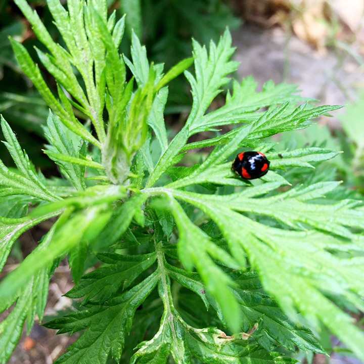 野艾草,配上一只红斑点甲壳虫,美得没话说!采了一大堆艾草回家做艾草香囊。