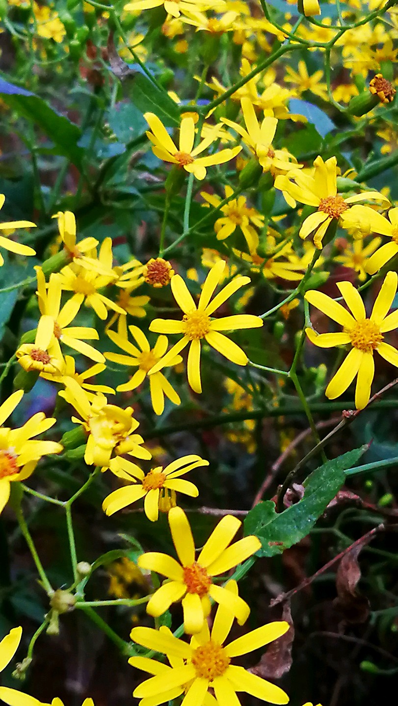 千里光。又名九里明、九里光、千里及、眼明划、黄花草黄贝母、九龙光、九岭光。