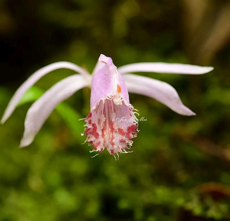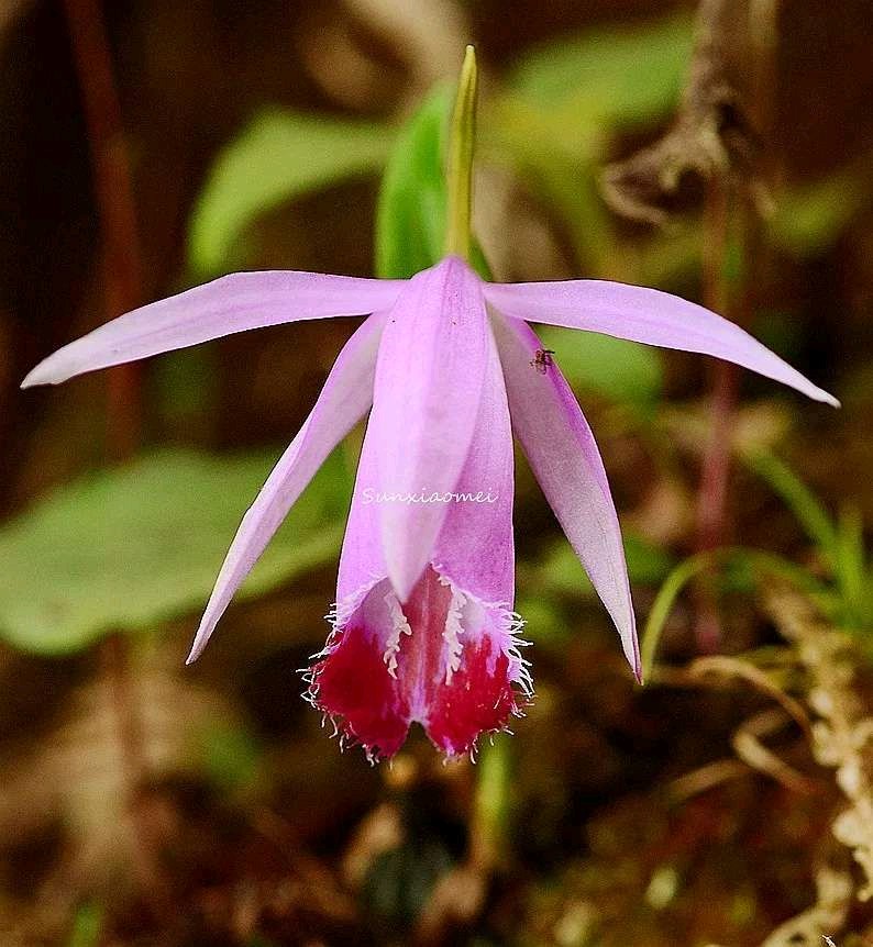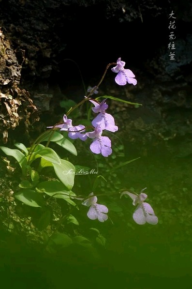 接下来是我家乡特产小精灵上场了!产于浙江的大花无柱兰像一个个穿着粉色纱裙的小公主,在石壁上,在春风里舞动。此时,在深冬的寒冷中,仿佛又感受到春风轻轻柔柔拂过面庞的感觉。据说有植物学家为了纪念李时珍,将它改名为“时珍兰”,对这个名字内心是拒绝的,这个小花儿跟李时珍并无渊源,为何牵强附会冠上这个名字?况且听起来像“屎真烂”![]()