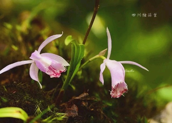 而在四川海拔一千多米的溪谷里,四川独蒜兰也迎来了花期。独蒜兰因假鳞茎形似一个独蒜头而得名。