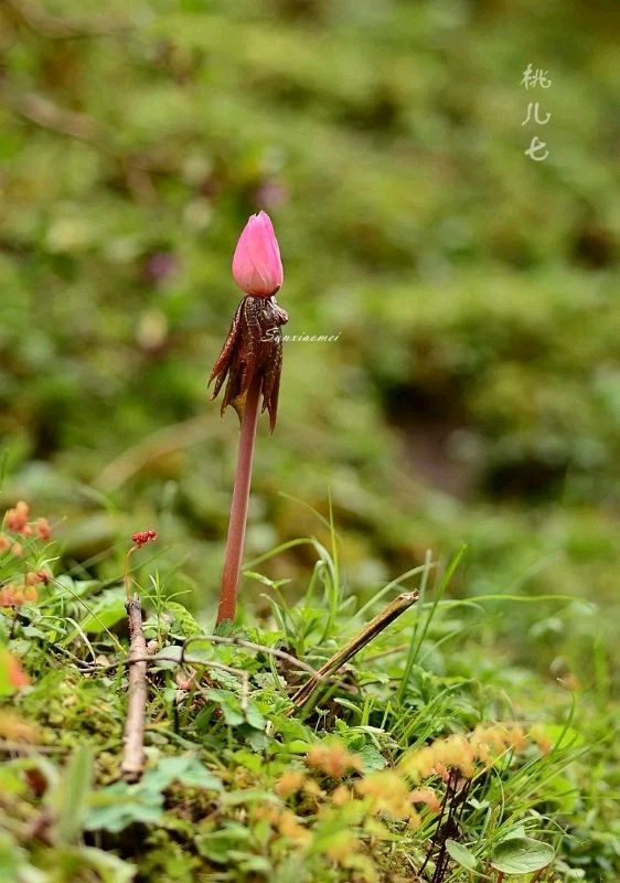 6月初的高山上,有一种可爱的小花朵也钻出了地面,粉粉嫩嫩的花苞犹如一只水蜜桃,于是,它有了个可爱娇俏的名字——桃儿七。这让前面的膀胱果同学泪流满面,同样都是粉花花,待遇怎么差这么多!