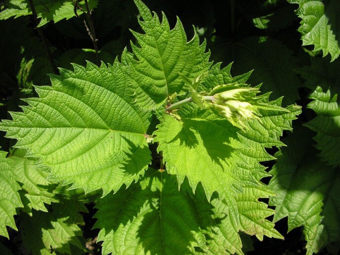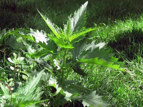 荨麻(学名:Urtica fissa E. Pritz.):多年生草本植物,高可达100厘米,四棱形,分枝少。叶片近膜质,宽卵形、椭圆形、五角形或近圆形轮廓,裂片自下向上逐渐增大,三角形或长圆形,上面绿色或深绿色,下面浅绿色,叶柄密生刺毛和微柔毛;托叶草质,绿色,雌雄同株,花序圆锥状,雄花具短梗,花被片在中下部合生,雌花小,几乎无梗;瘦果近圆形,表面有带褐红色的细疣点;8-10月开花,9-11月结果。荨麻分布于中国安徽、浙江、福建、广西、湖南、湖北、河南、陕西南部、甘肃东南部、四川、贵州和云南中部。越南北部也有分布。生于海拔约100米或500-2000米的山坡、路旁或住宅旁半荫湿处。