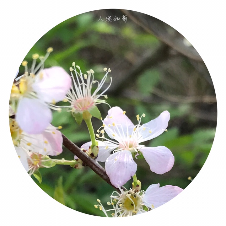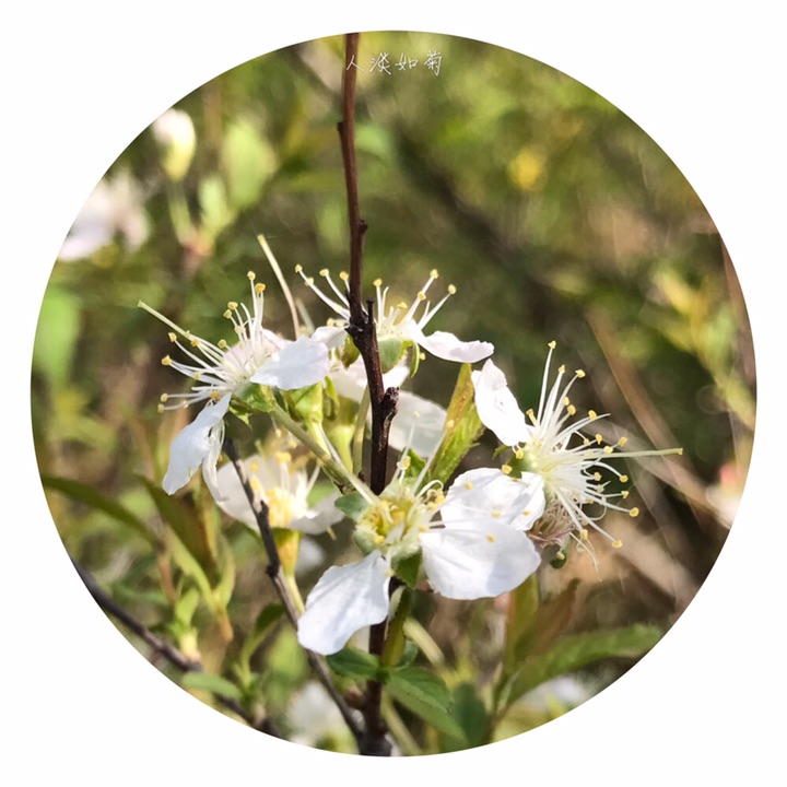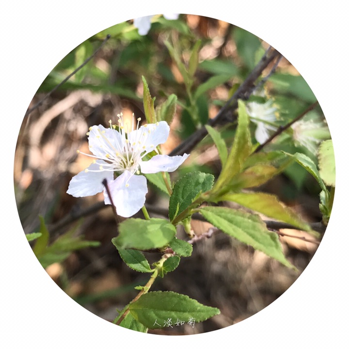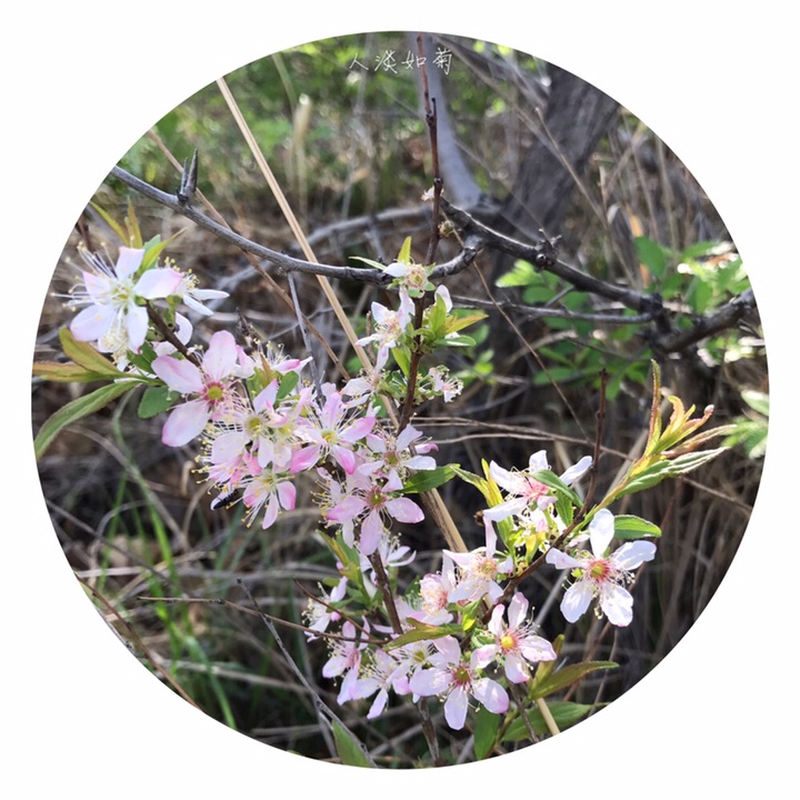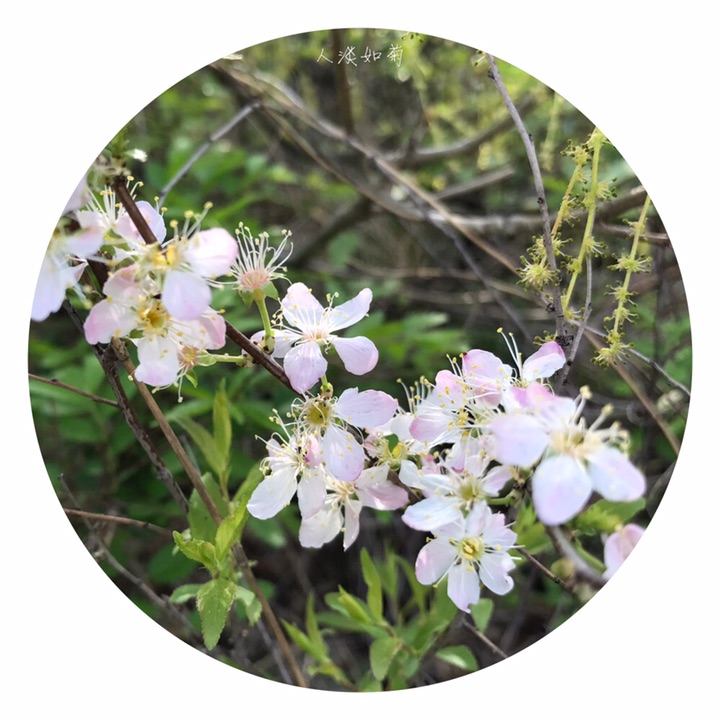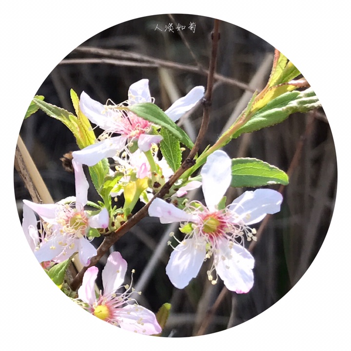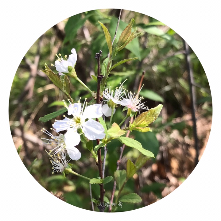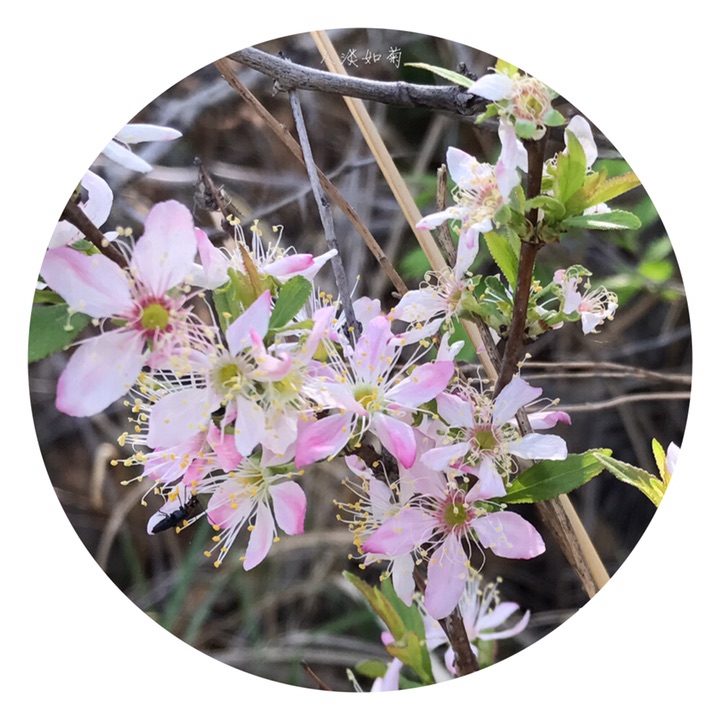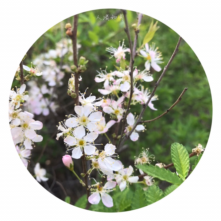 灌木,高1-1.5米。小枝灰褐色,嫩枝绿色或绿褐色,无毛。冬芽卵形,无毛。叶片卵形或卵状披针形,长3-7厘米,宽1.5-2.5厘米,先端渐尖,基部圆形,边有缺刻状尖锐重锯齿,上面深绿色,无毛,下面淡绿色,无毛或脉上有稀疏柔毛,侧脉5-8对;叶柄长2-3毫米,无毛或被稀疏柔毛;托叶线形,长4-6毫米,边有腺齿。花1-3朵,簇生,花叶同开或先叶开放;花梗长5-10毫米,无毛或被疏柔毛;萼筒陀螺形,长宽近相等,约2.5-3毫米,无毛,萼片椭圆形,比萼筒略长,先端圆钝,边有细齿;花瓣白色或粉红色,倒卵状椭圆形;雄蕊约32;花柱与雄蕊近等长,无毛。核果近球形,深红色,直径约1厘米;核表面光滑。花期5月,果期7-8月。2n=16。