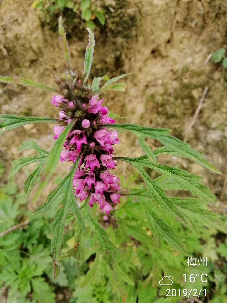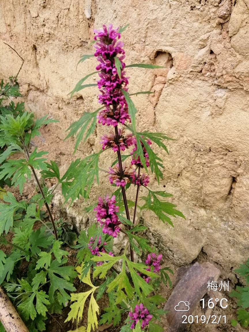 春节假期,回了一趟乡下。散步时,看到水塘边和破屋下竟长有益母草。