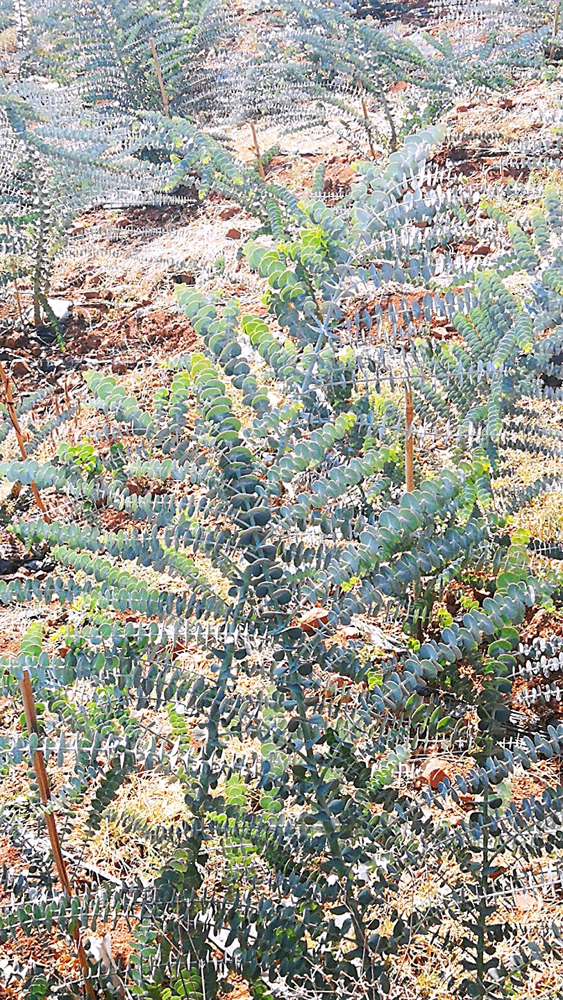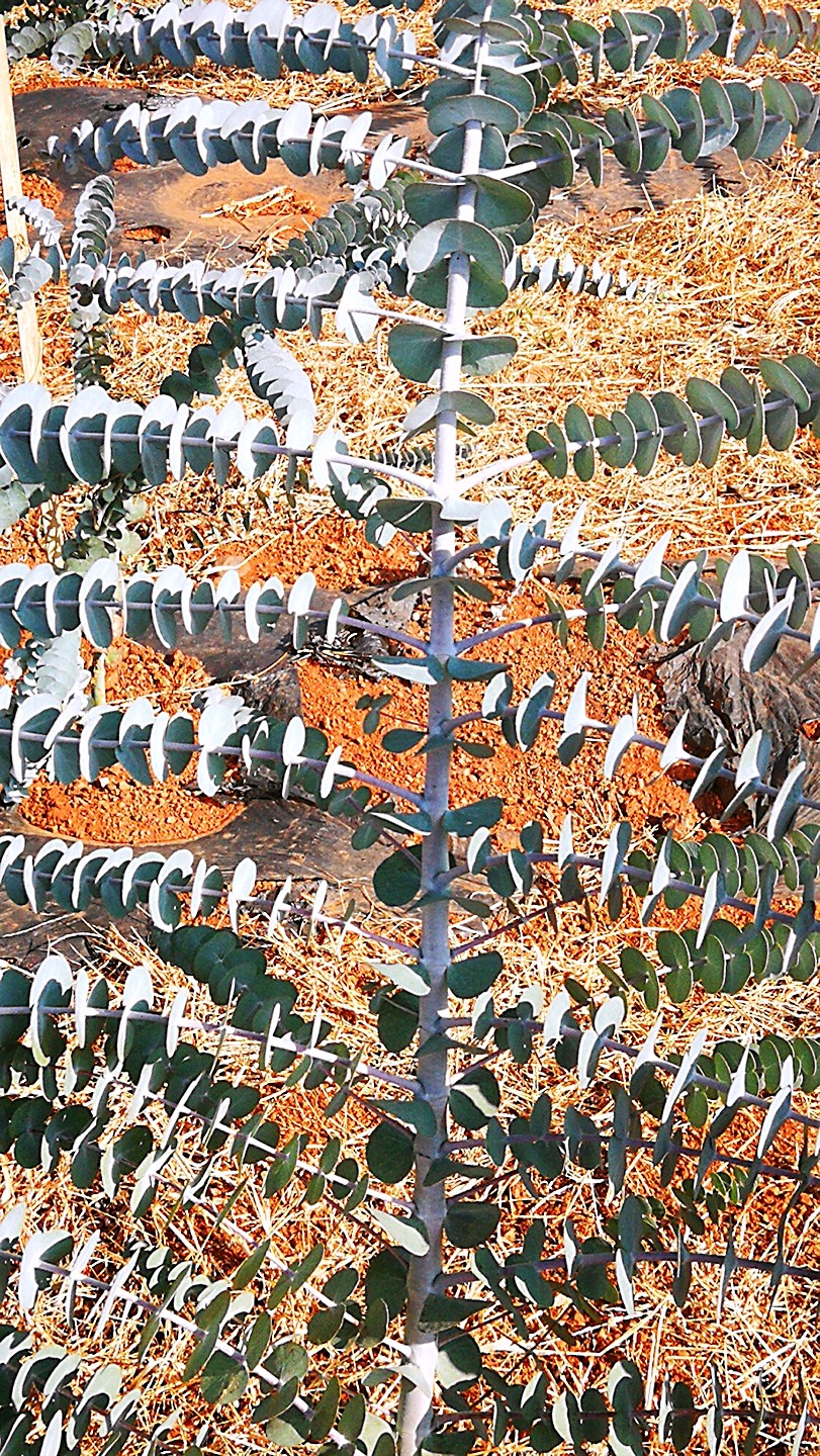 :荒山坡上圆叶桉,老是老,有点老。 风吹日晒缺水浇,好不好,有些好。