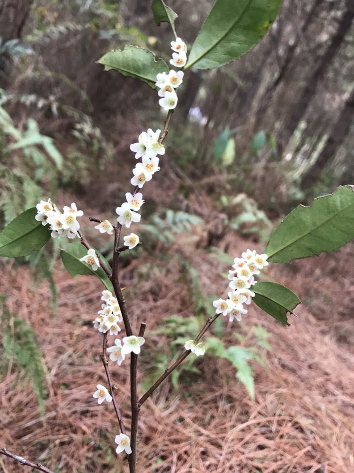 比如这低矮的柃木,在这咋暖还寒的季节,花细细碎碎的开了很多,小小的,直径不过几毫米,却依旧精致,低垂着直接点缀在枝头。把鼻子凑近,还能闻到柃木花那特有的似有似无的淡淡香味
