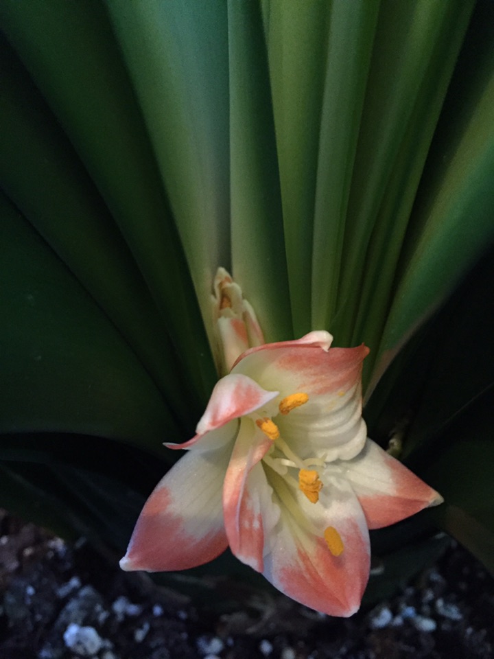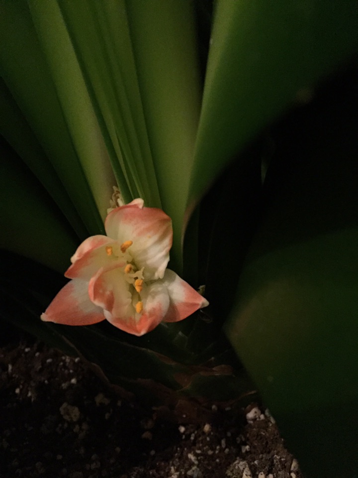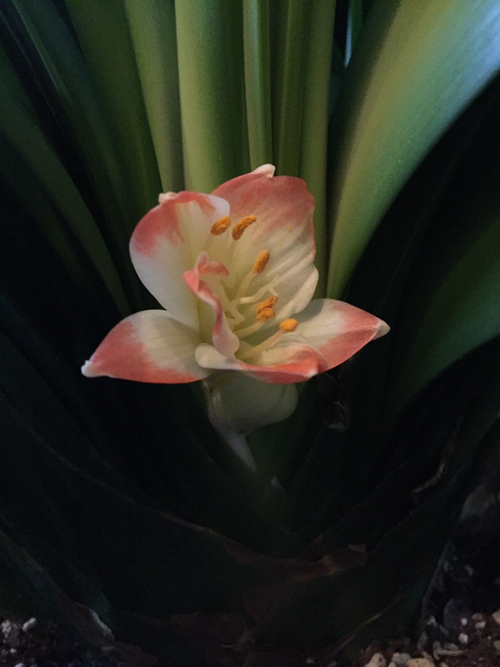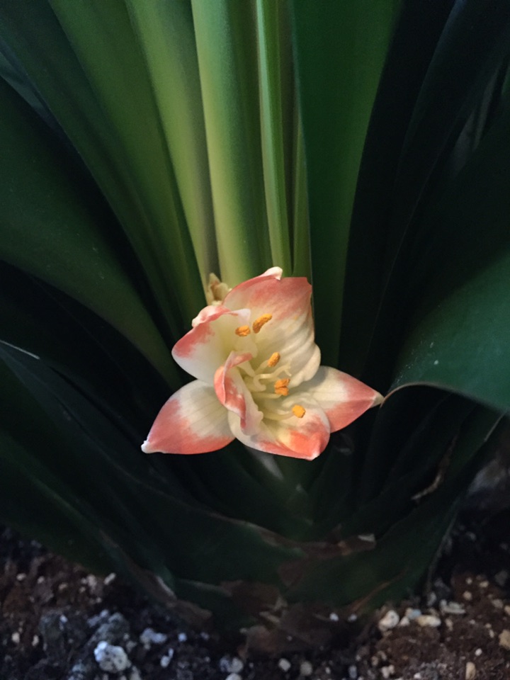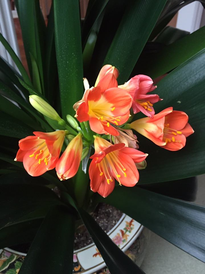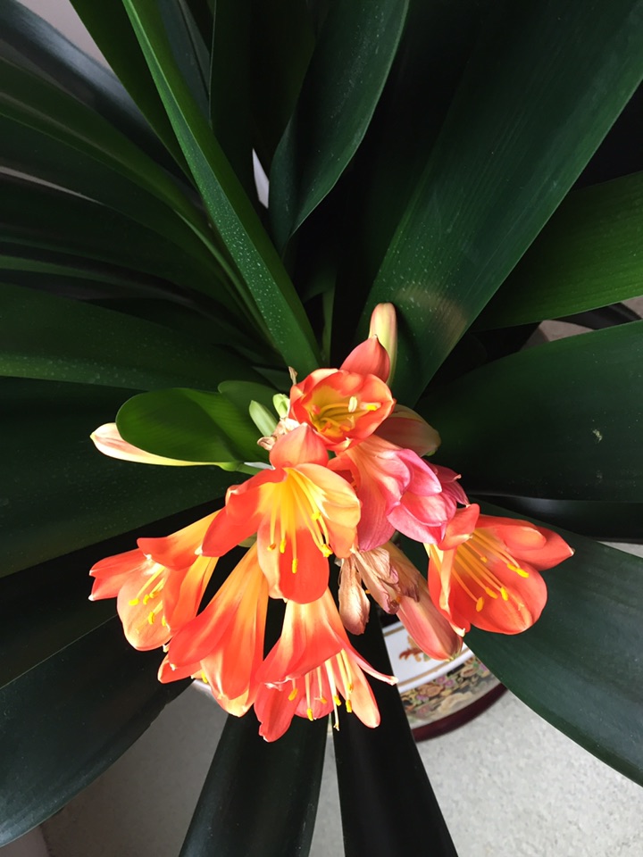 这盆君子兰去年五、六月份开过一次花儿 明艳动人 大半年之后又开一次花儿 真是很高兴!