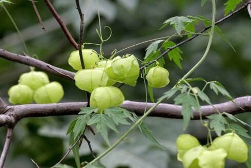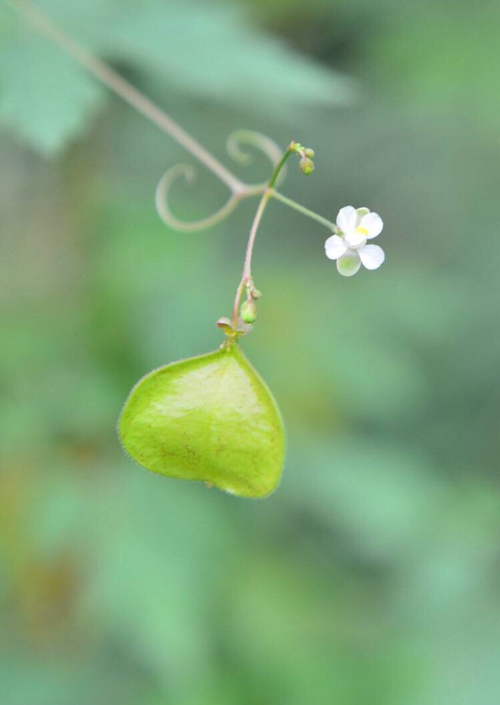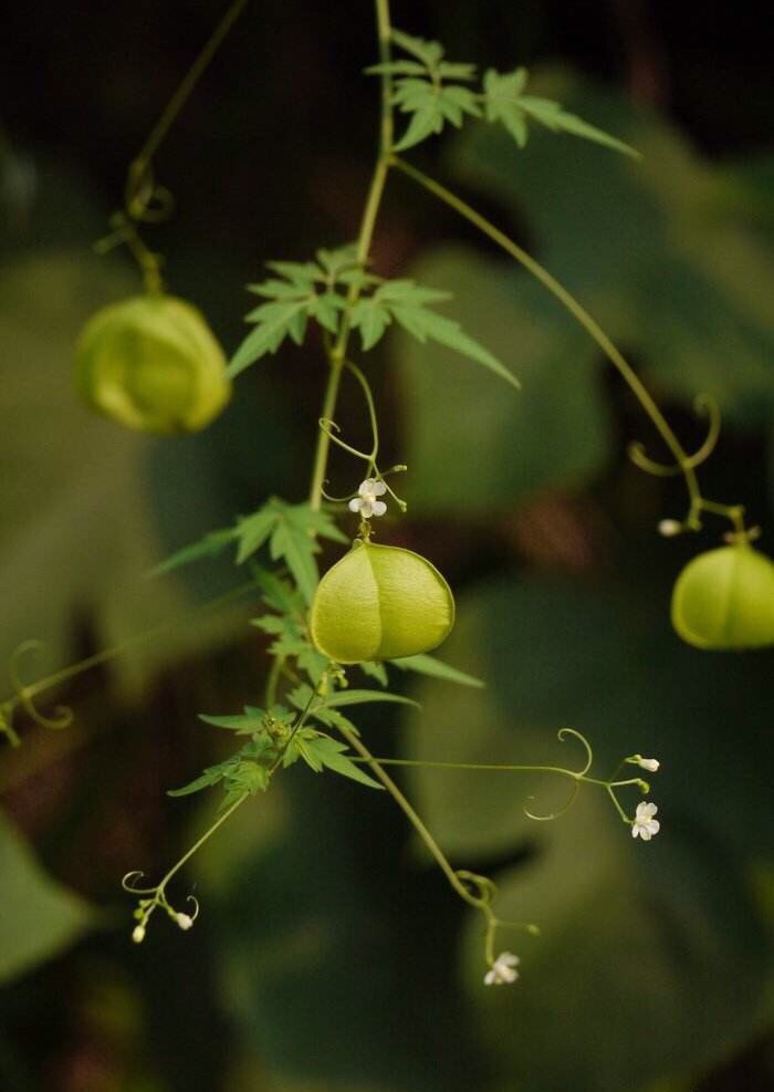 倒地铃亦称心豆藤(heart-pea)或白心籽(heart-seed)。 学名Cardiospermum halicacabum。无患子科(Sapindaceae)多年生木质藤本植物,原产美洲亚热带和热带地区。是一种常见的观赏植物。花白色,果膨大近於球形。横径约2.5公分(1吋)。种子黑色,有心形的白斑。多年生的蔓藤可长达3公尺(10呎),但倒地铃通常是作为一年生植物由种子繁育而成。