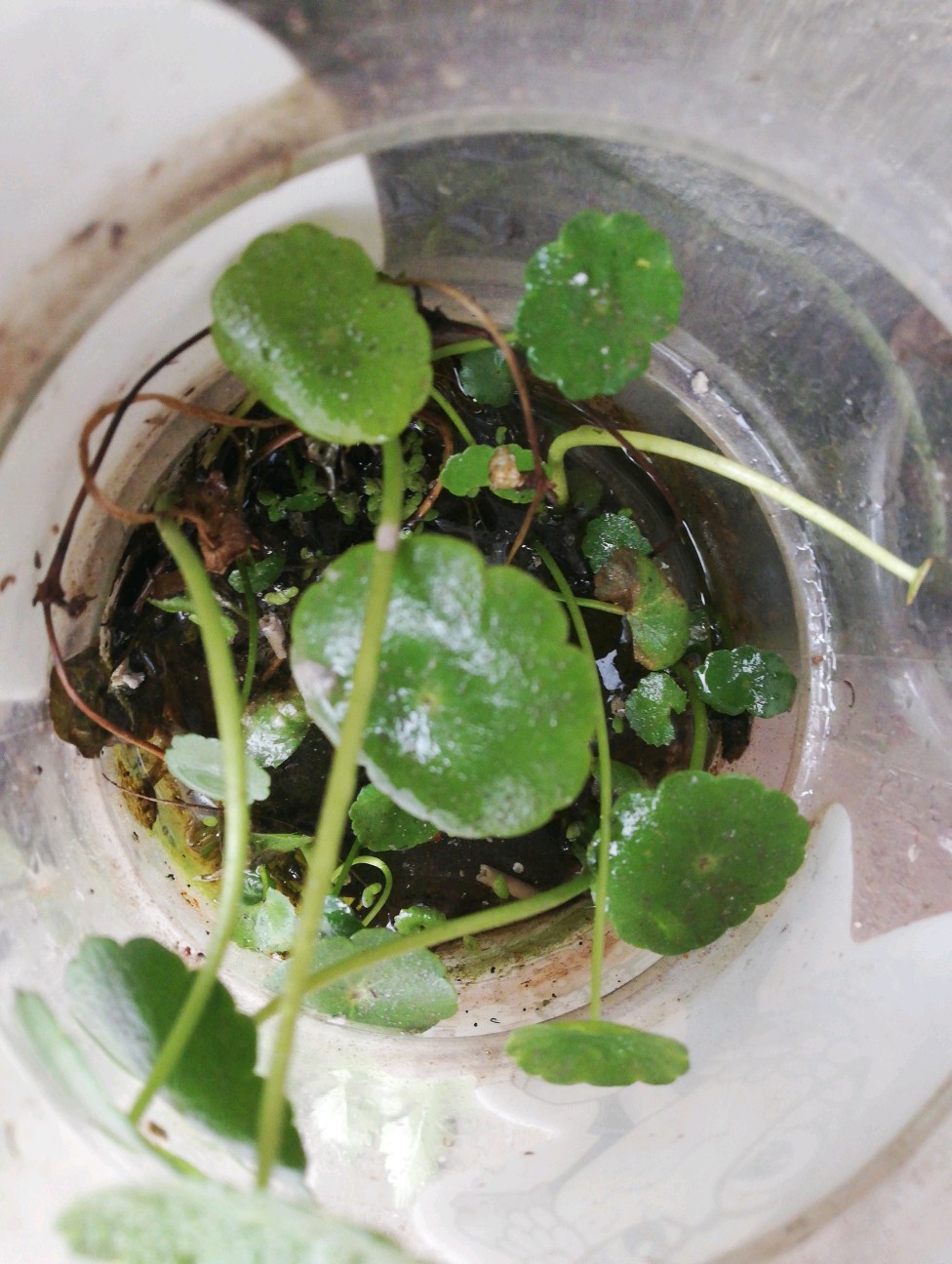 多年生挺水或湿生观赏植物。植株具有蔓生性,株高5~15cm,节上常生根。茎顶端呈褐色。叶互生,具长柄,圆盾形,直径2~4cm,缘波状,草绿色,叶脉15~20条放射状。花两性;伞形花序;小花白色。果为分果。花期6~8月。