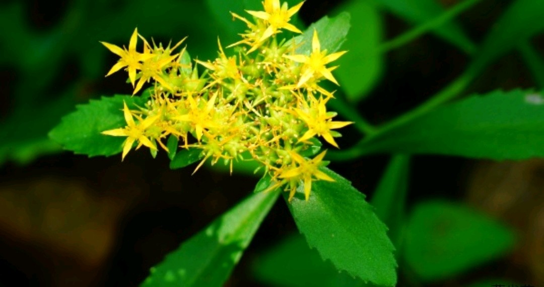 费菜多年生草本植物,根状茎短,粗茎高可达50厘米,直立。叶互生,叶坚实, 近革质。聚伞花序有多花,萼片肉质,花瓣黄色,花柱长钻形。种子椭圆形,花期6-7月,果期8-9月。