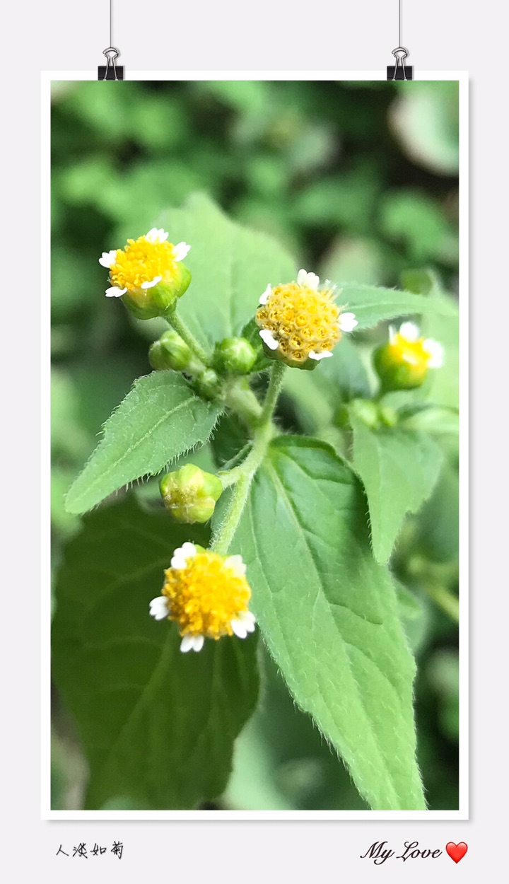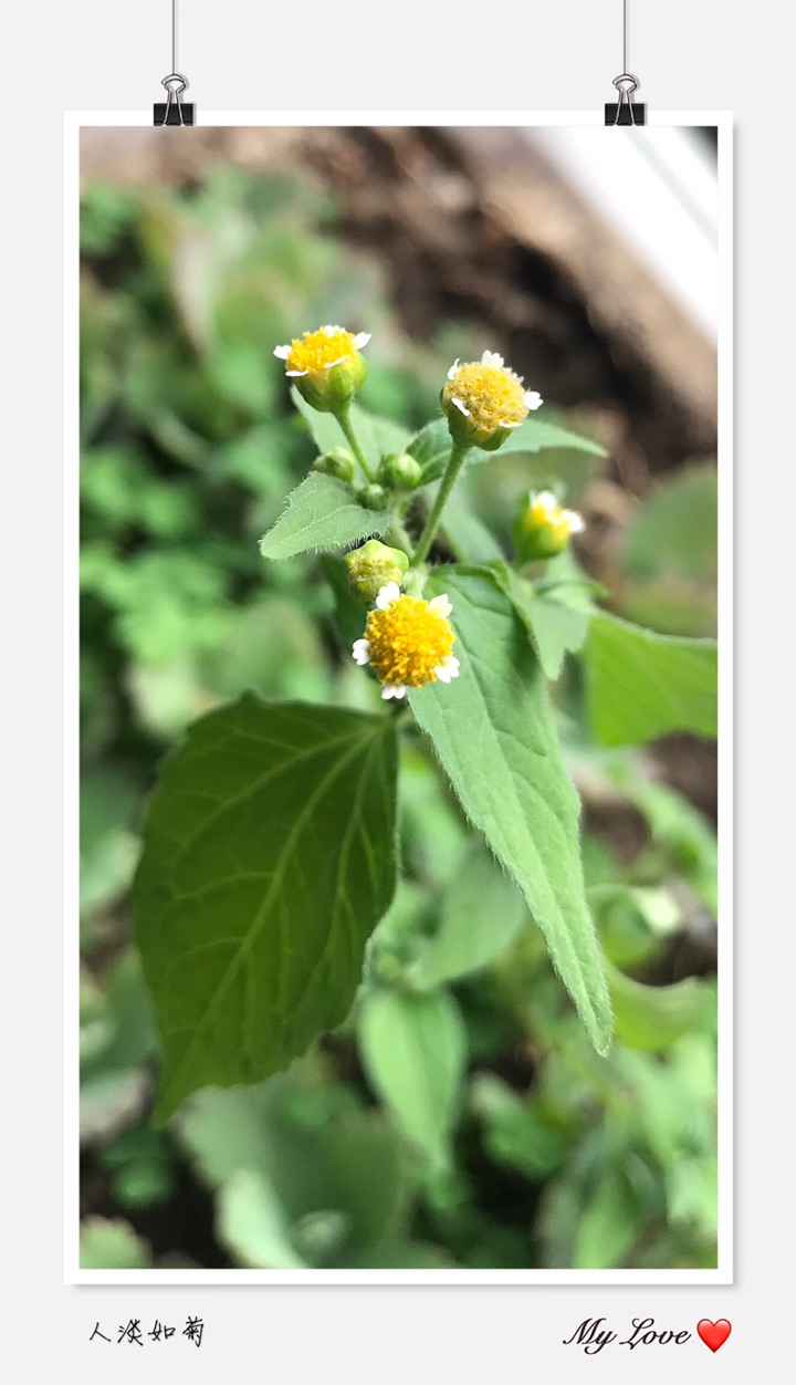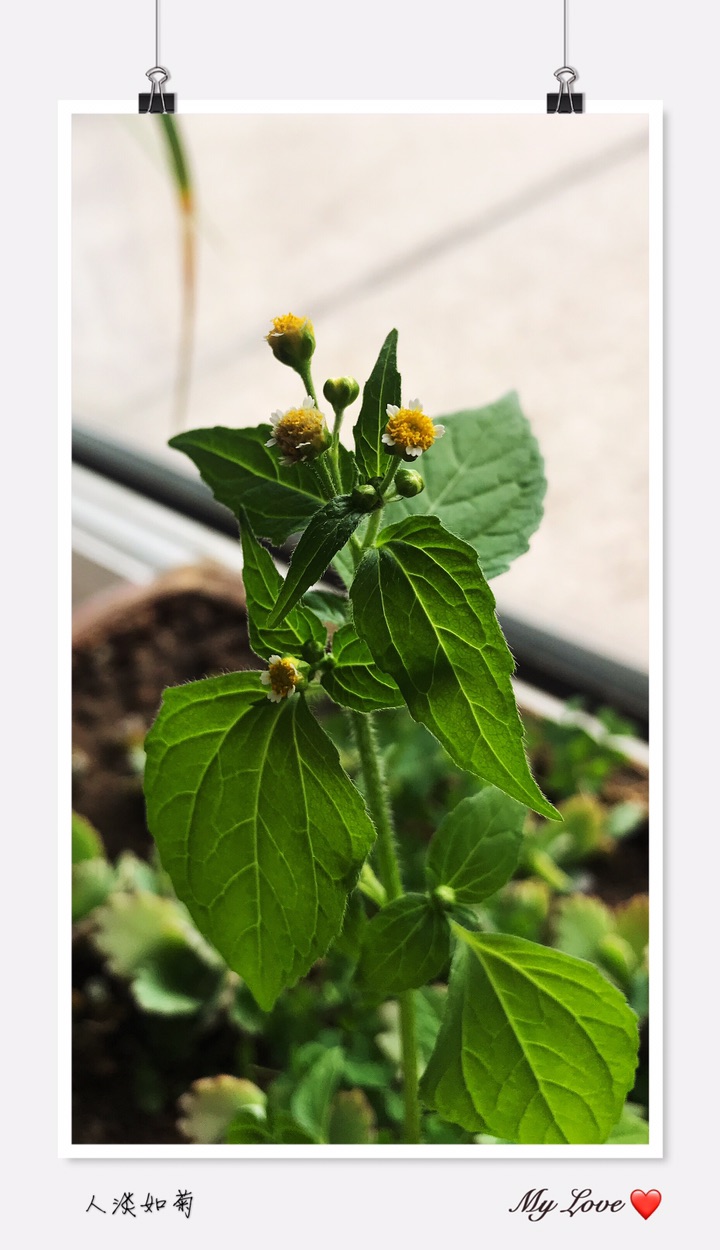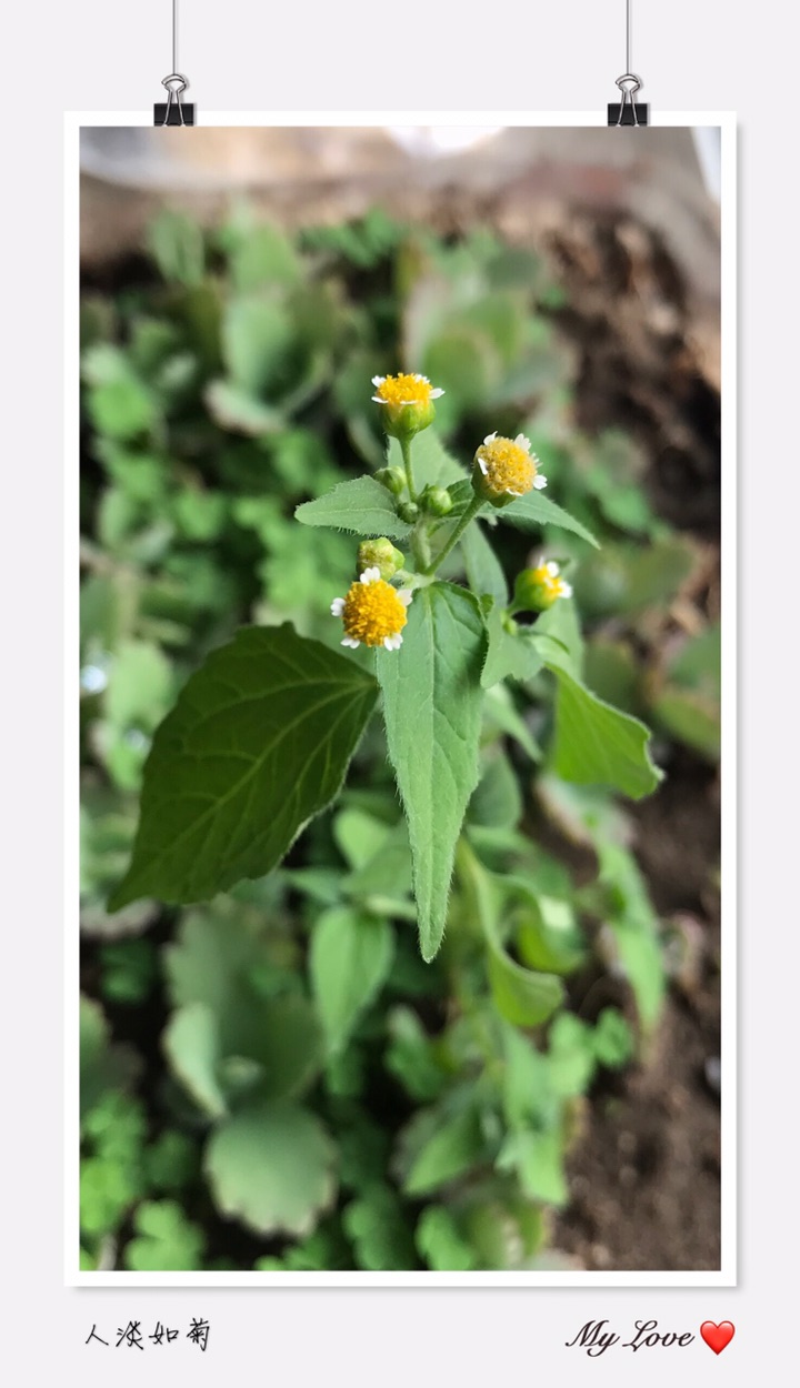牛膝菊(拉丁学名:Galinsoga parviflora Cav.)别称辣子草、向阳花、珍珠草、铜锤草。是菊科,牛膝菊属一年生草本植物,高可达80厘米。茎纤细,叶对生,叶片卵形或长椭圆状卵形,有叶柄,头状花序半球形,有长花梗,总苞半球形或宽钟状,总苞片外层短,内层卵形或卵圆形,舌状花,舌片白色,筒部细管状,托片纸质,瘦果常压扁,7-10月开花结果。