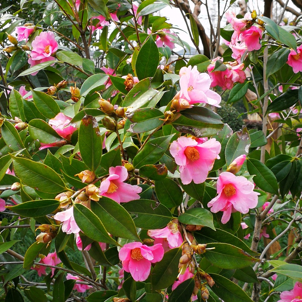 繁花的茶花。