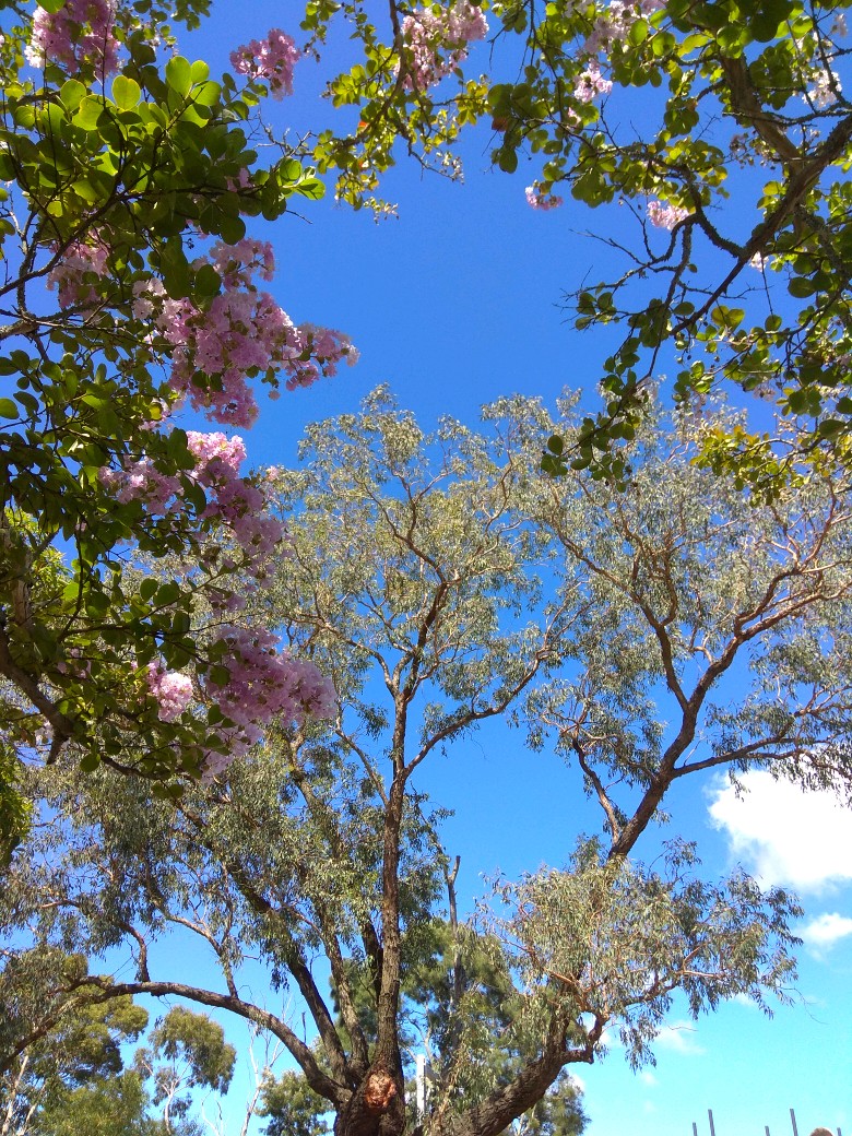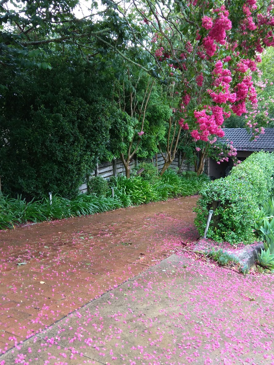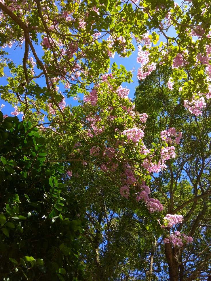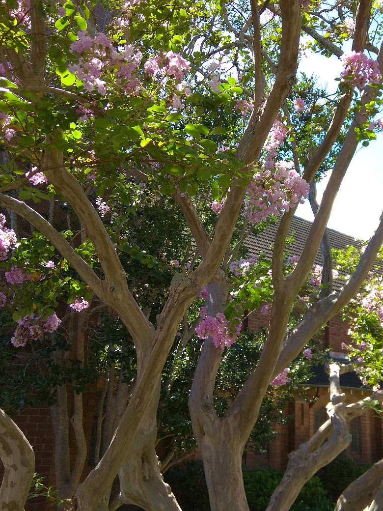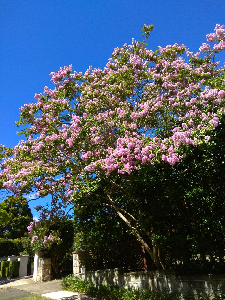 今夏真热,两个月来反反复复40°C很多次了,紫薇却开得从来没有的好。最喜欢晴空配紫薇了