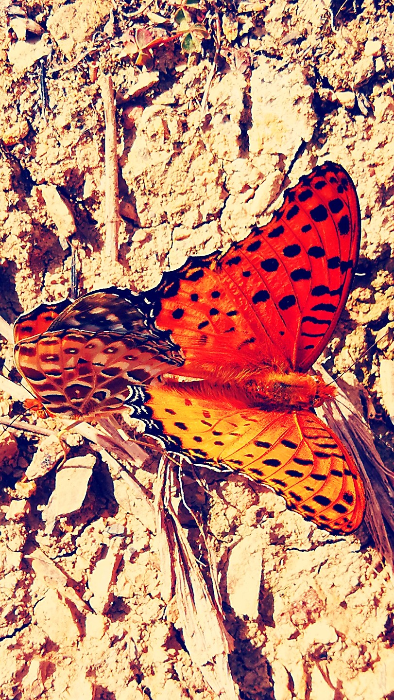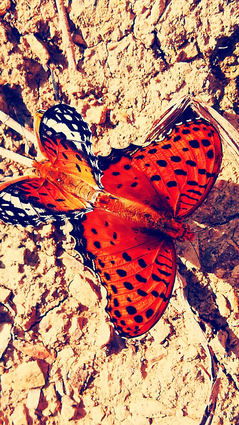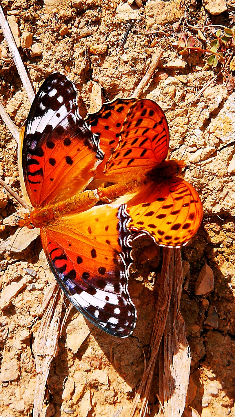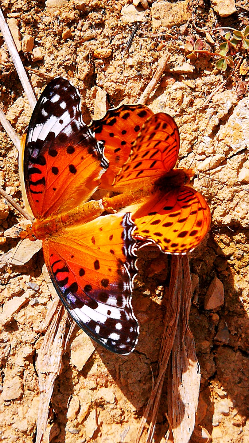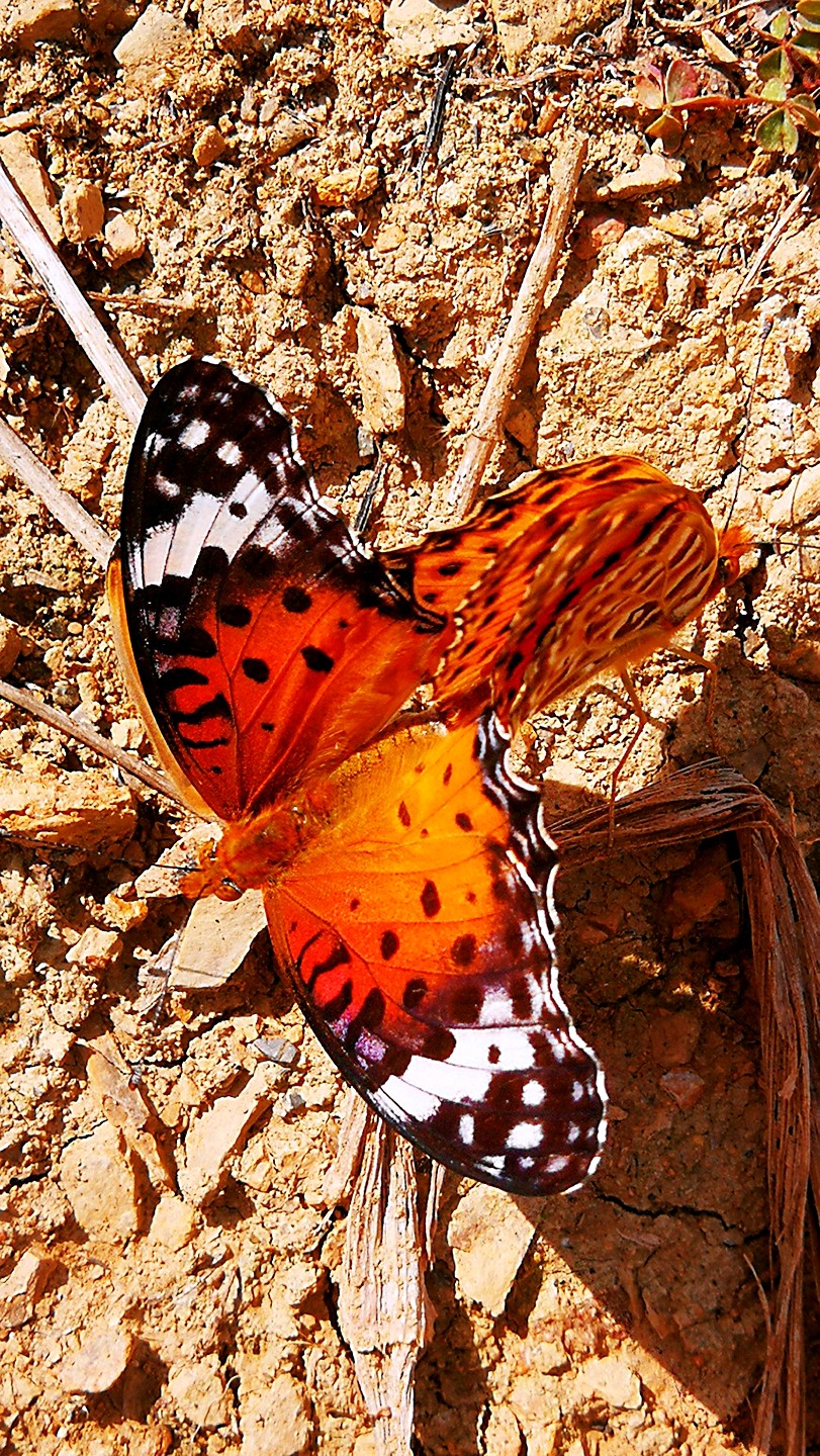 暖暖的黄土地上停歇的双斐豹蛱蝶