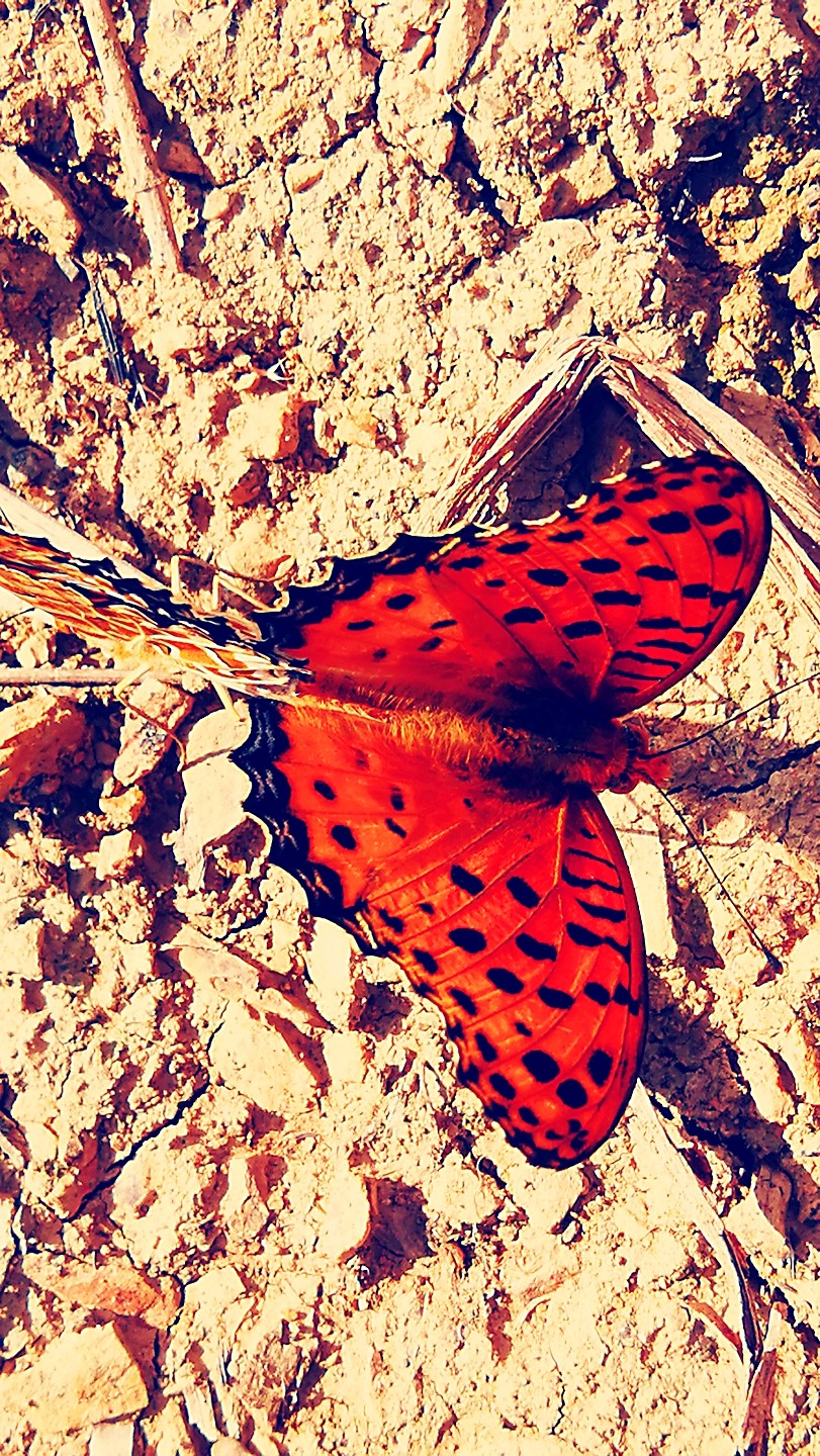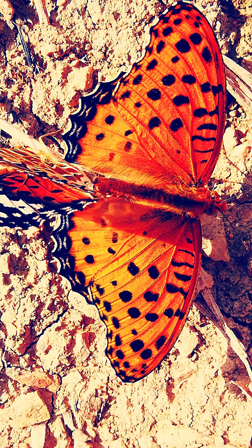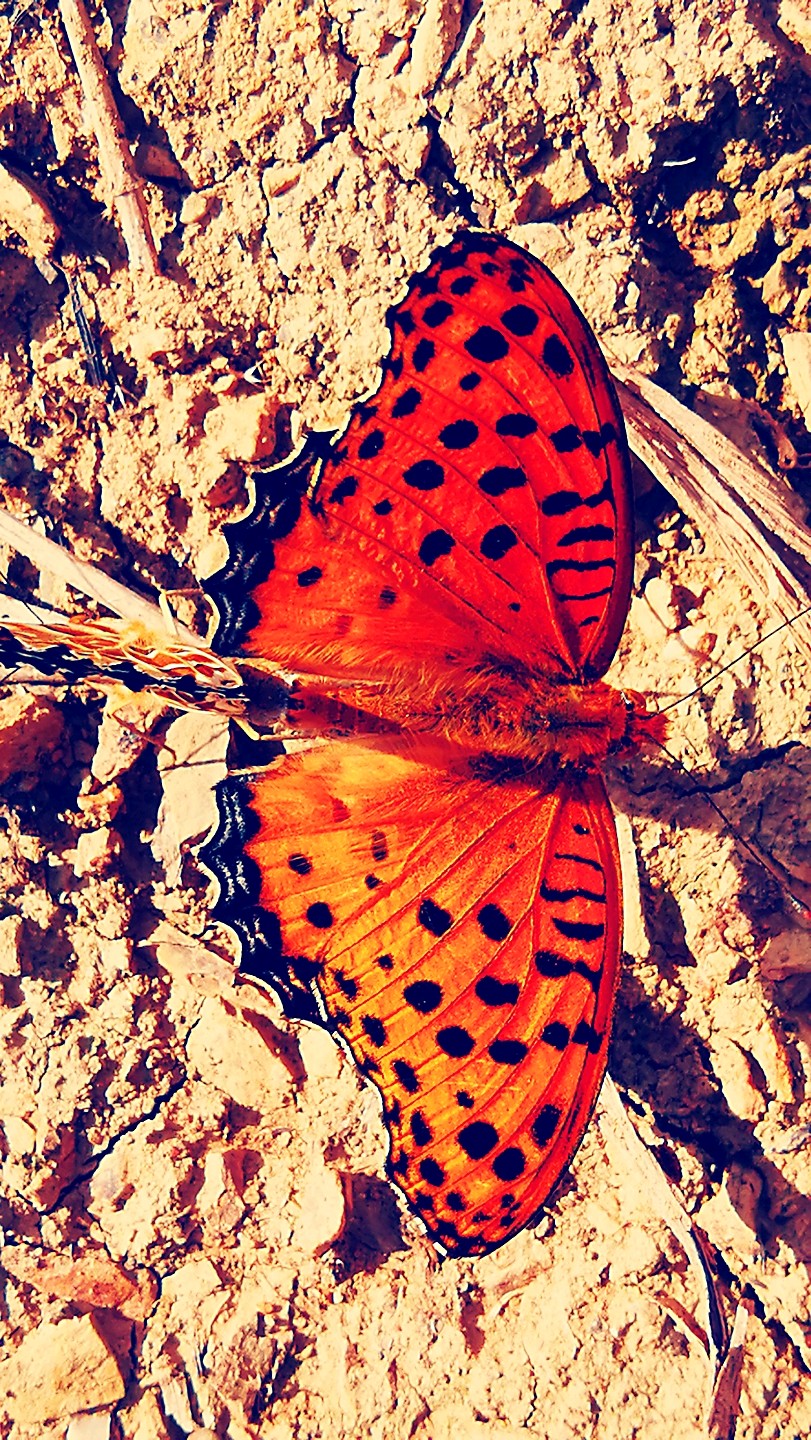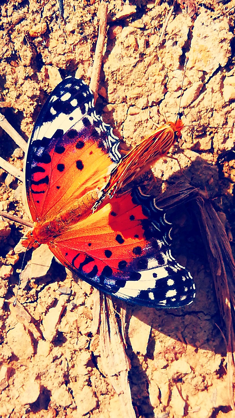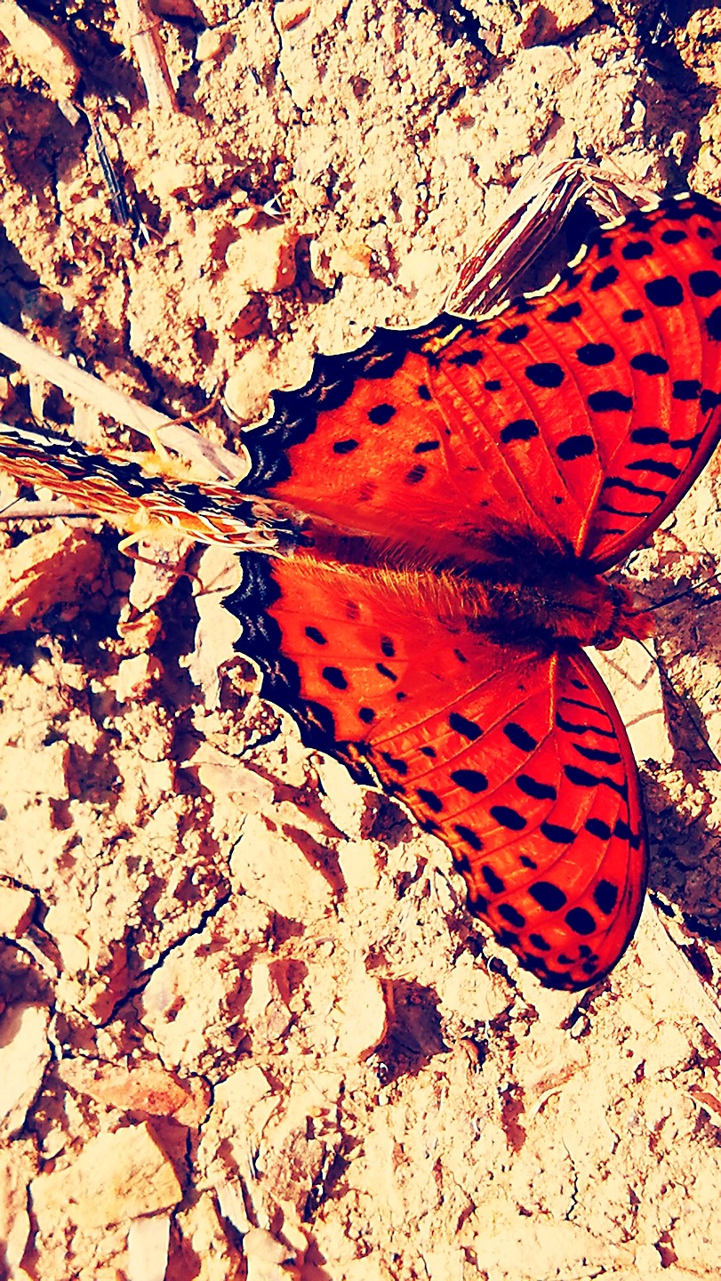 暖暖的黄土地上停歇的双斐豹蛱蝶