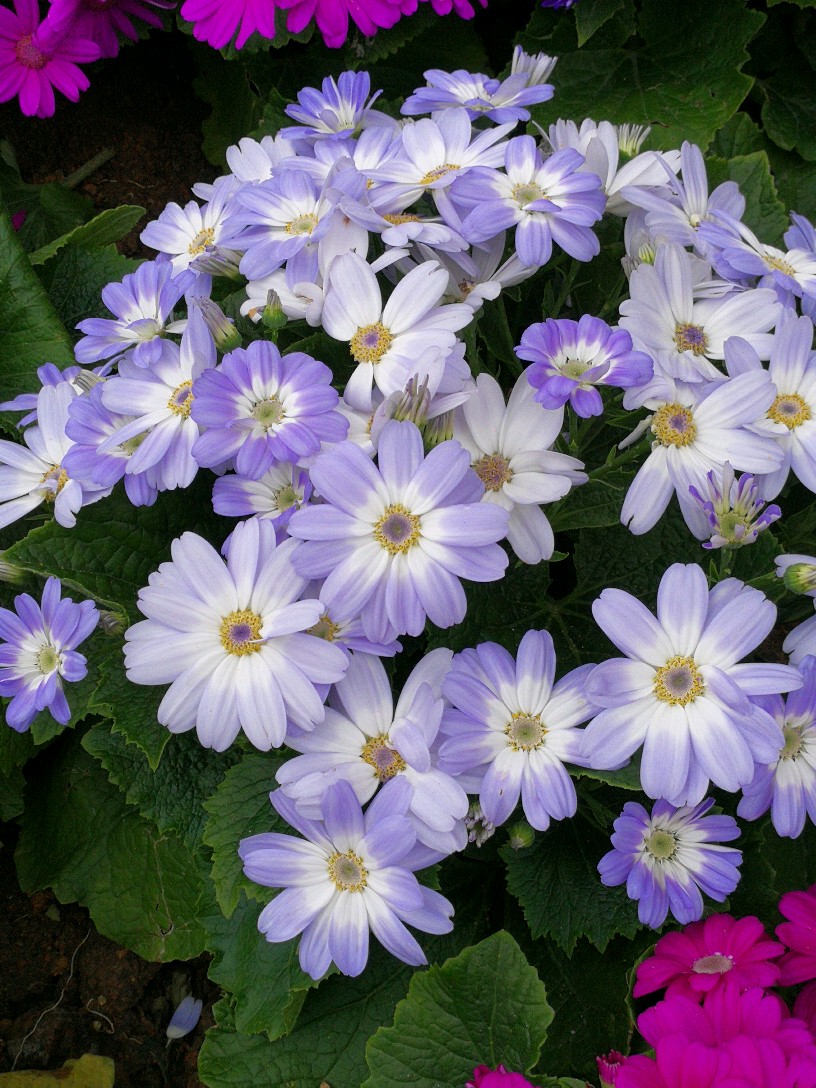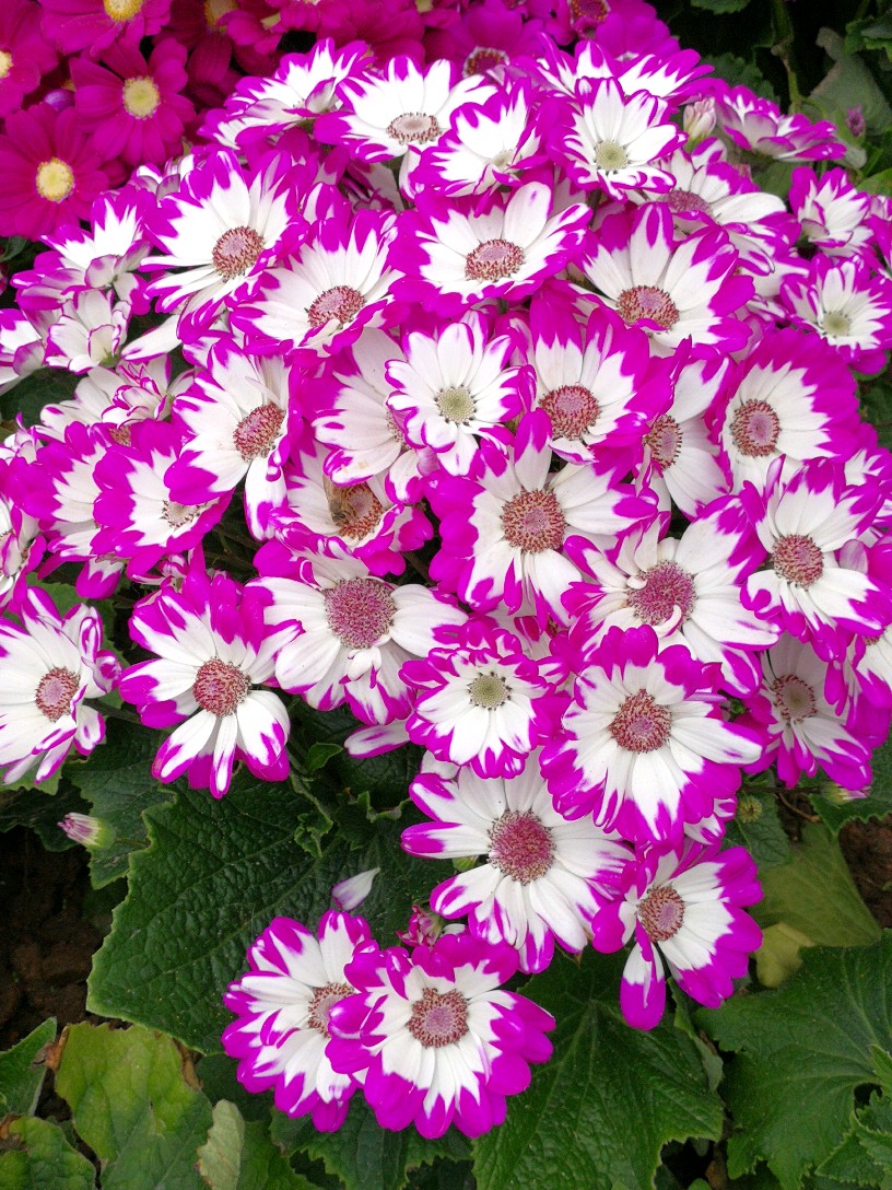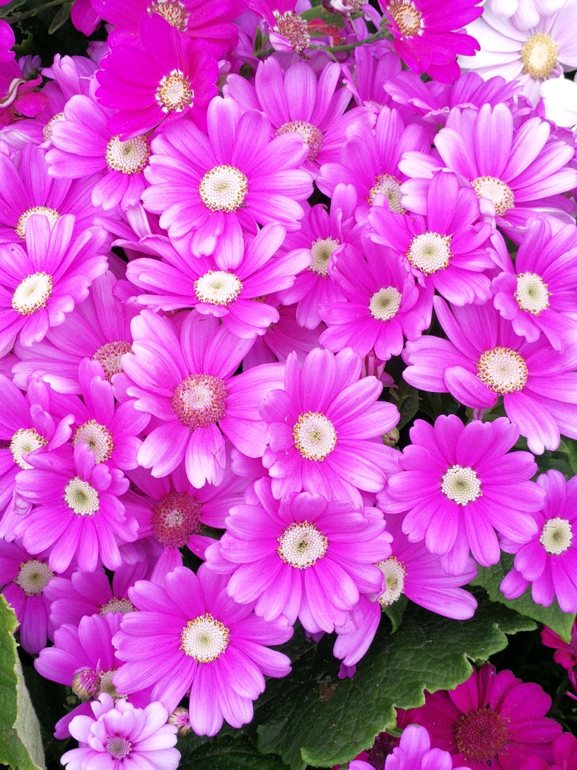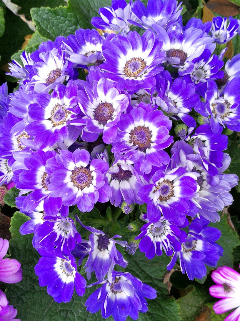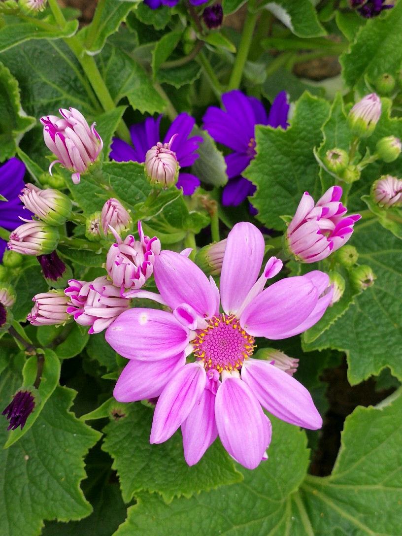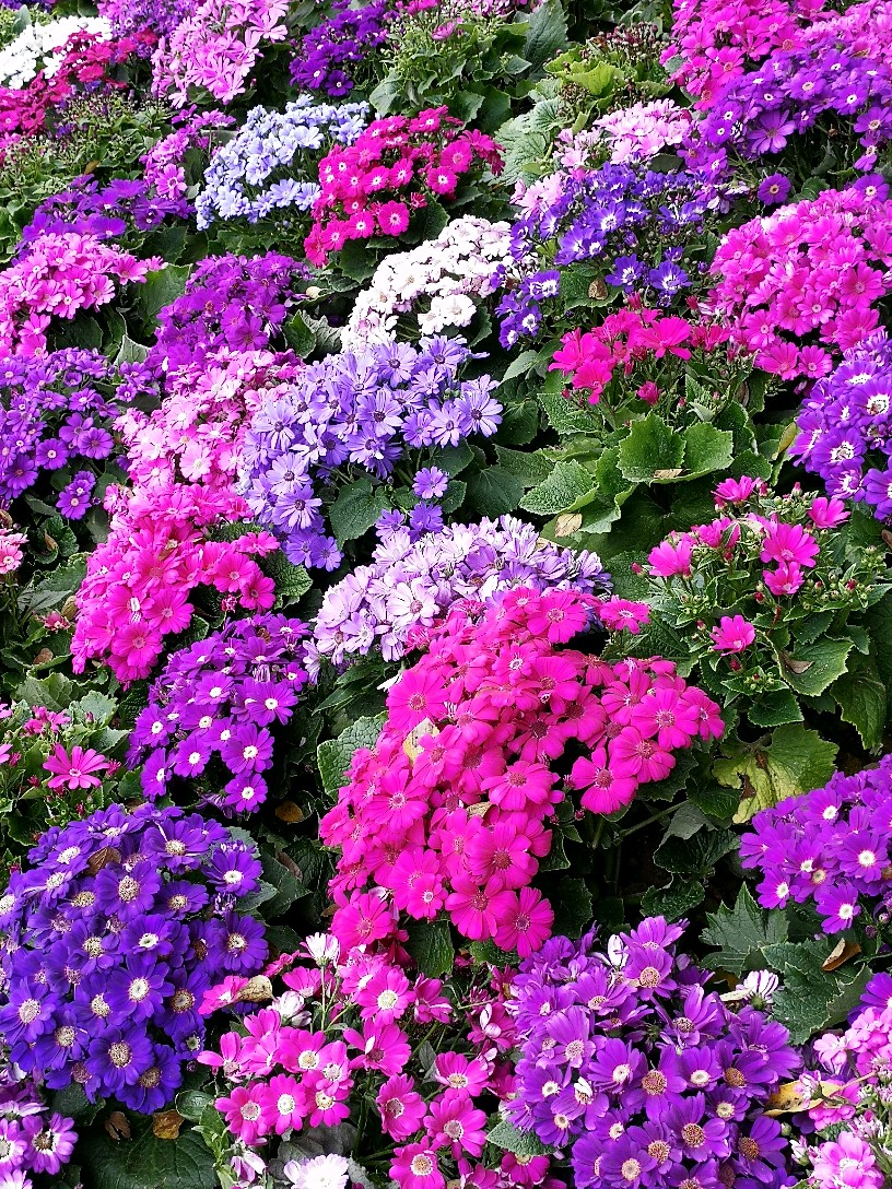瓜叶菊(学名:Pericallis hybrida),别称富贵菊、黄瓜花。多年生草本,常作1-2年生栽培。分为高生种和矮生种,20-90厘米不等。全株被微毛,叶片大形如瓜叶,绿色光亮。花顶生,头状花序多数聚合成伞房花序,花序密集覆盖于枝顶,常呈锅底形,花色丰富,除黄色其他颜色均有,还有红白相间的复色,花期1-4月。瓜叶菊的花语是:喜悦,快活,快乐,合家欢喜,繁荣昌盛。适宜在春节期间送给亲友,此花色彩鲜艳,体现美好的心意。(源于网络)。