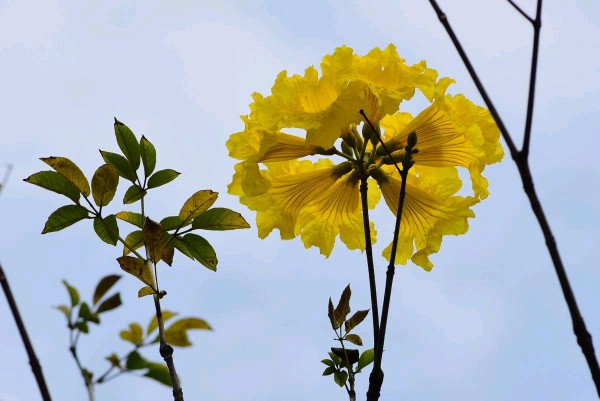 黄花风铃木!网上找到的花儿,仔细看是这样的,对不对呢?