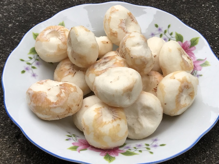 在我们老家这个叫慈菇,除了可以生吃外,还可以做菜煲汤或是和肉末揉吧揉吧做成肉丸子。这个肉丸是很多家庭里边的年夜饭必备菜之一