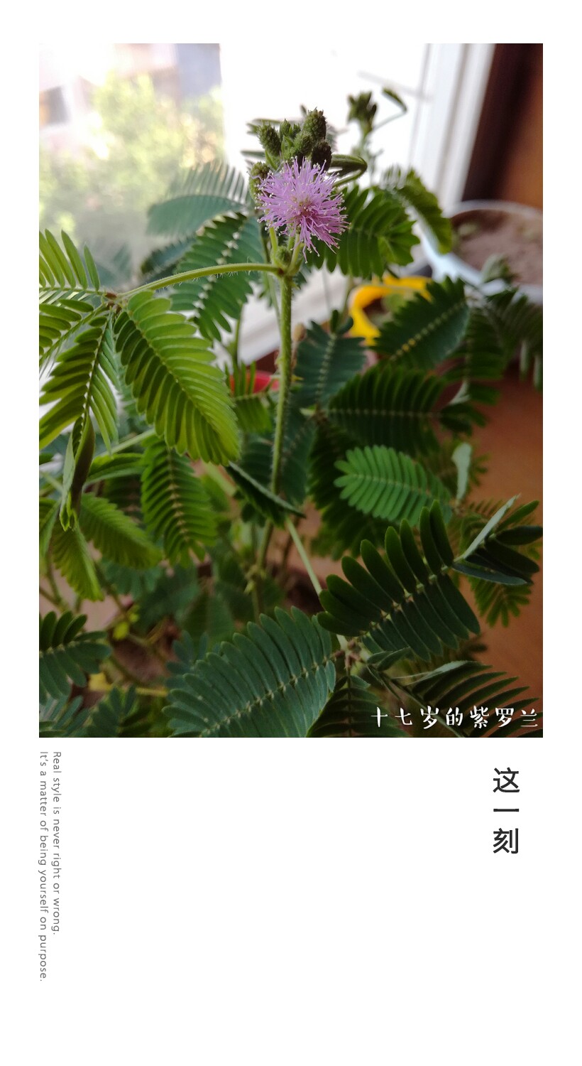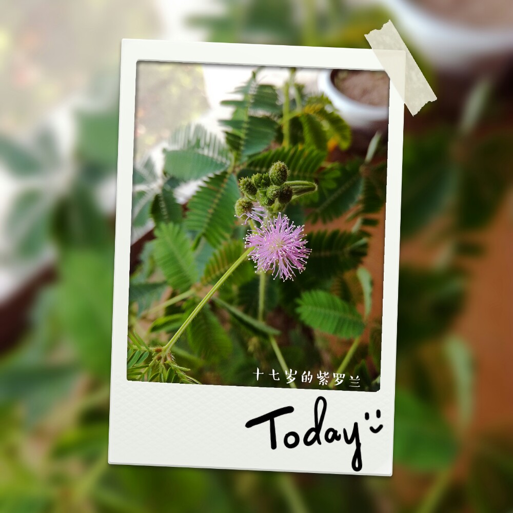 今天早上起来惊喜地发现我的含羞草开花了,小小的,粉粉的,就那么一小朵,就像一个美丽的小姑娘,怯生生的打量着这个世界。