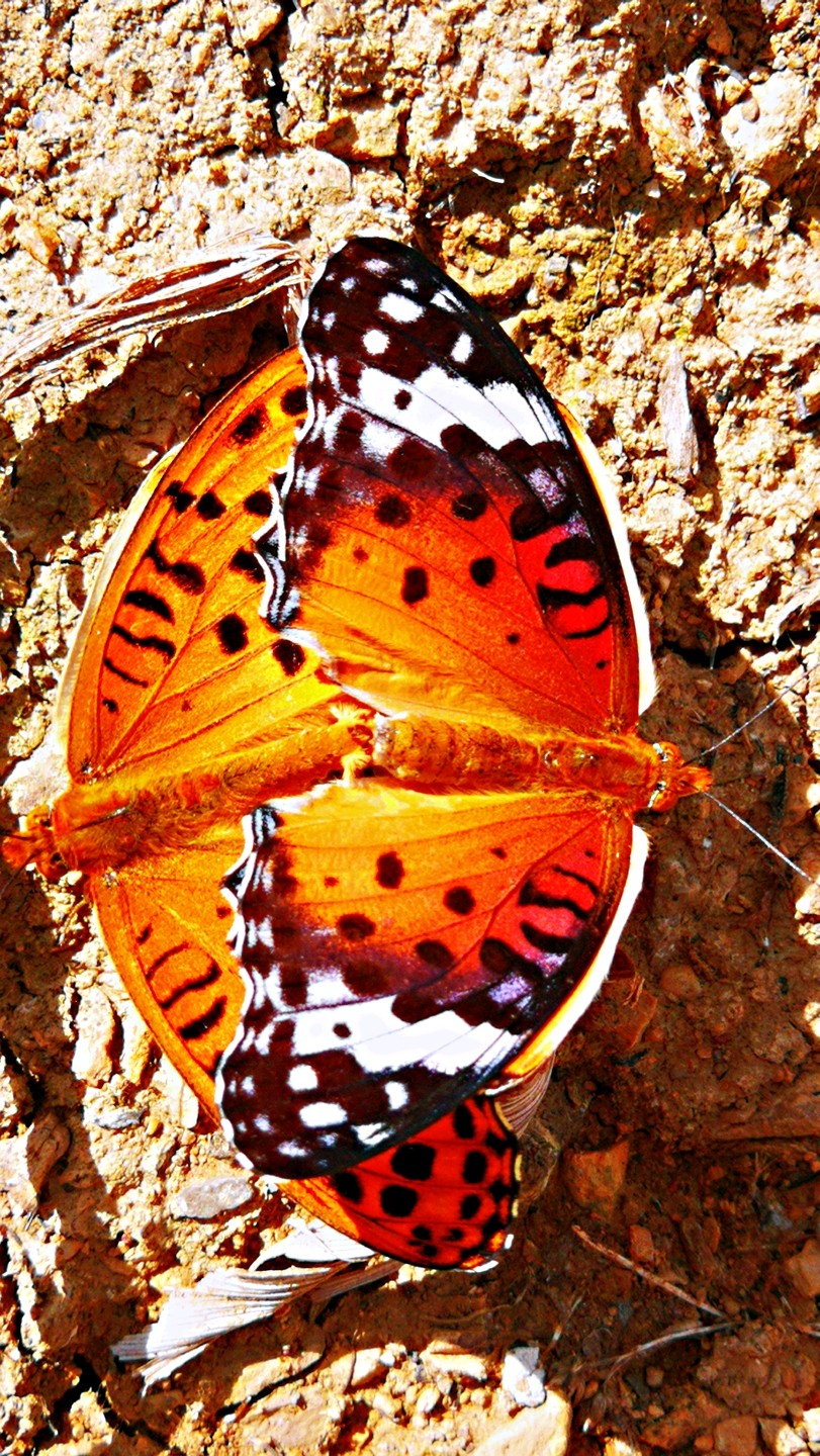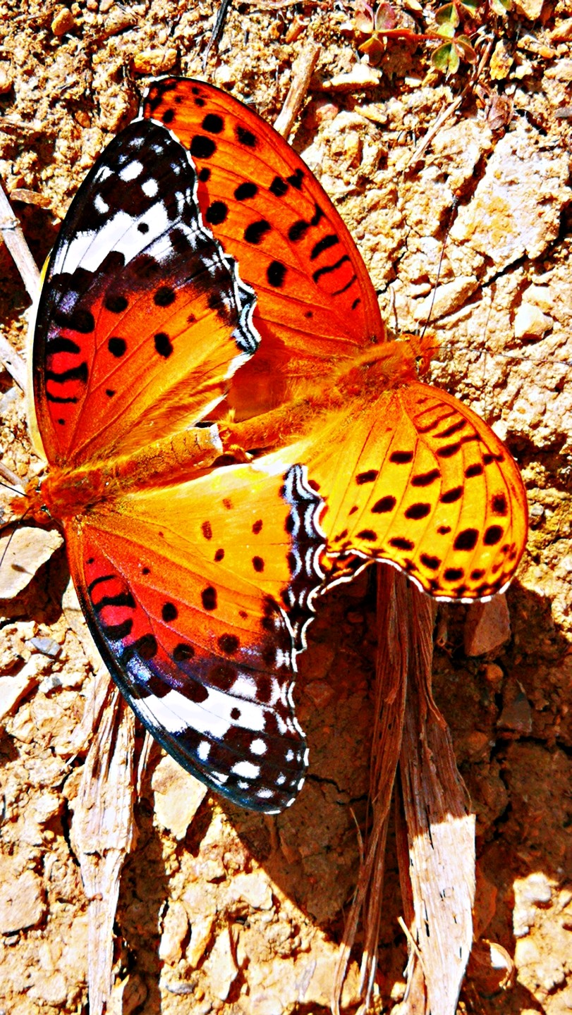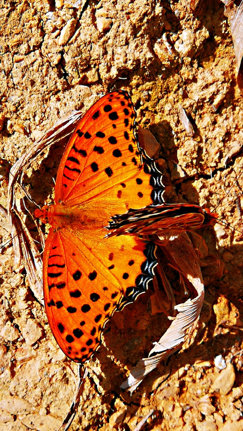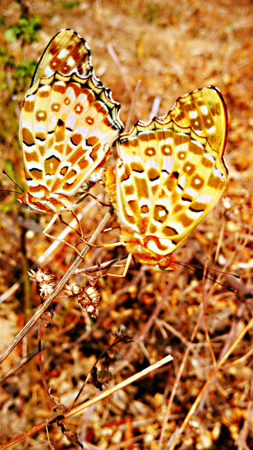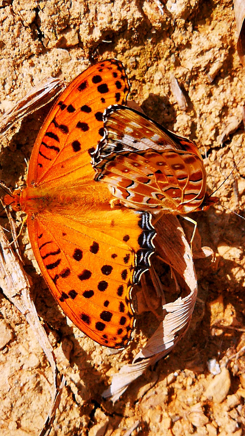 山坡干燥黄土地上双双对对斐豹蛱蝶