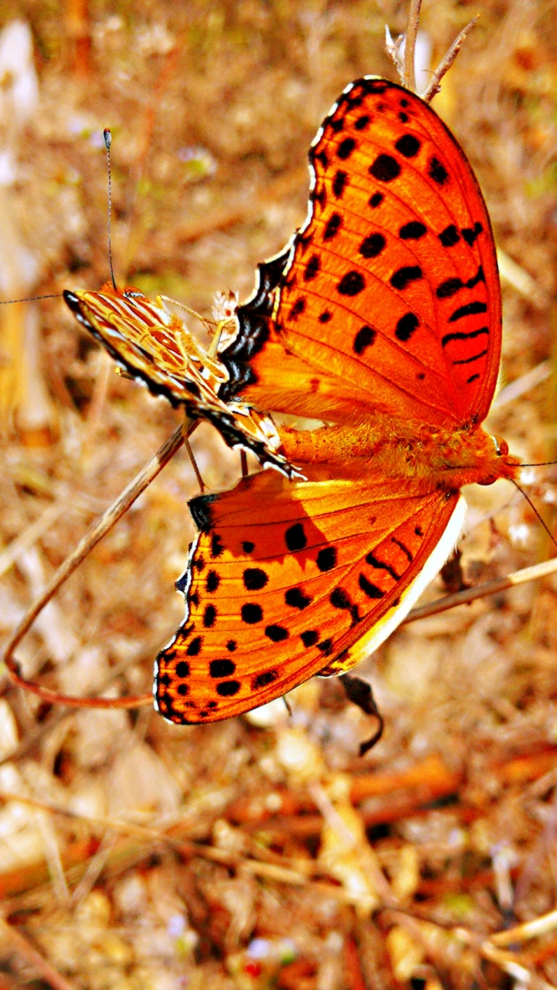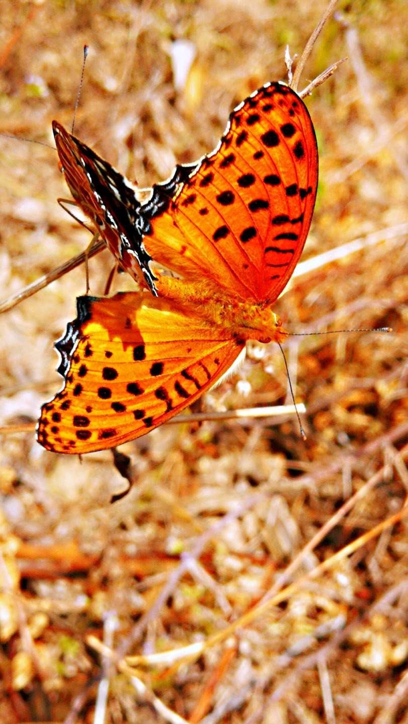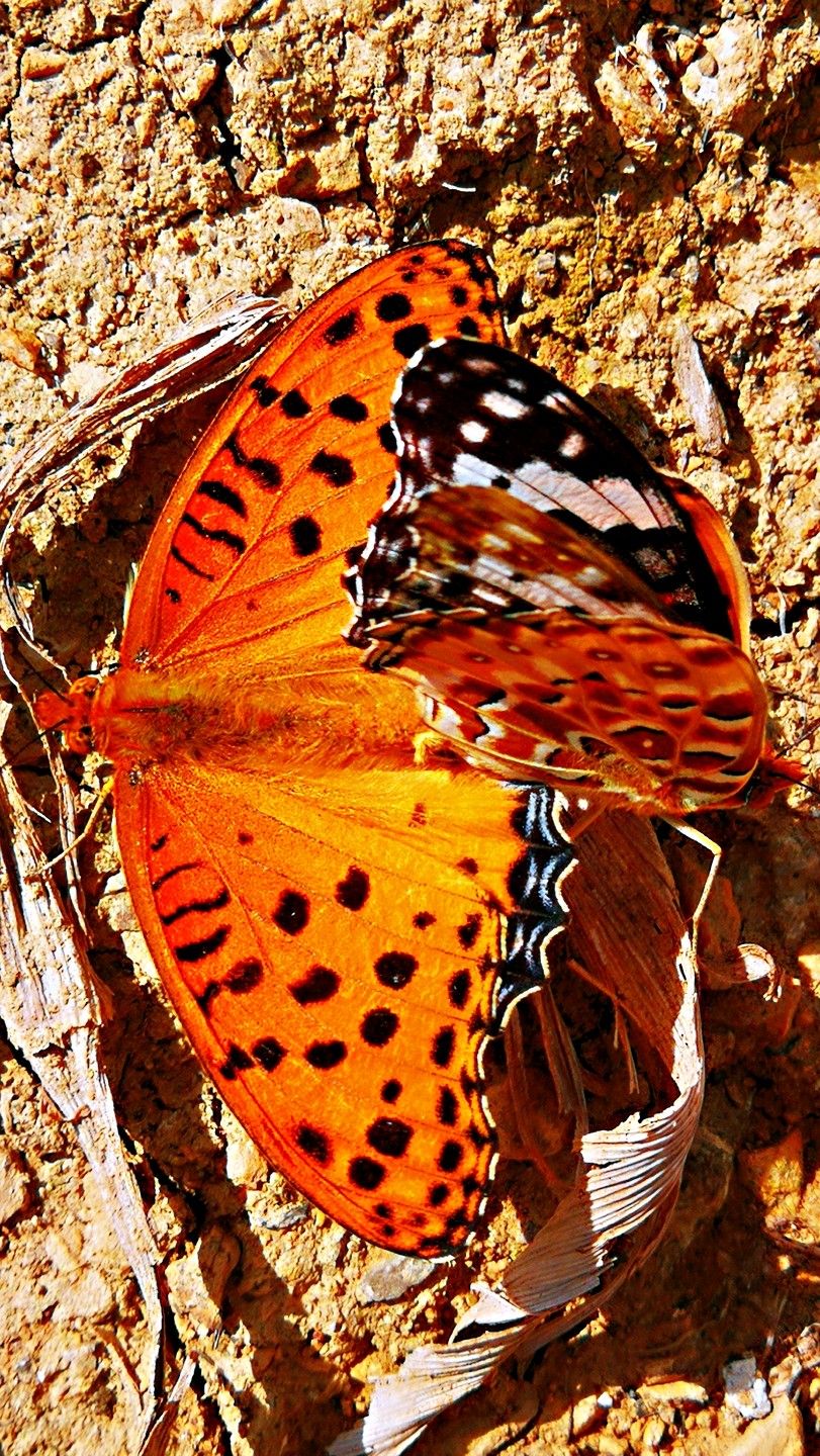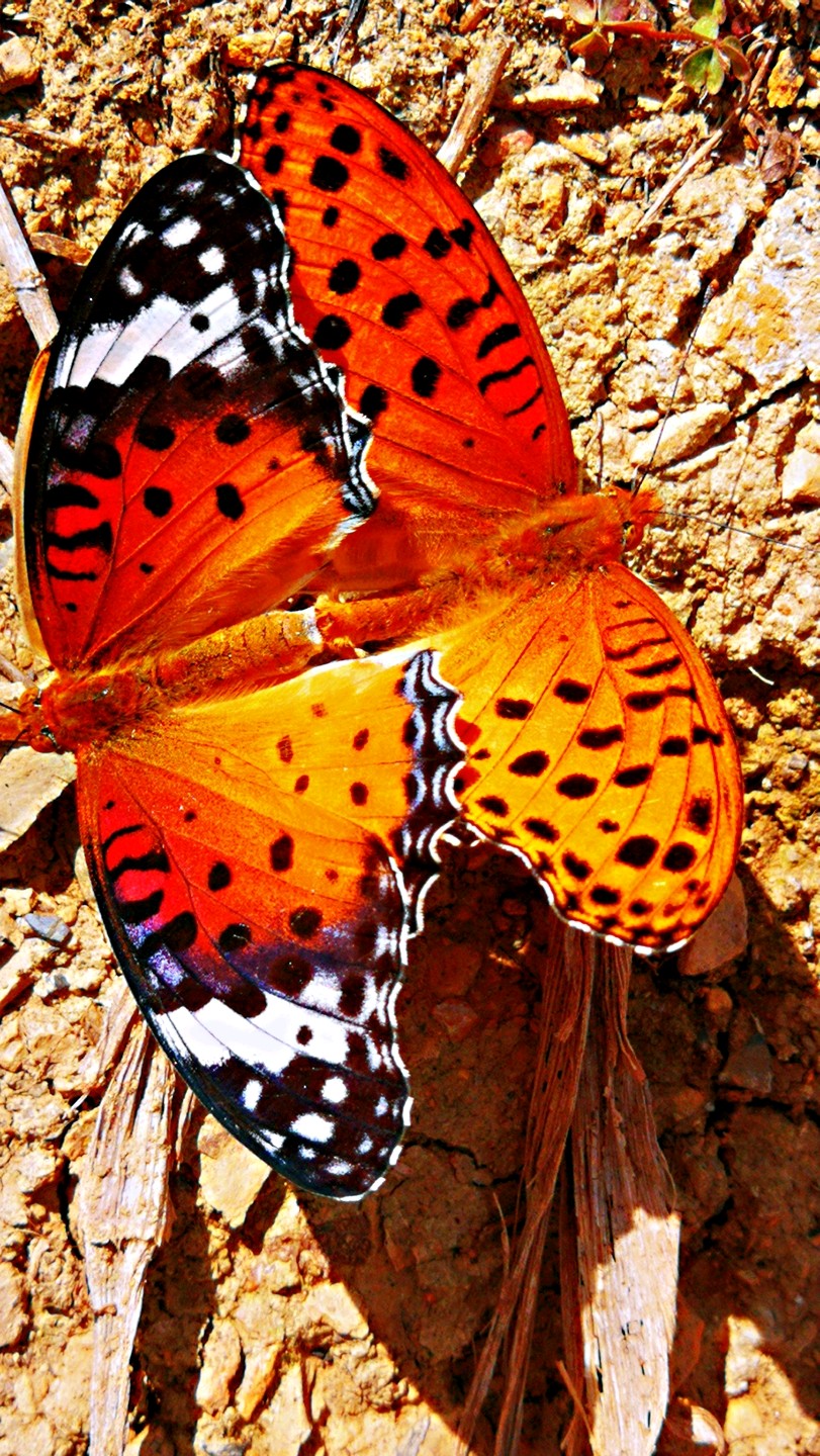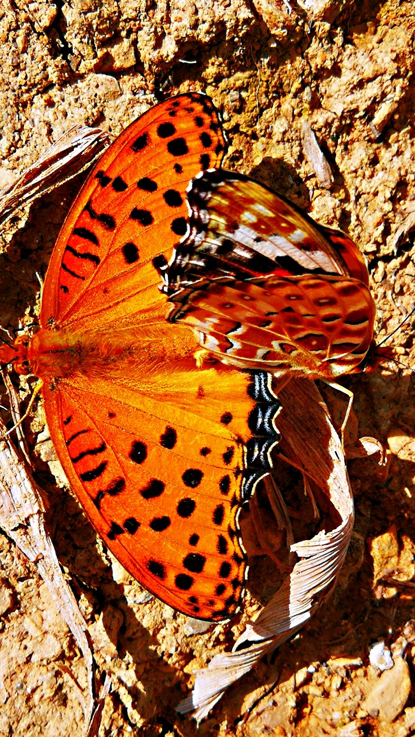 山坡干燥黄土地上双双对对斐豹蛱蝶