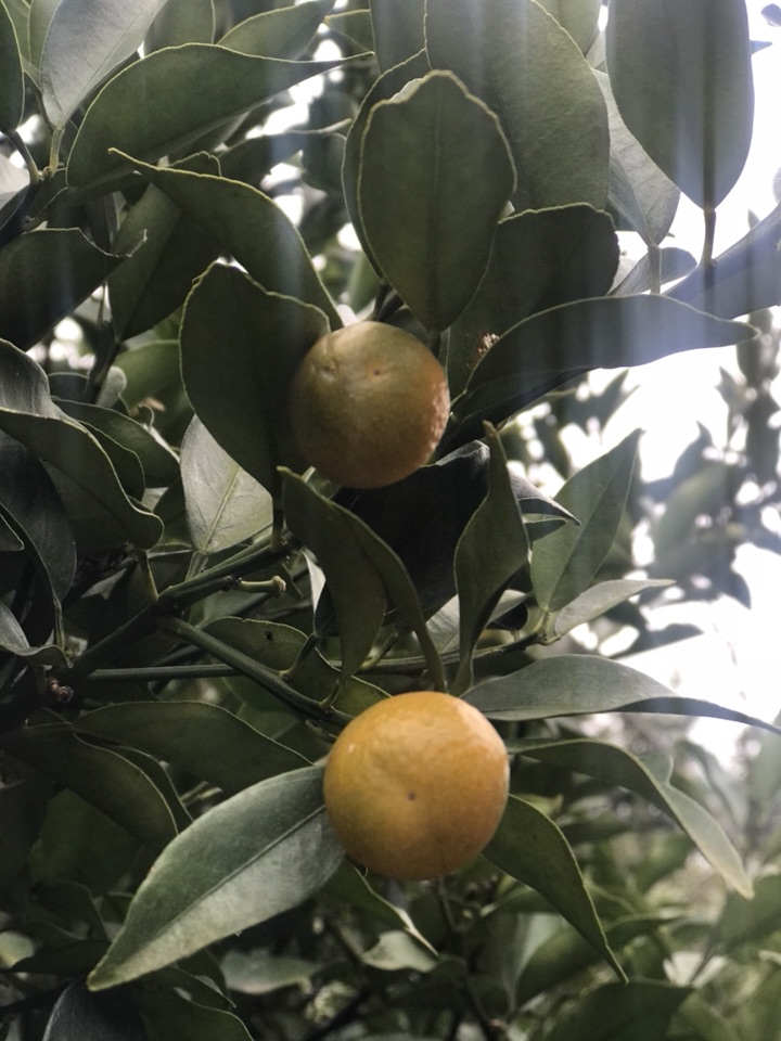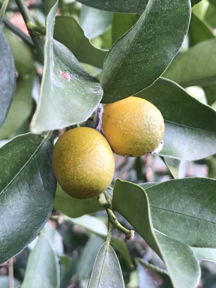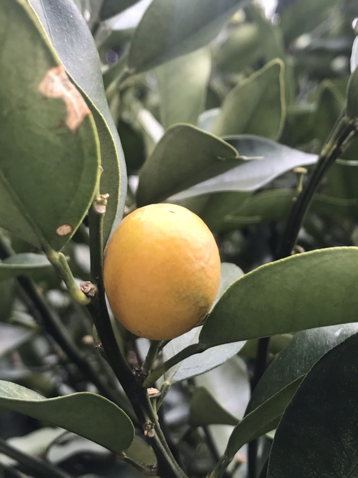 金柑 我自己家里也有两棵,一大一小,听爸妈说小的没结多少大的挂果颇丰,却由于与道路靠的太近,叫人都摘去了。我巡视了好几圈也仅看到两个小果在枝头零乱。