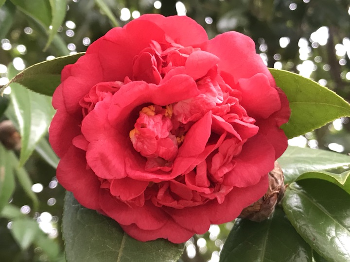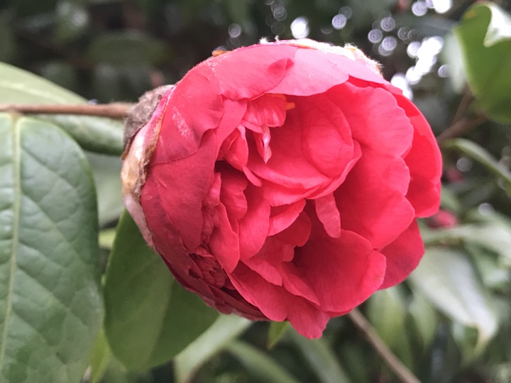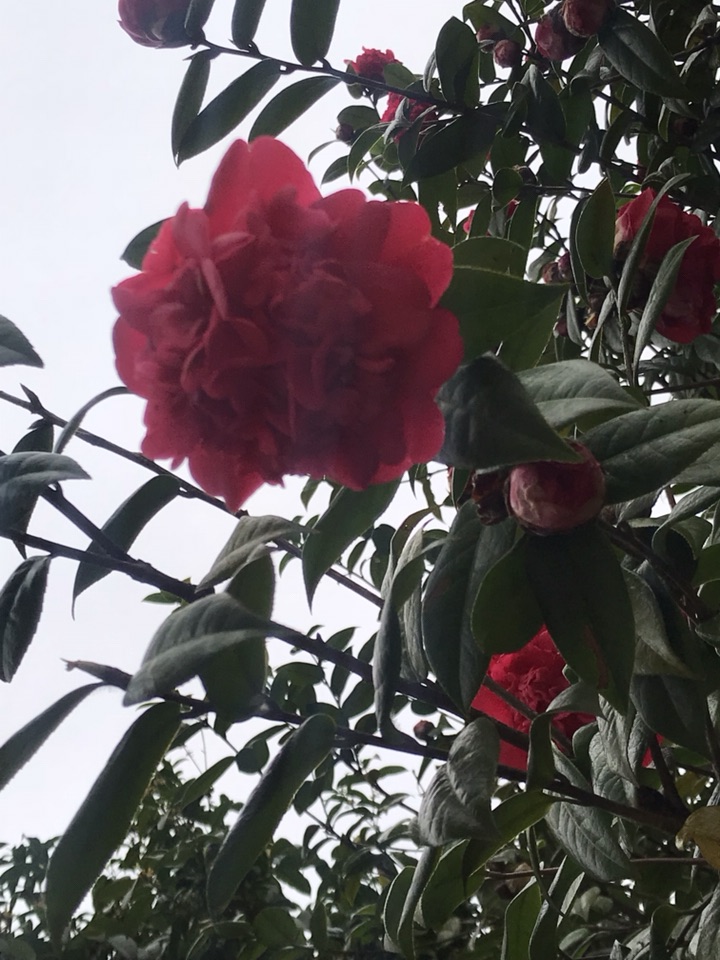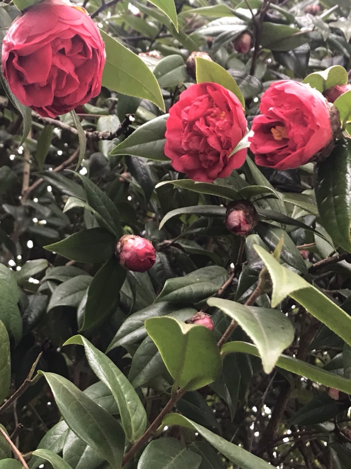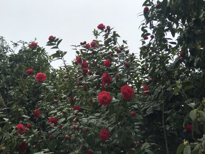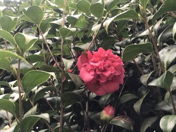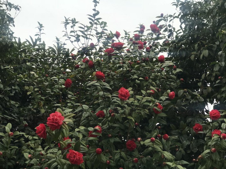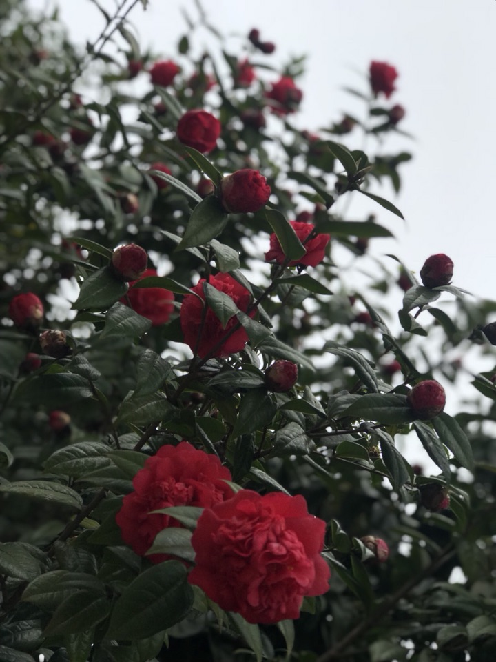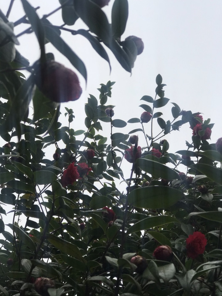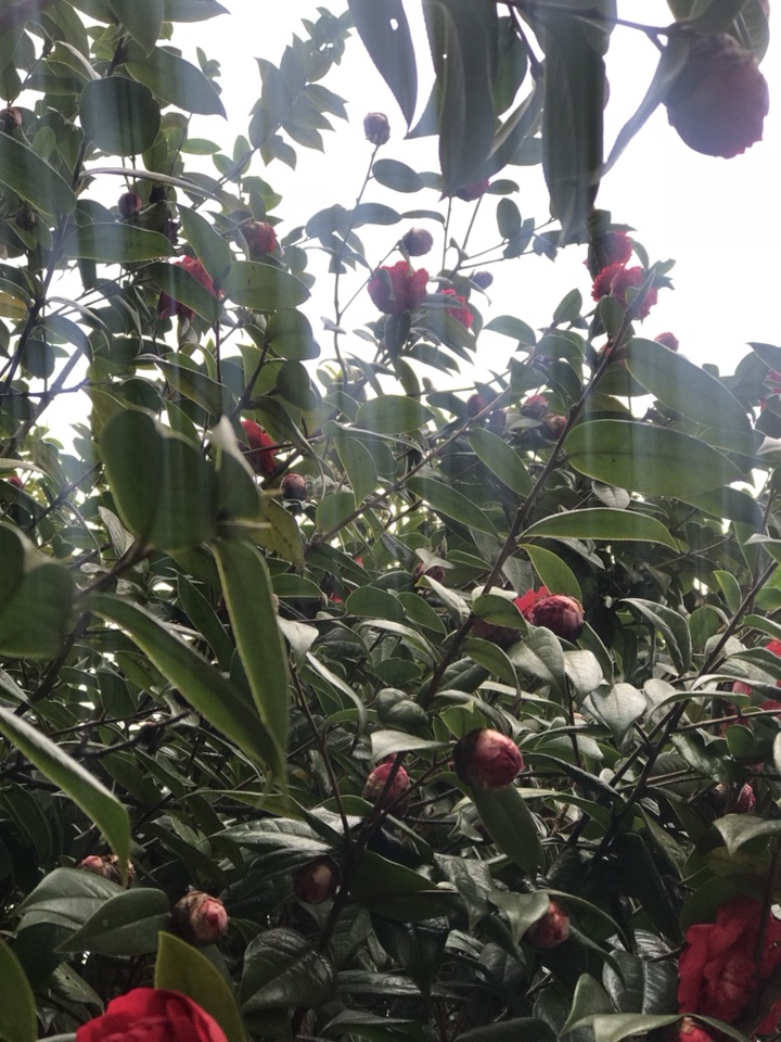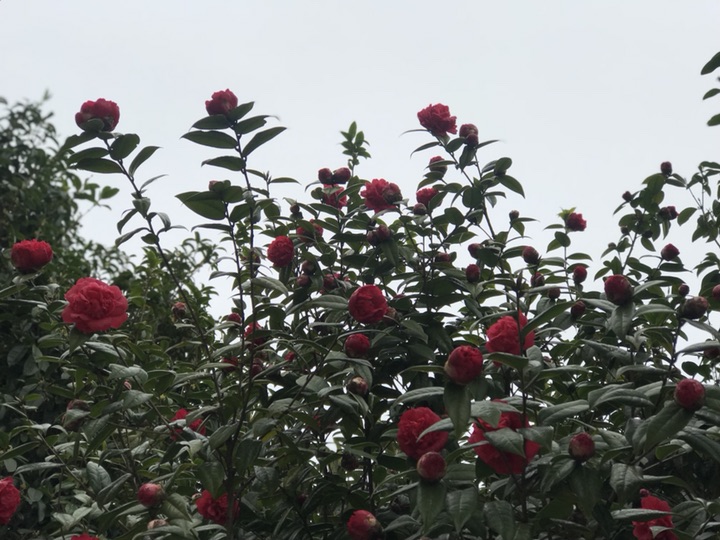 相对于山上开白花的油茶,我对这红色山茶花倒是没有什么特殊的情感。只觉好看,喜庆,却也想在水井旁种上那么两株,待到花开之时,一朵艳似一朵,团团簇簇也是喜庆至极之事