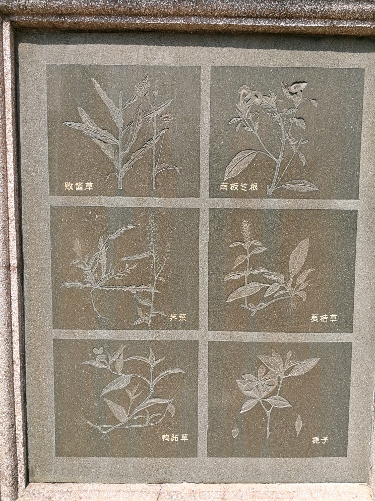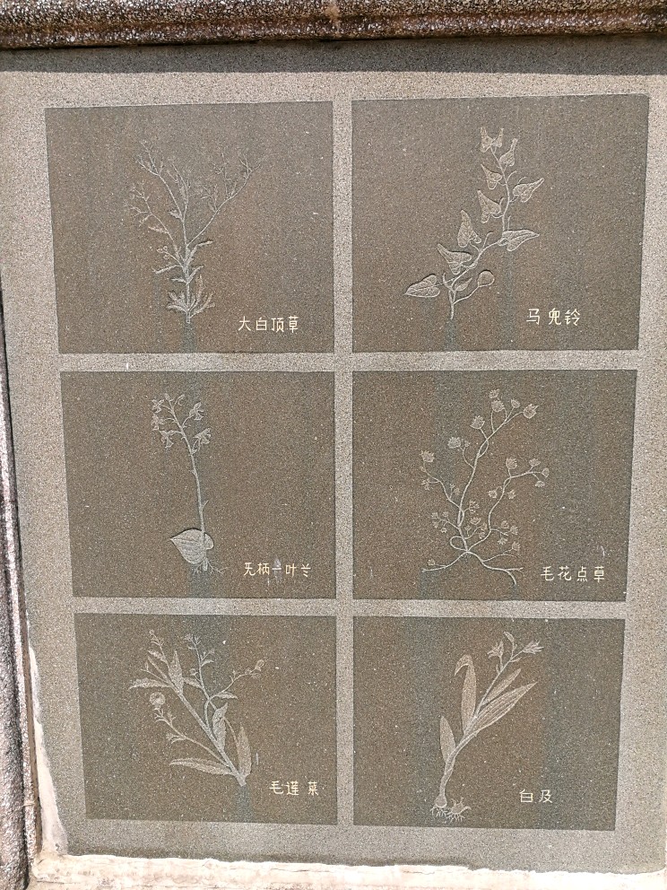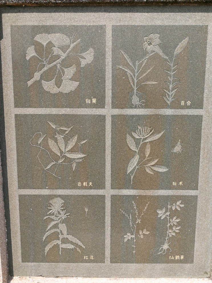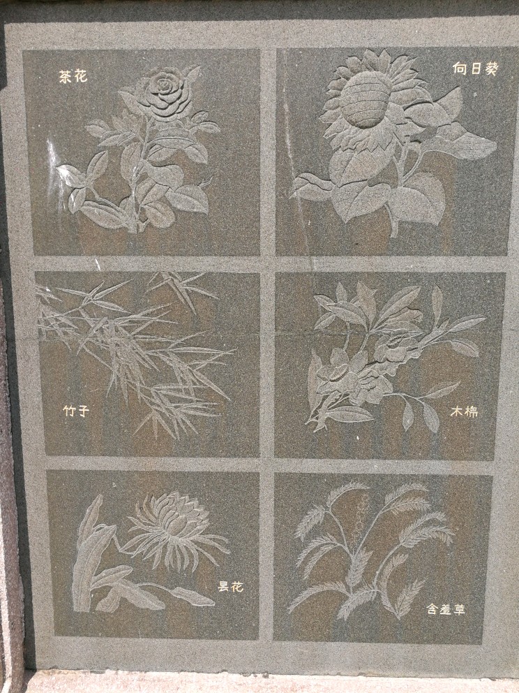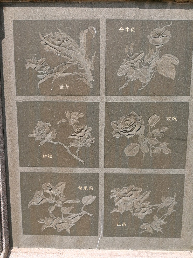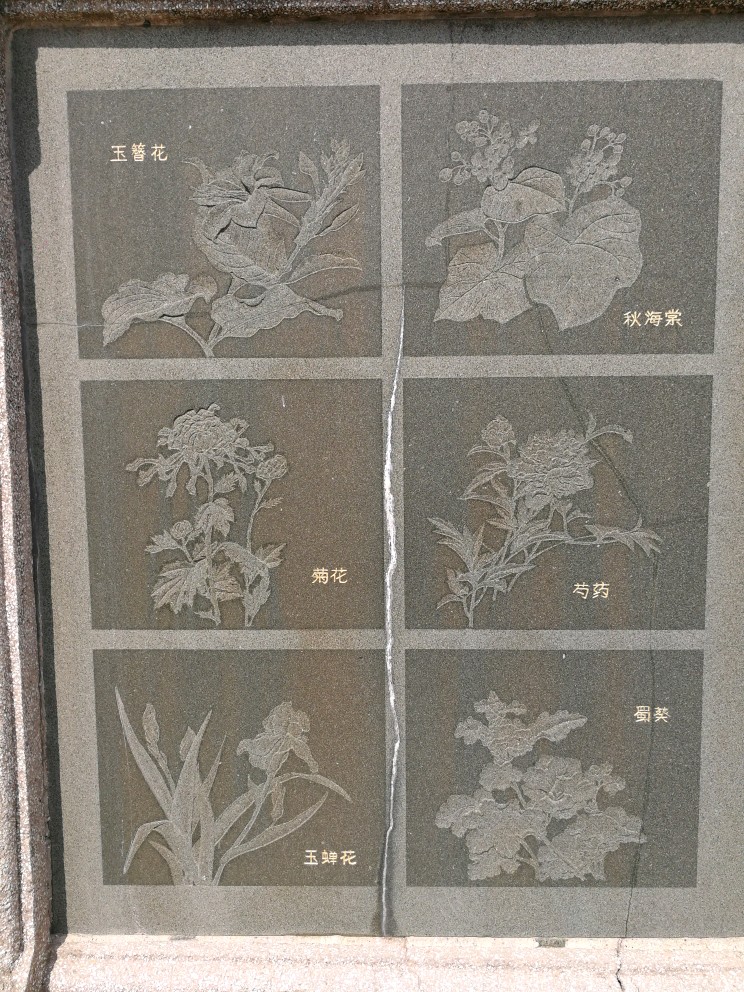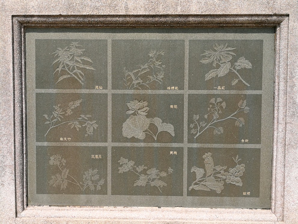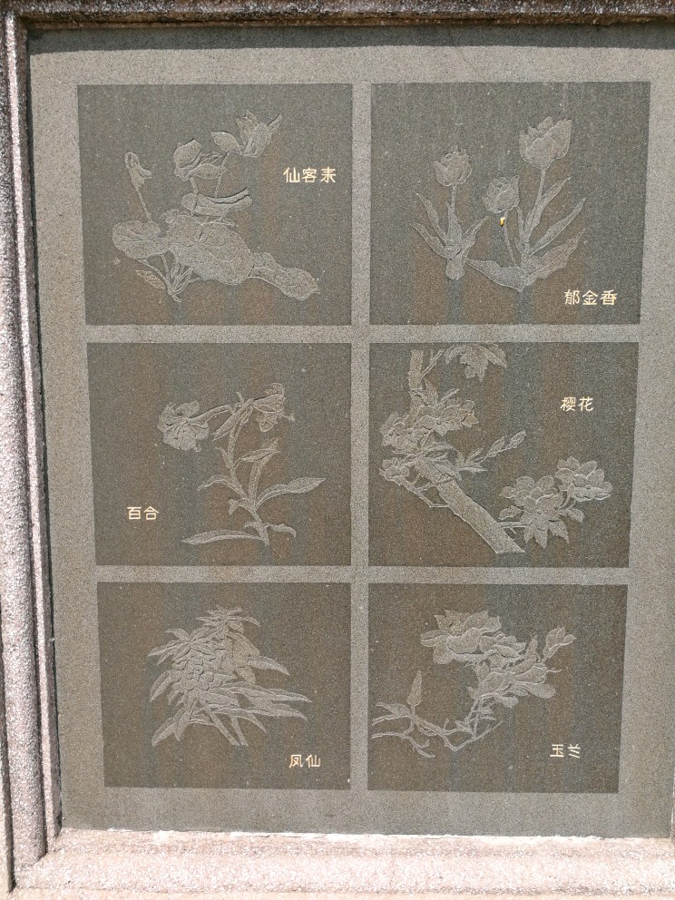 这些石板上刻的花草图案是在厦门鳌园所见。