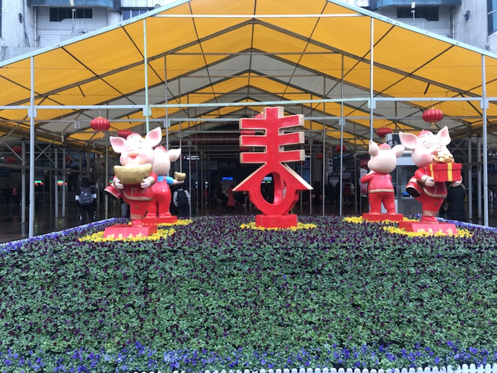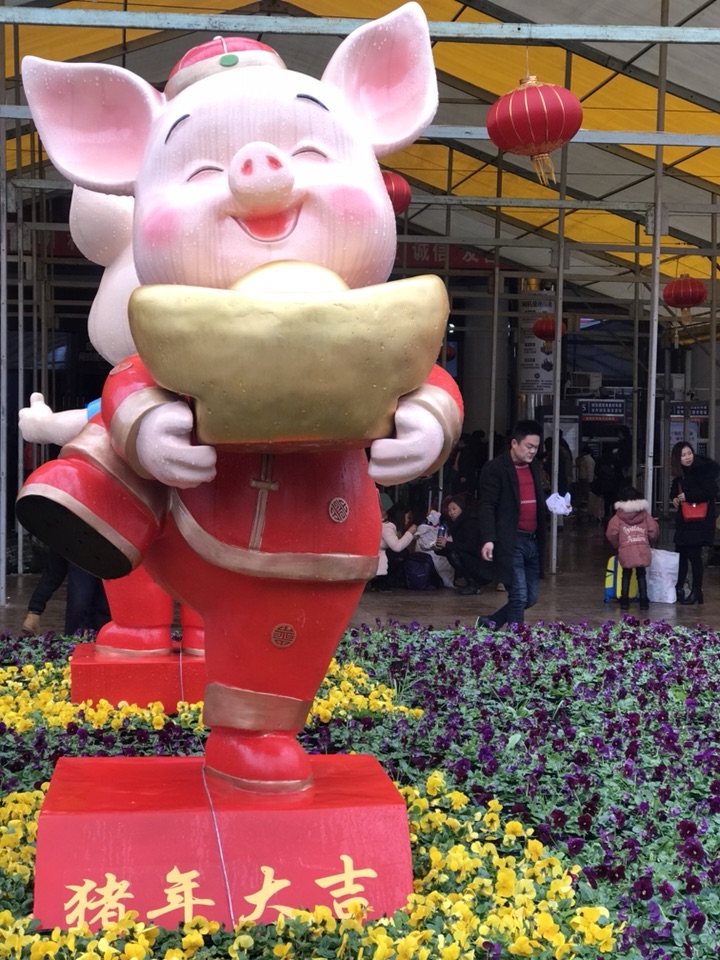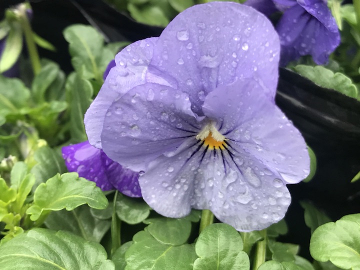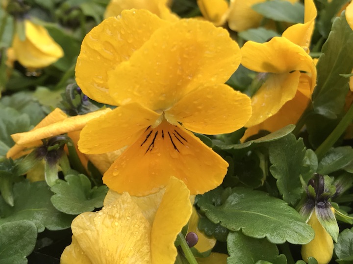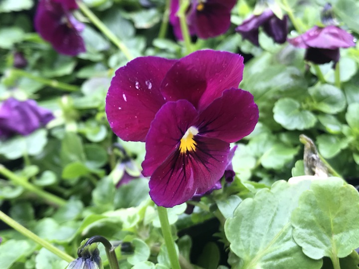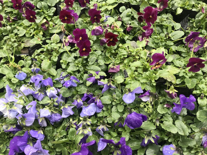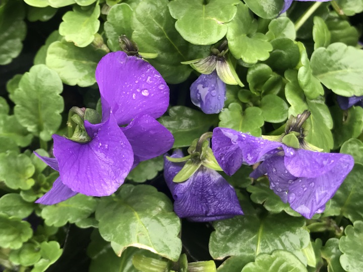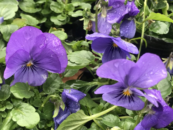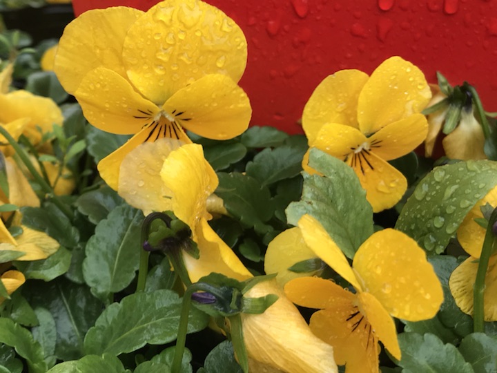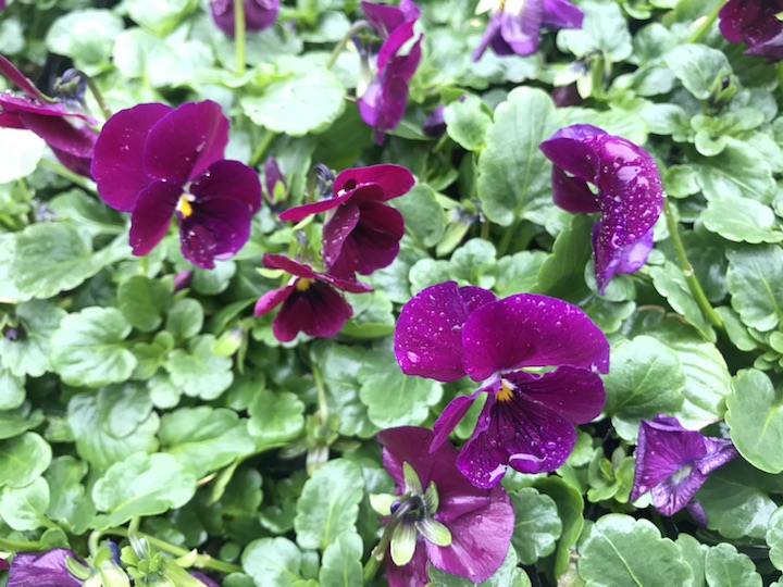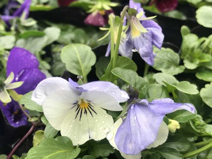 这是南昌站口的一处花坛,里边种满了各种颜色的角菫,细看不怎么好看,除却紫红色的还在雨中亭亭玉立外,各种颜色都在雨中低垂了脑袋,曲着腰。